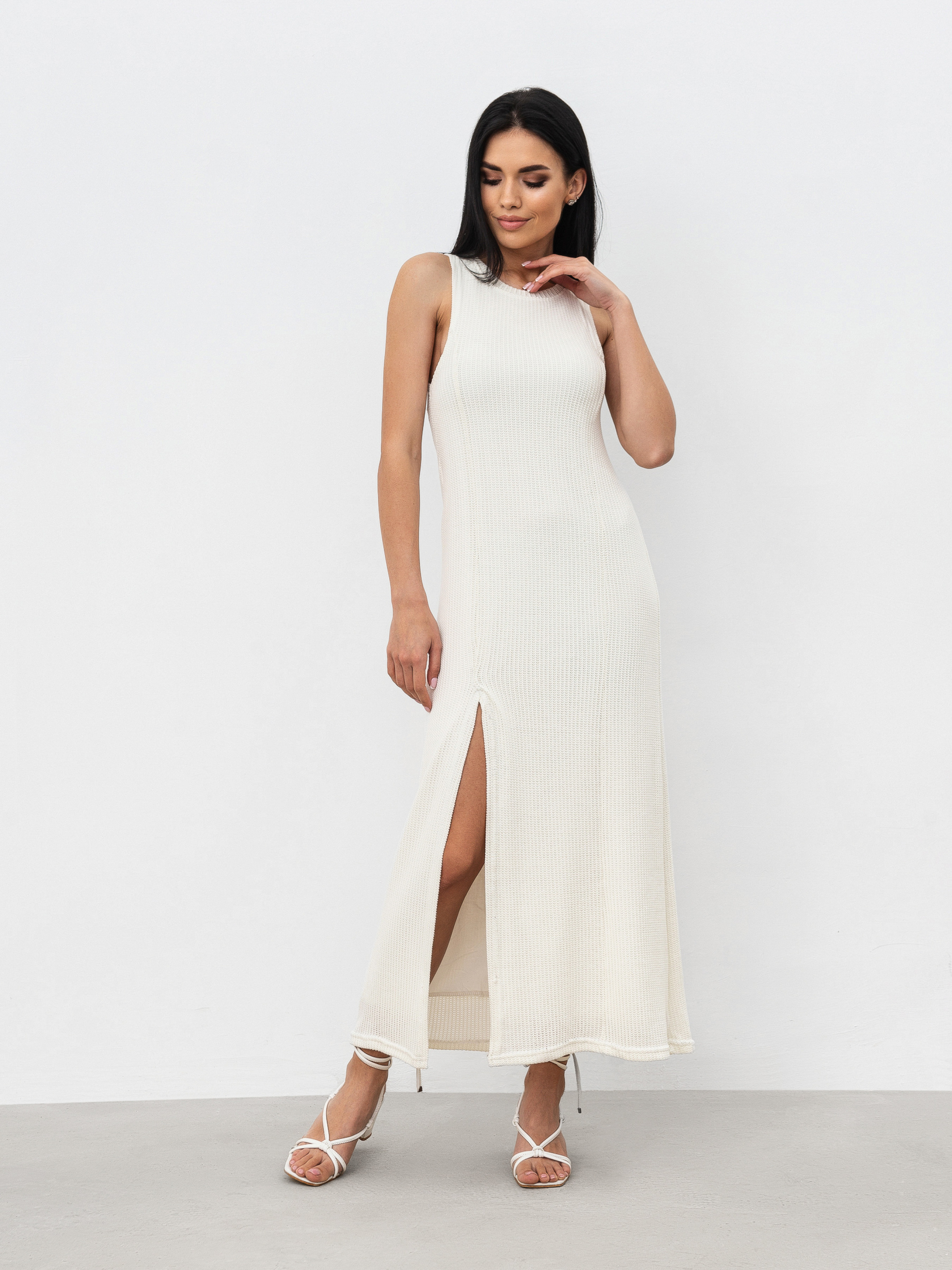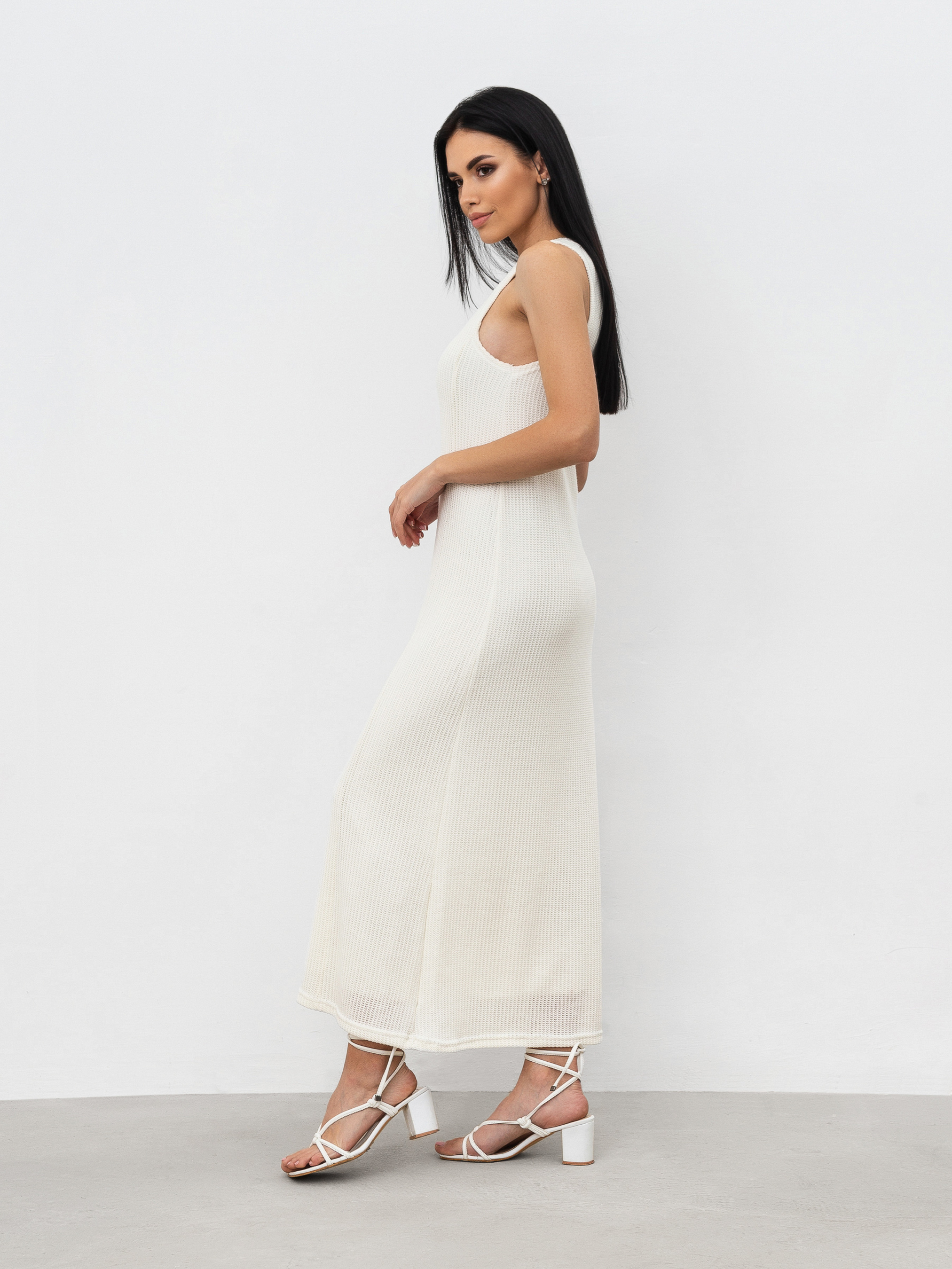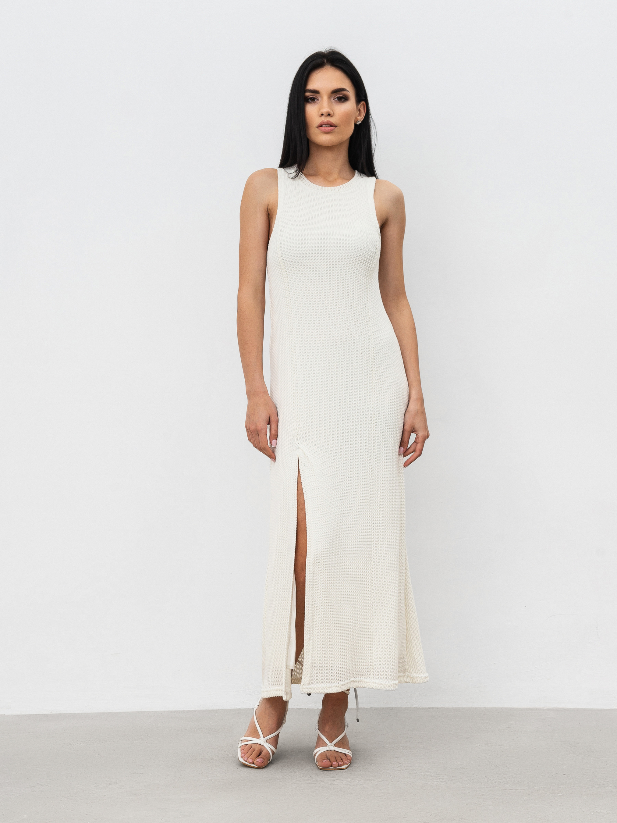 Платье из легкого трикотажа-сетки с разрезом. Есть подкладка, приятная к телу. Базовый вариант платья под разнообразные образы. XS Длина по спине : 124 см Полуобхват груди : 34 см Полуобхват бедер: 40 см. Плечи : 26 см Полуобхват талии: 36 см S Длина по спине: 124 см Полуобхват груди: 35 см Полуобхват бедер: 42 см. Плечи : 27 см Полуобхват талии: 39 см M Длина по спине: 124 см Полуобхват груди : 39 см Полуобхват бедер: 46 см. Плечи : 28 см Полуобхват талии: 43 см L Длина по спине: 124 см Полуобхват груди: 41 см Полуобхват бедер: 50 см Плечи : 30 см Полуобхват талии: 45 см