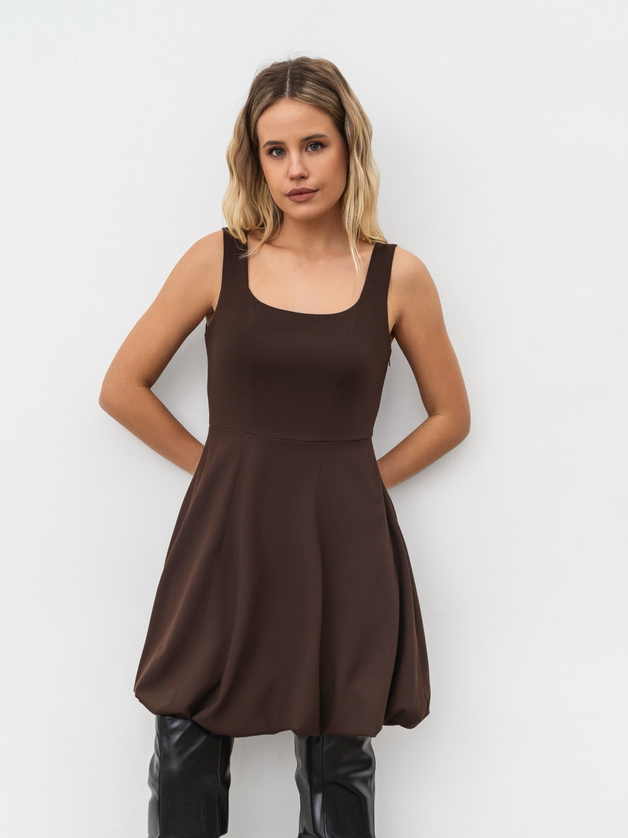 Повседневный вариант платья, которое можно адаптировать под разные образы. Платье-баллон длиной до середины бедра. Верхняя часть модели на широких бретелях с вертикальными рельефами. Нижняя часть свободного фасона. За счет вискозы в составе, ткань очень приятная к телу. Комбинировать можно по разному: добавить как пиджак с ковбойками, так и боди с каблуками. Дополнить образ с ней можно сумкой с блестящей фурнитурой и аксессуарами. XS:- Длина по спине : 81 см; Полуобхват груди : 40 см; Ширина плеч : 34 см; Полуобхват талии : 32 см, S:- Длина по спине : 81 см; Полуобхват груди : 41 см; Ширина плеч : 35 см; Полуобхват талии : 35 см, M:- Длина по спине : 81 см; Полуобхват груди : 42 см; Ширина плеч : 36 см; Полуобхват талии : 37 см, L:- Длина по спине : 82 см; Полуобхват груди : 45 см; Ширина плеч : 39 см; Полуобхват талии : 39 см, XL:- Длина по спине : 82 см; Полуобхват груди : 47 см; Ширина плеч : 41 см; Полуобхват талии : 41 см.