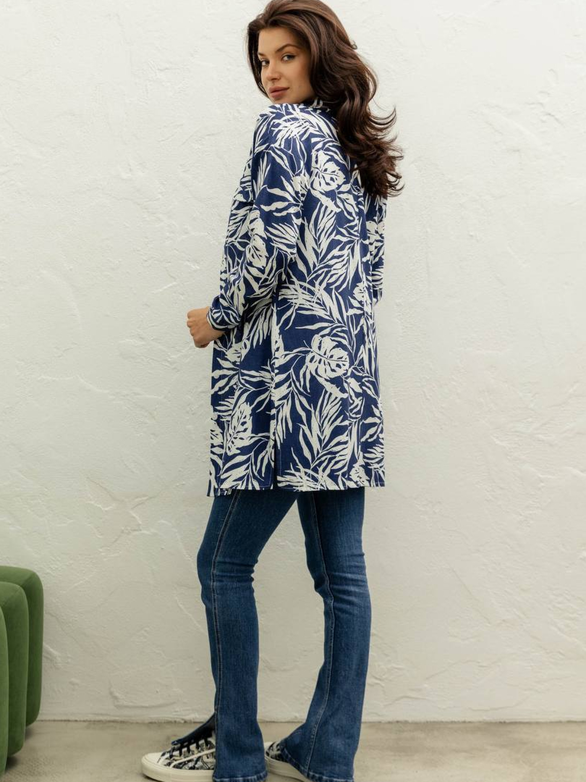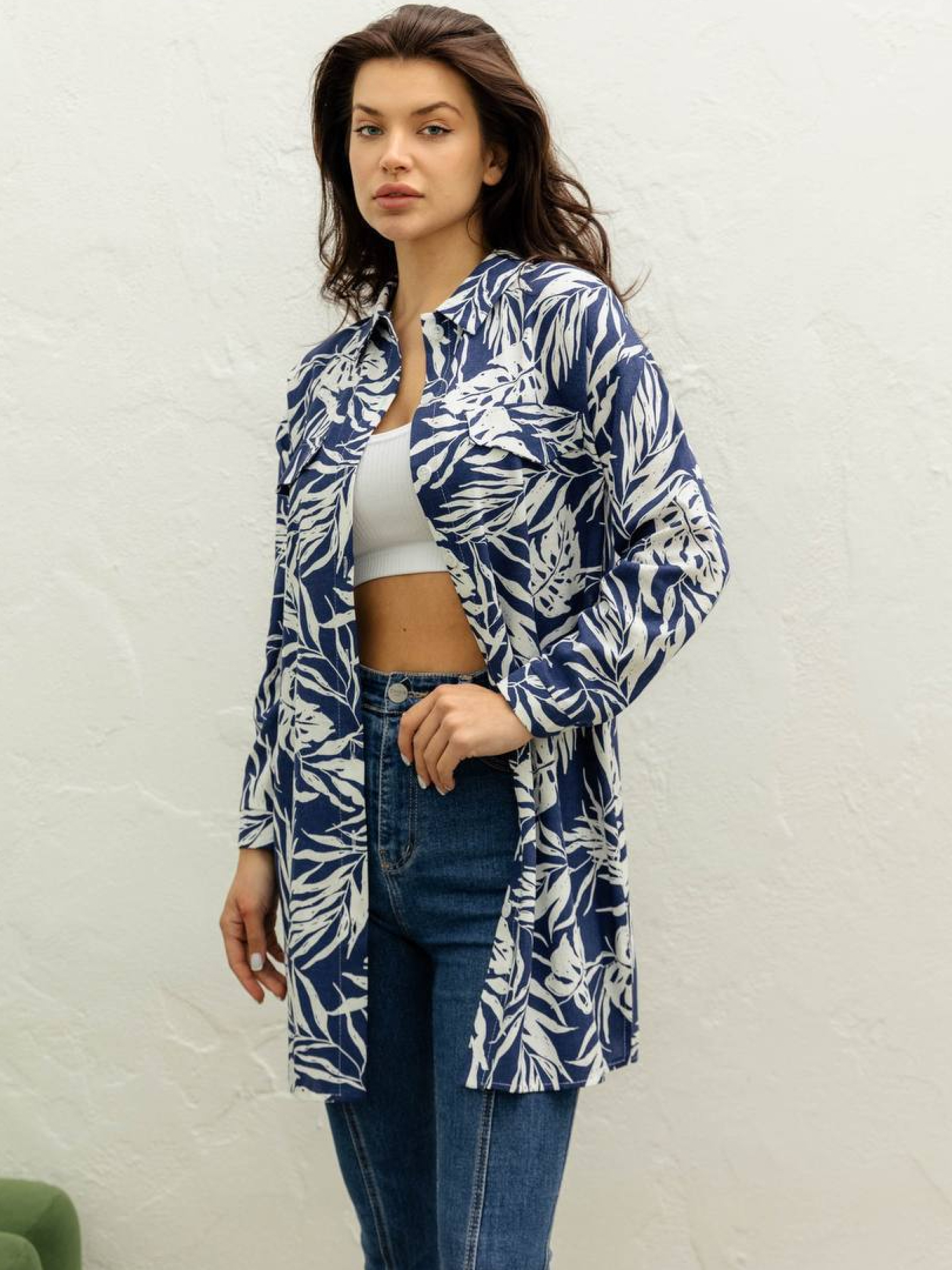 Платье-рубашка из принтованного льна Это платье-рубашка — воплощение легкости и стиля для весенне-летнего сезона. Выполненное из принтованного льна, оно сочетает в себе комфорт натуральной ткани и современный дизайн. Фасон: • Свободный, прямой, трапециевидный силуэт обеспечивает свободу движений и подходит для разных типов фигуры. • Спущенное плечо добавляет образу непринужденности. • Длинный рукав с манжетом и планка на пуговицах создают классический вид. • Декоративные элементы в виде клапанов придают платью особый шарм. Материал: • Принтованный лен — натуральная, дышащая ткань, идеально подходящая для теплого времени года. • Рекомендуется ручная стирка при температуре до 30°C для сохранения качества ткани. Размерная сетка: • S-M: o Обхват груди: 80–84 см o Обхват талии: 68–72 см o Обхват бедер: 92–96 см o Длина изделия: 88 см o Длина рукава: 48 см • L-XL: o Обхват груди: 92–96 см o Обхват талии: 76–81 см o Обхват бедер: 100–105 см o Длина изделия: 90 см o Длина рукава: 48 см • XXL-3XL: o Обхват груди: 100–105 см o Обхват талии: 86–91 см o Обхват бедер: 110–115 см o Длина изделия: 91 см o Длина рукава: 48 см Это платье-рубашка станет прекрасным дополнением к вашему гардеробу, сочетая стиль, комфорт и универсальность. Оно идеально подходит для прогулок, отдыха на природе или активного дня в городе.