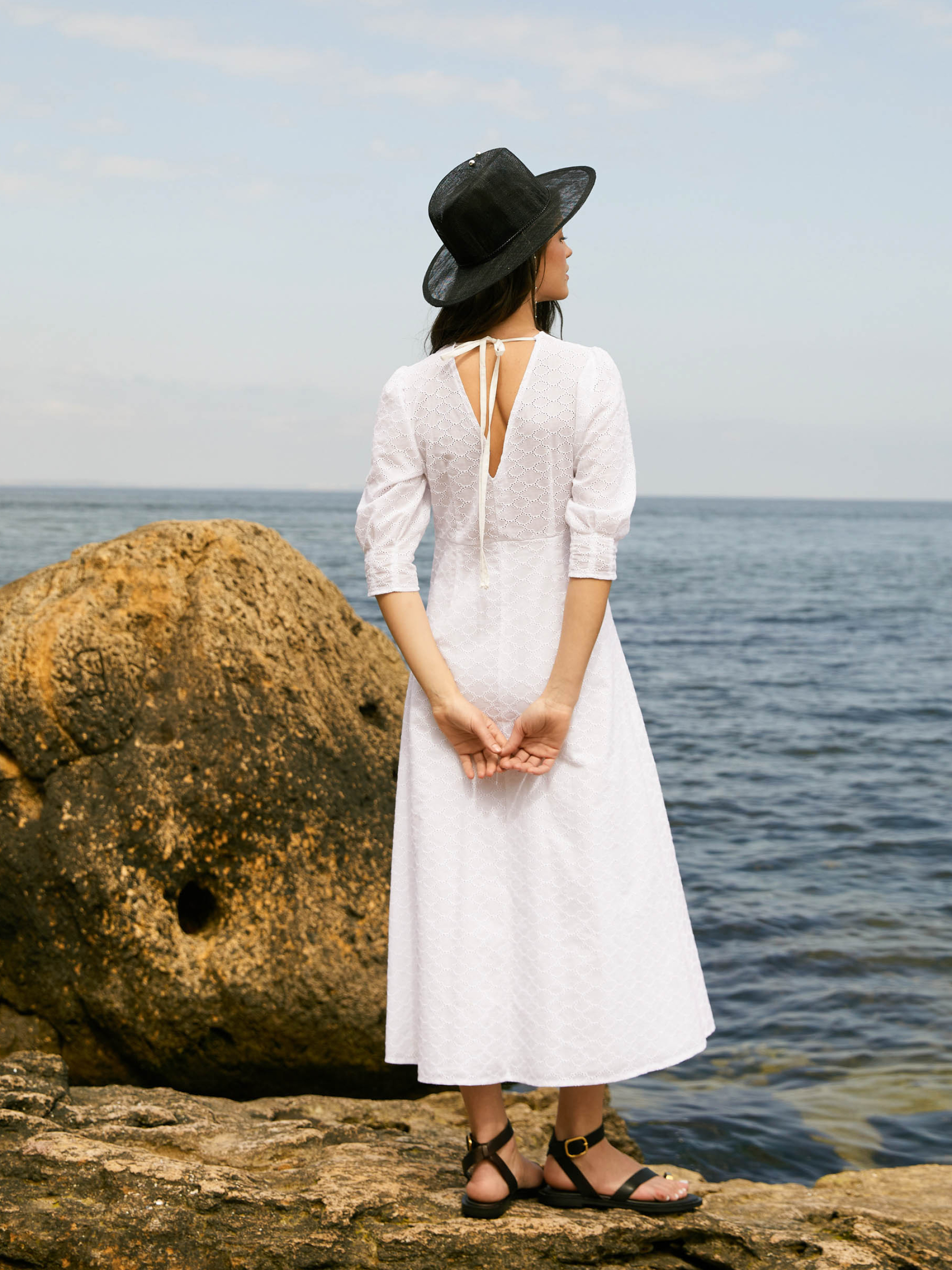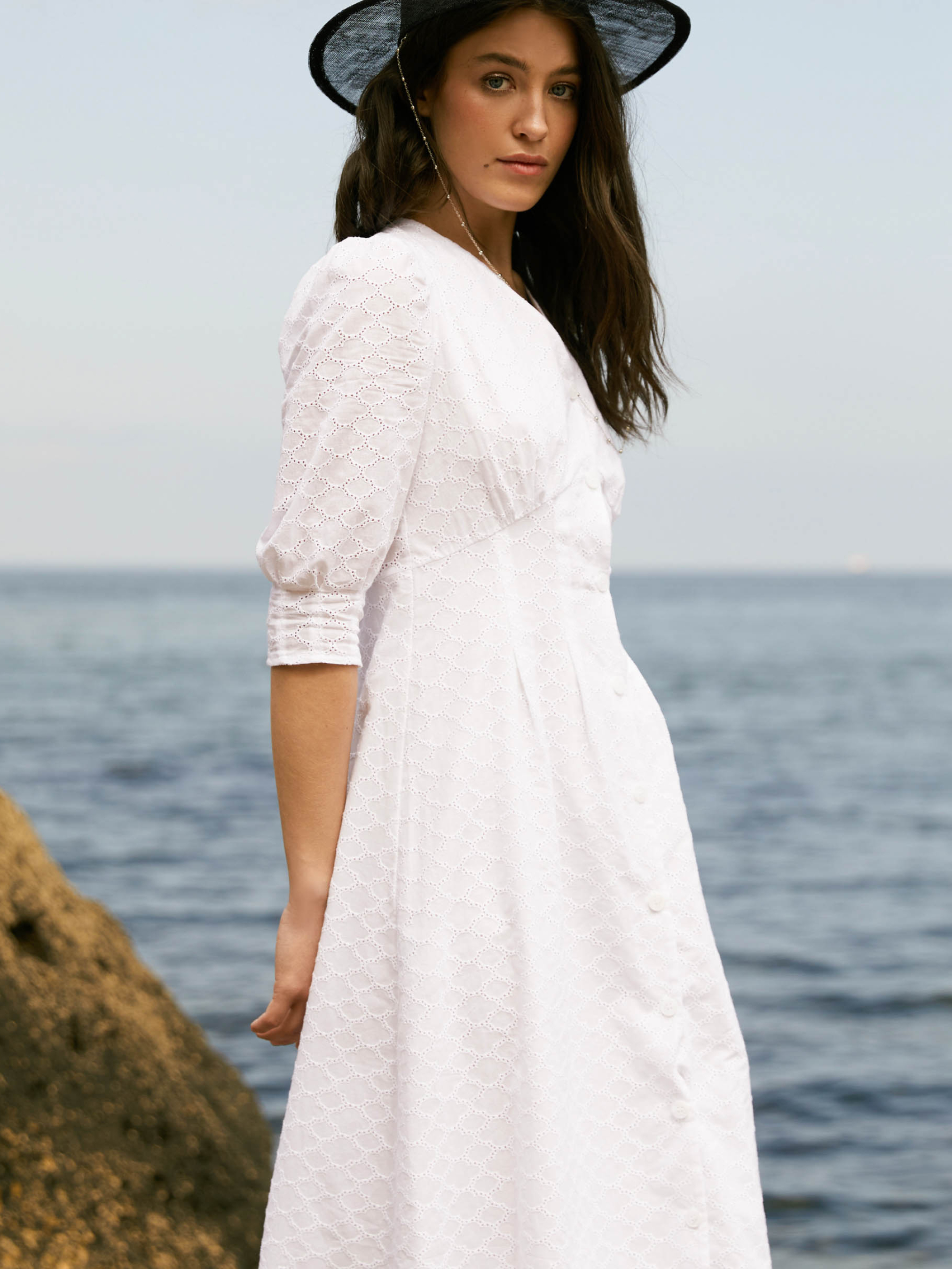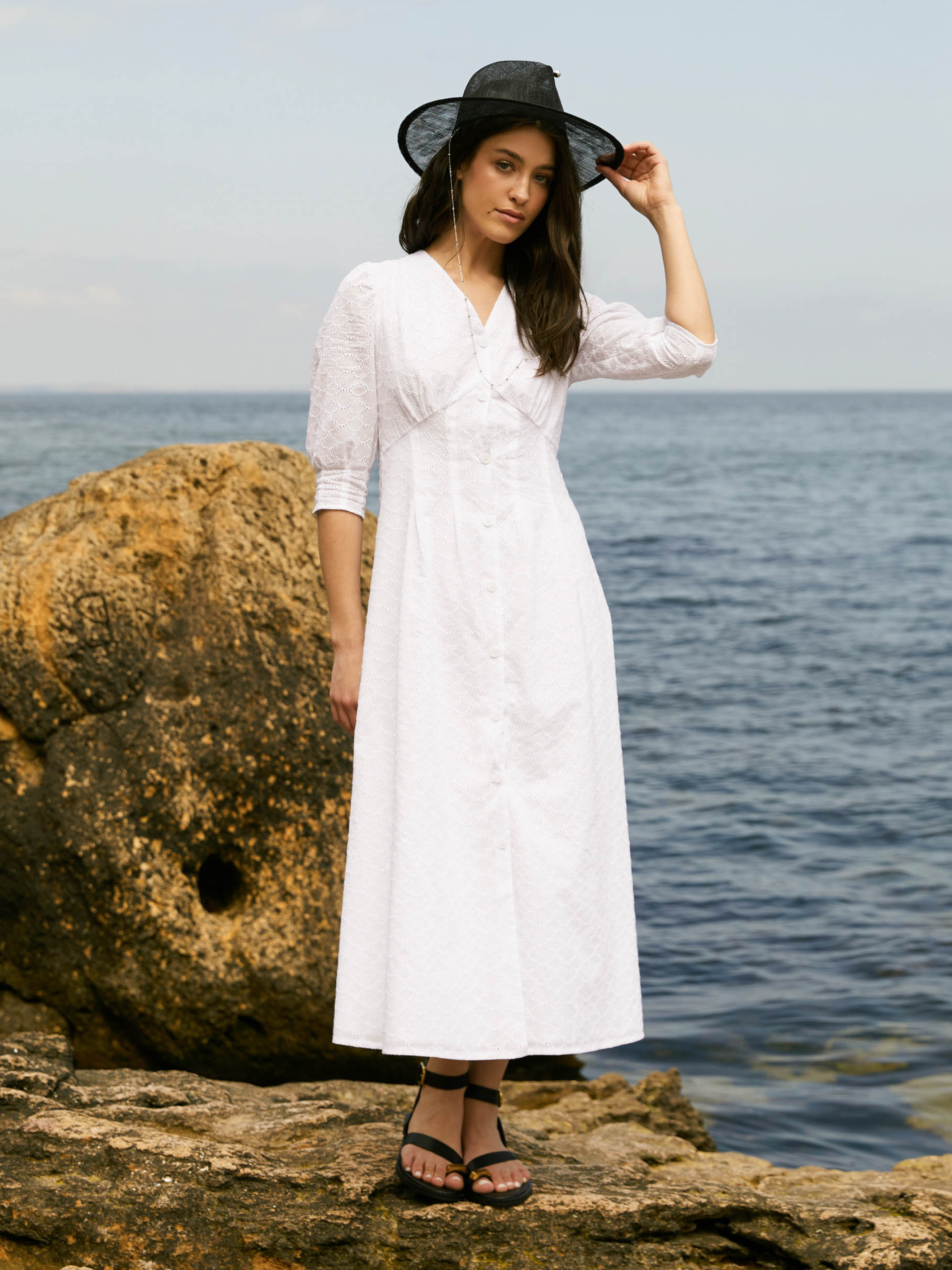 Платье от Seventeen — легкость и элегантность в каждом движении Добавь в свой гардероб изящное платье, которое сочетает комфорт и женственность для жарких летних дней. Фасон Платье имеет прямой, расслабленный силуэт, подчеркивающий природную грацию. Вытачки на талии придают изделию аккуратность, а V-образный вырез и открытая верхняя часть спины с нежными завязками создают романтичный и легкий образ. Объемные рукава на манжетах придают модный акцент и легкость силуэту. Материал Изготовлено из легкой, воздухопроницаемой прошвы — идеального материала для летнего сезона. Мягкая хлопковая подкладка предотвращает прозрачность и обеспечивает дополнительный комфорт даже в самые жаркие дни. Размерная сетка S–M: обхват груди 84–88 см, талии 68–72 см, бедер 92–96 см, длина платья 121 см, длина рукава 41 см L–XL: обхват груди 92–96 см, талии 76–81 см, бедер 100–105 см, длина платья 122 см, длина рукава 42 см XXL–3XL: обхват груди 100–105 см, талии 86–91 см, бедер 110–115 см, длина платья 123 см, длина рукава 44 см Уход Рекомендуется деликатная ручная стирка при температуре до 30°C Избегать отбеливателей Гладить с изнаночной стороны при средней температуре Сушить в тени, разложив изделие Не замачивать длительное время Это платье подарит тебе свободу движений и очарование на каждом шагу, наполняя образ легкой женственностью и свежестью.