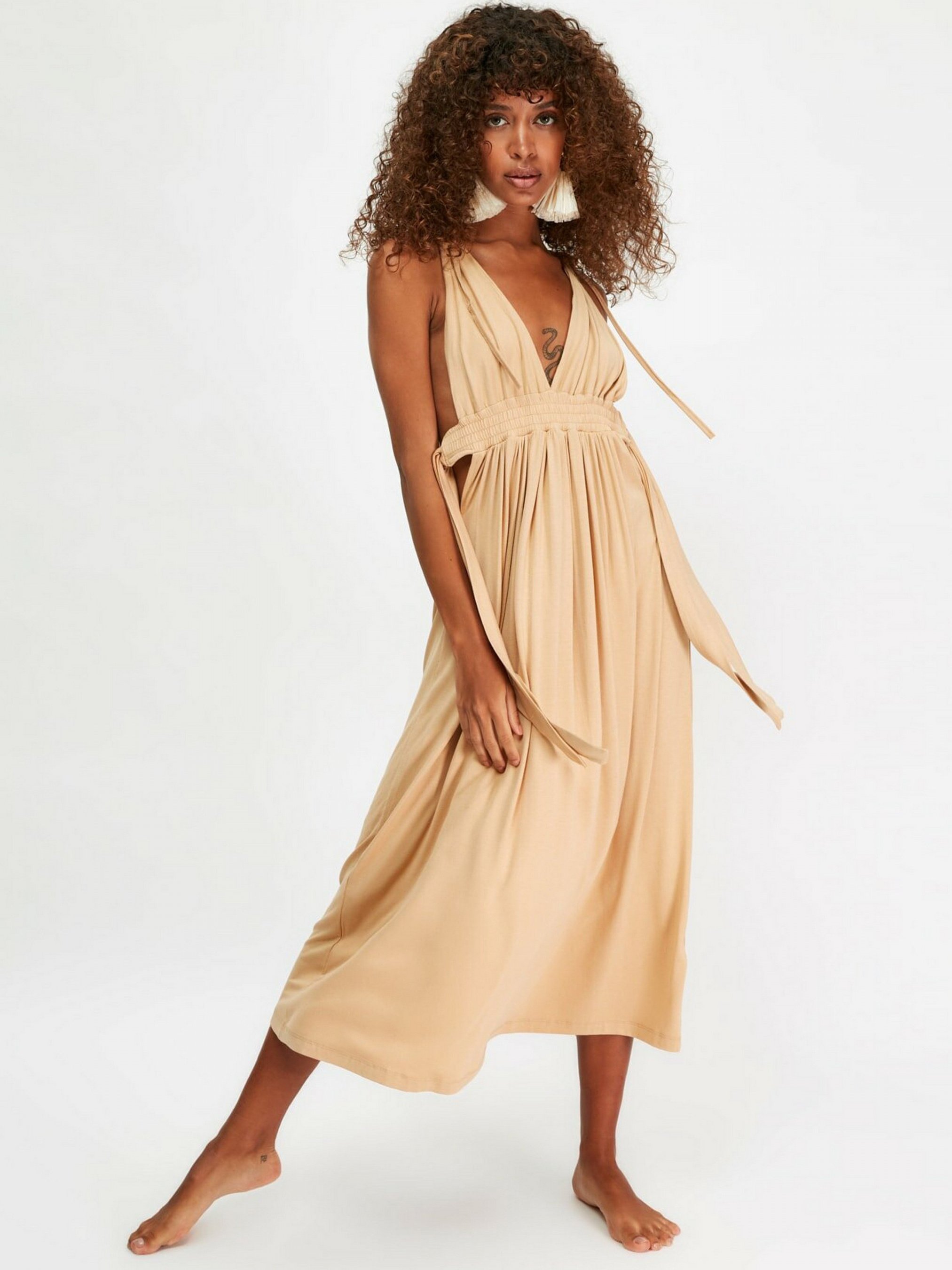 Платье миди Trendyol модель TBESS21EL4195/Bej