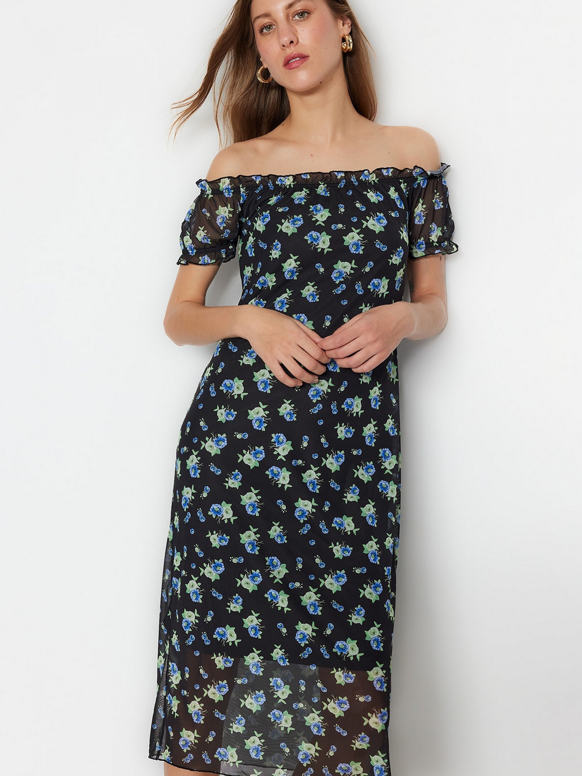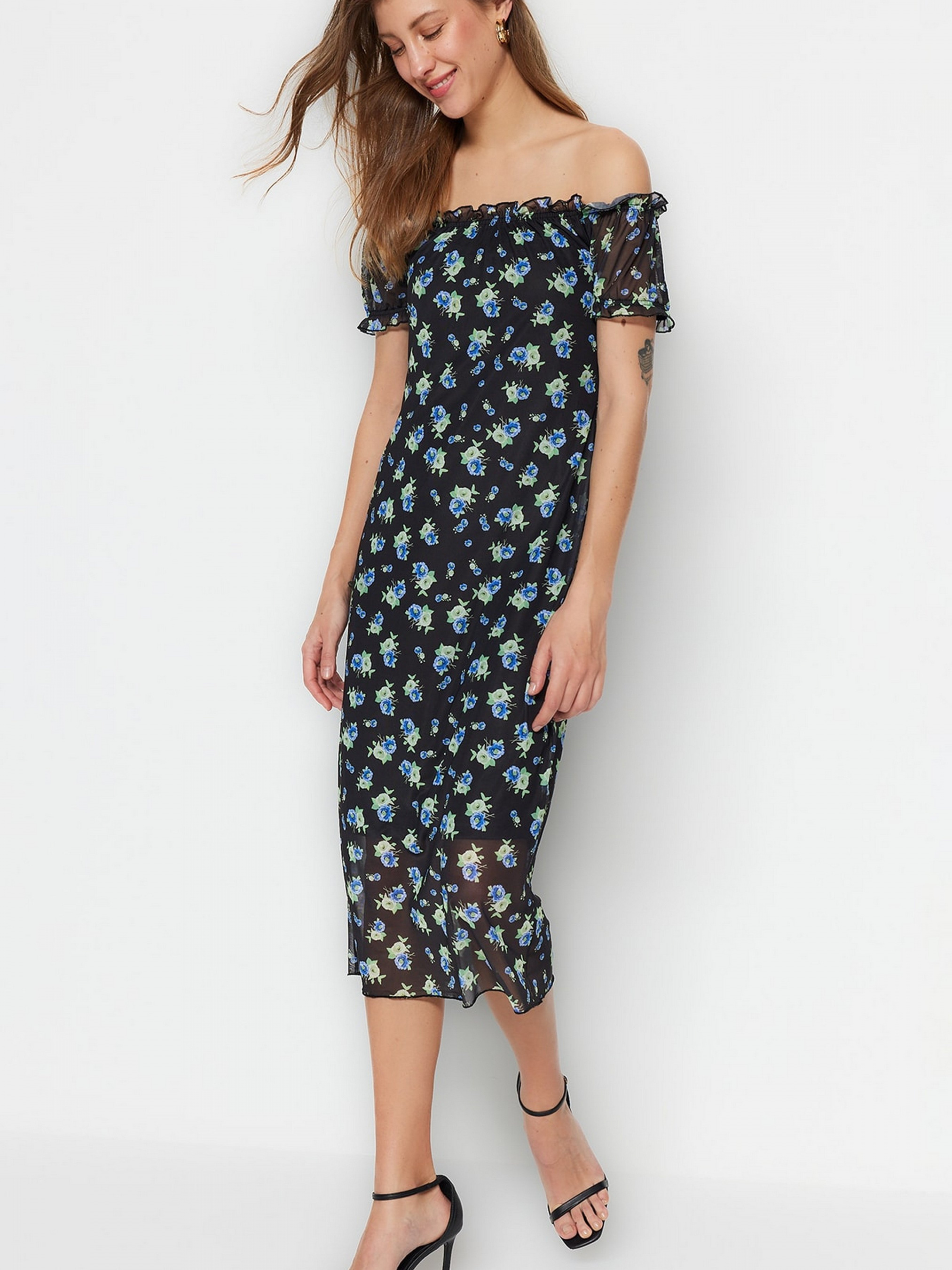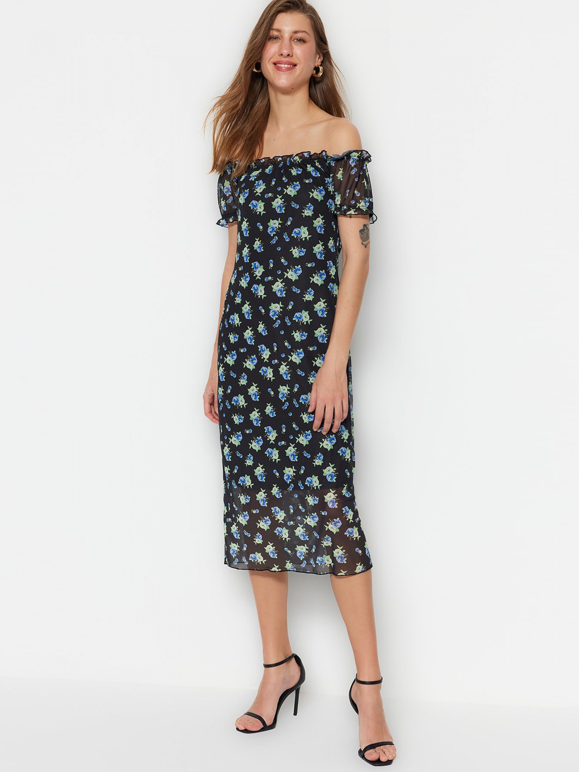 Платье миди Trendyol модель TWOSS23EL00424/Siyah