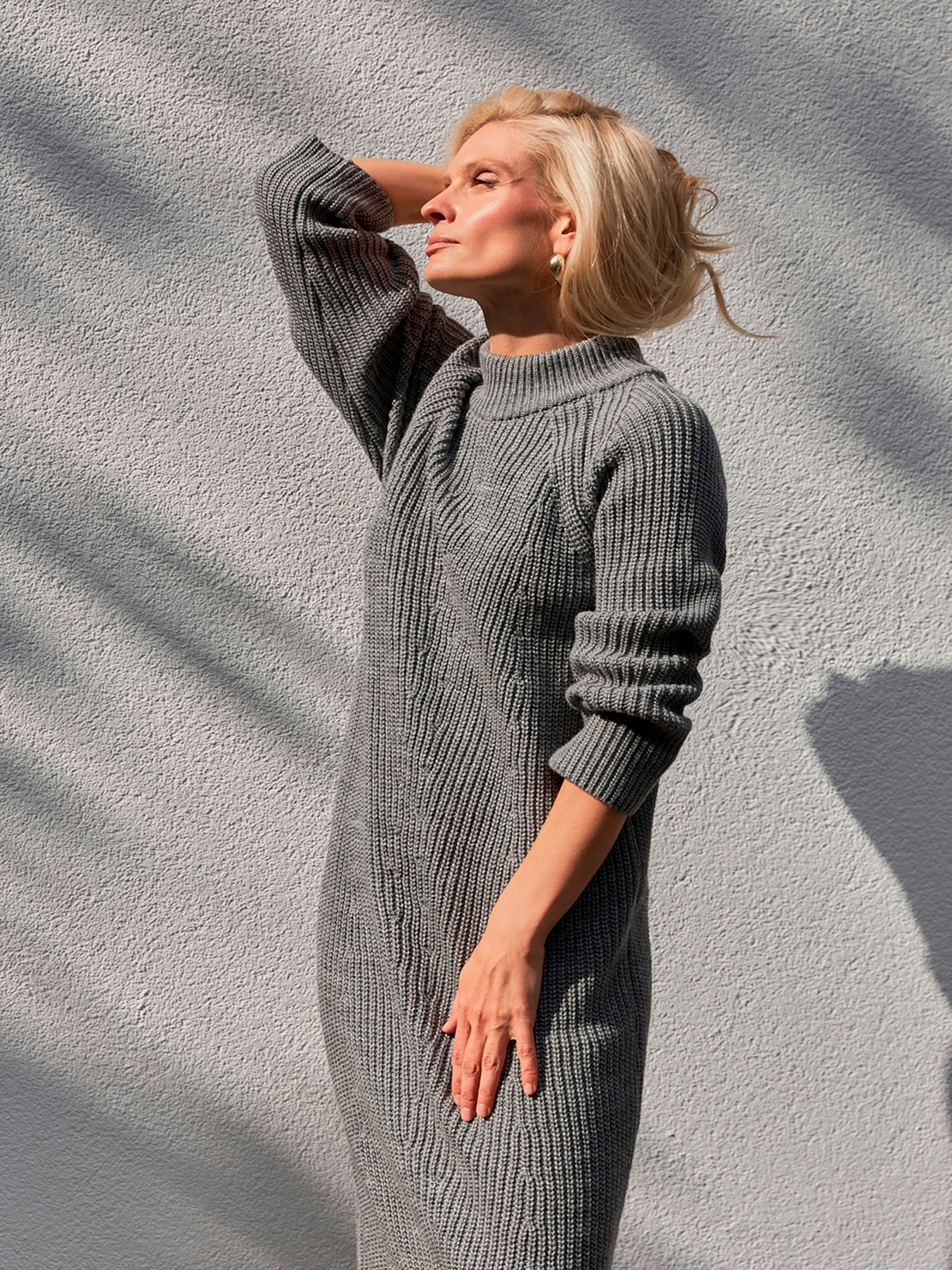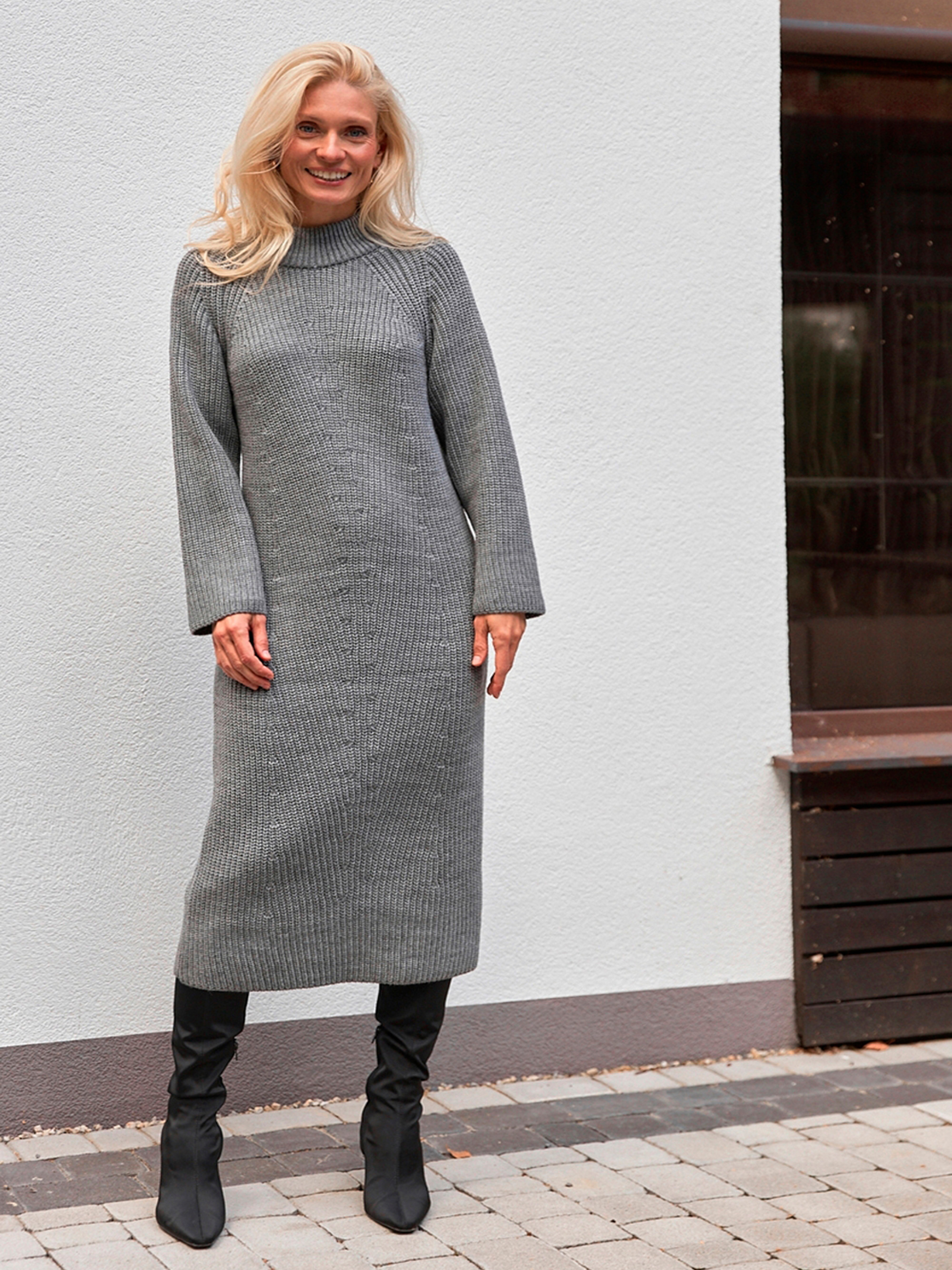 Елегантна міді-сукня, створена для прохолодного сезону, поєднує комфорт, тепло та витонченість. Завдяки щільному стабільному плетінню з напіввовняної пряжі вона чудово тримає форму, забезпечуючи приємні відчуття під час носіння. Мінімалістичний орнамент на передній частині додає образу стриманої елегантності, а комір-стійка ніжно огортає шию, створюючи відчуття затишку. Основні характеристики: Довжина: міді — універсальна та зручна для повсякденного та ділового образу. Матеріал: напіввовняна пряжа — тепла, м’яка та зносостійка. Склад тканини: вовна 40%, віскоза 25%, акріл-софт 20%, поліамід 15%. Деталі: комір-стійка, мінімалістичний орнамент спереду, щільне трикотажне плетіння. Силует: приталений, комфортний, підкреслює фігуру. Як носити: Сукня чудово поєднується з високими чоботами або черевиками, пальтом чи подовженим жилетом. Ідеальний варіант для офісу, прогулянок або вечірніх виходів у прохолодну пору року. Можна доповнити ременем для акценту на талії та стильними прикрасами.
