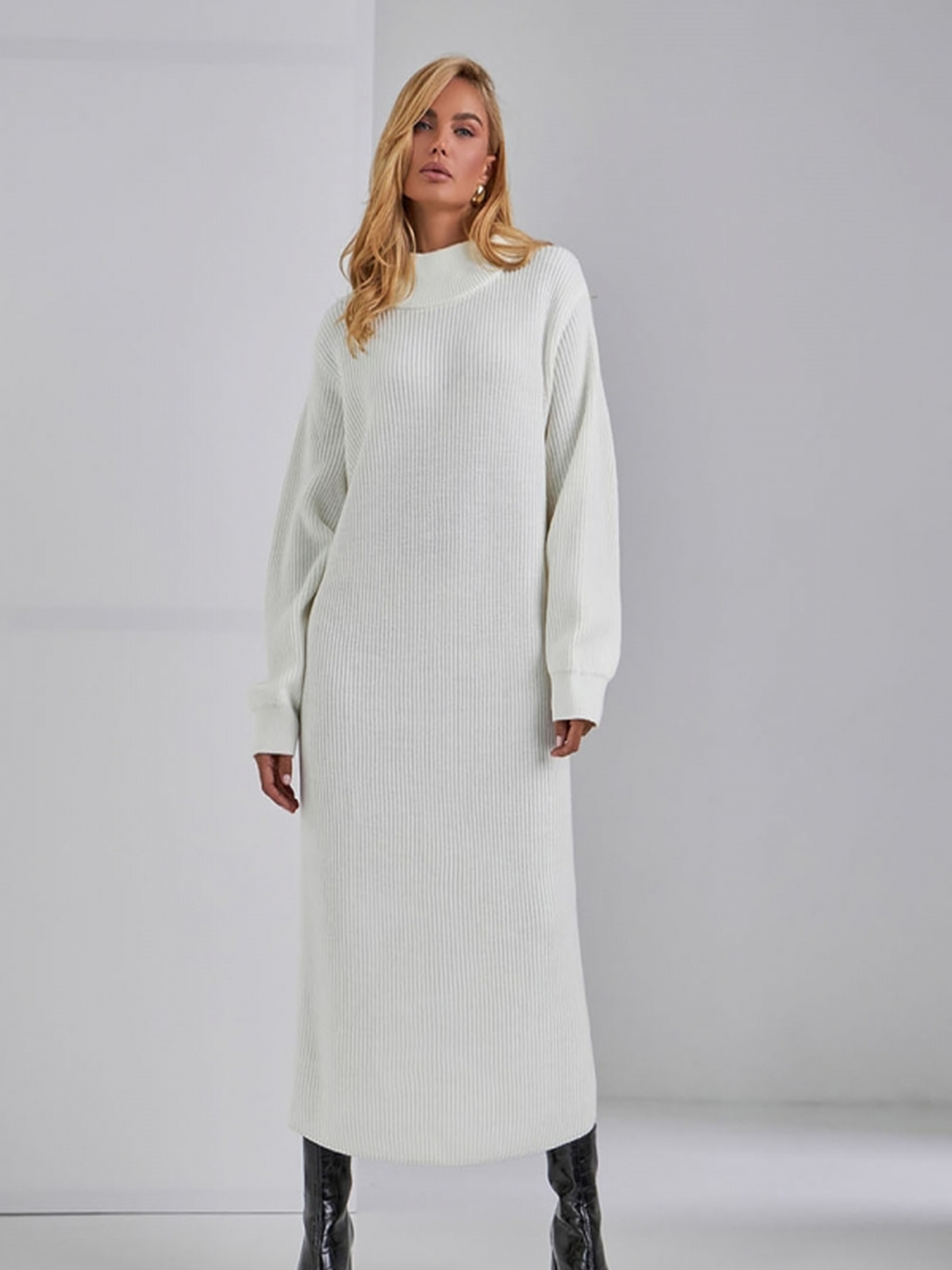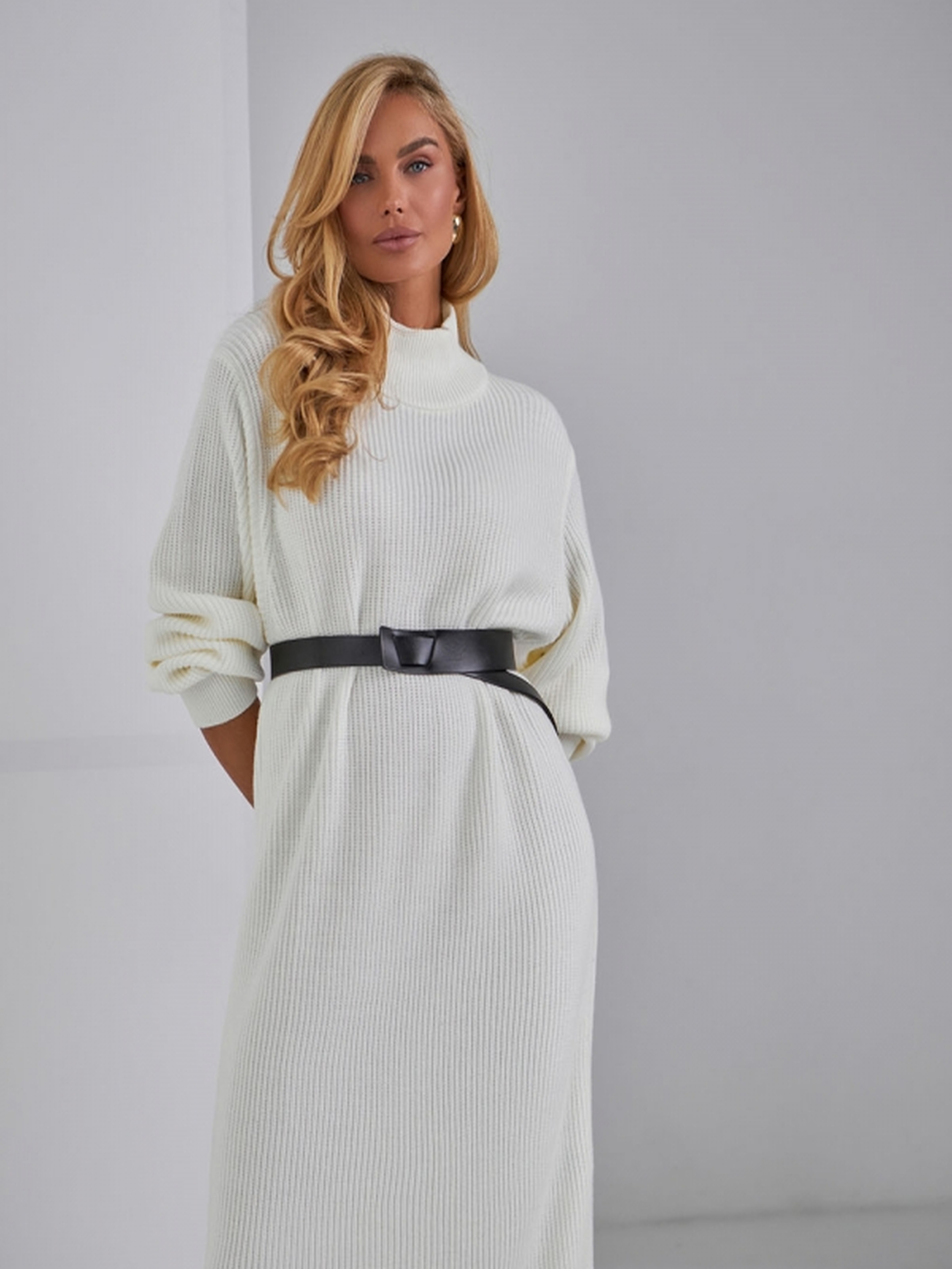 Ця елегантна в'язана сукня довжиною міді виконана з приємної на дотик напіввовняної пряжі, що дарує тепло та комфорт в осінньо-зимовий період. Модель напівприлеглого силуету з коміром "хомут" виглядає стильно і практично, ідеально підходить для холодних сезонів. Пластичне переплетення чудово тримає форму, не сковуючи рухів. Сукня доповнюється широким в'язаним поясом, що додає акценту на талію та підкреслює ваш образ. Вона стане універсальним вибором як для офісних, так і для повсякденних образів. • Матеріал: напіввовняна пряжа • Фасон: напівприлеглий силует • Довжина виробу: близько 115–119 см (±2 см) • Ширина в нерозтягнутому стані: 50–56 см • Ширина в розтягнутому стані: 60–66 см • Довжина рукава: 59–58 см • Ширина плеча: 10–15 см • Ширина рукава по низу: 10 см • Висота пройми: 27–29 см • Висота коміру: 8 см • Довжина поясу: 1,8 м • Ширина поясу: 5 см • Сезон: демісезонний, осінь / зима • Призначення: офісний стиль, повсякденний вигляд, зимовий образ • Особливості: комір "хомут", широкий в'язаний пояс, комфортний крій Цю сукню можна носити з елегантними чоботами чи ботильйонами для створення стильного зимового образу, додаючи класичні аксесуари, такі як сумка та рукавички.