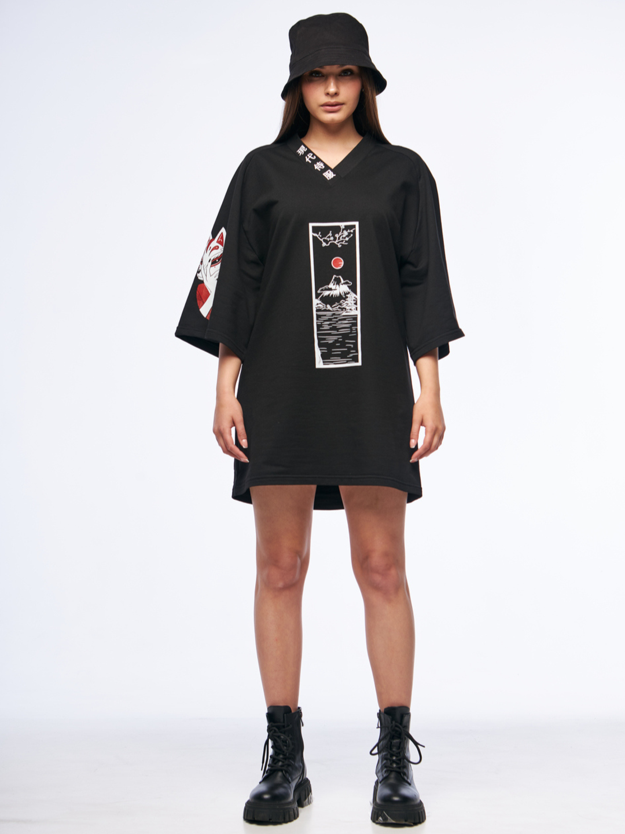 Состав ткани: 95% хлопок, 5% полиэстер. Особенности материалов и фурнитуры: Двунитка - трикотажная ткань средней плотности с гладкой поверхностью. Хлопок обеспечивает комфорт и дышащие свойства, а полиэстер повышает износостойкость и стабильность формы. Ключевые особенности модели: Платье-футболка с удлиненным оверсайз кроем для создания стильного образа. Горловина имитирует кимоно, что добавляет уникальности платью. На полочке расположен принт японского орнамента, а на левом рукаве - принт Кицунэ, что добавляет оригинальности и акцентирует внимание на стиле. Сопутствующие товары: Мессенджер SA-2407 Рекомендации по уходу: Машинная стирка при макс. 30 ºC Нельзя использовать отбеливатель Глажка при макс. 150 ºC Химчистка запрещена Можно сушить в сушилке при низкой температуре