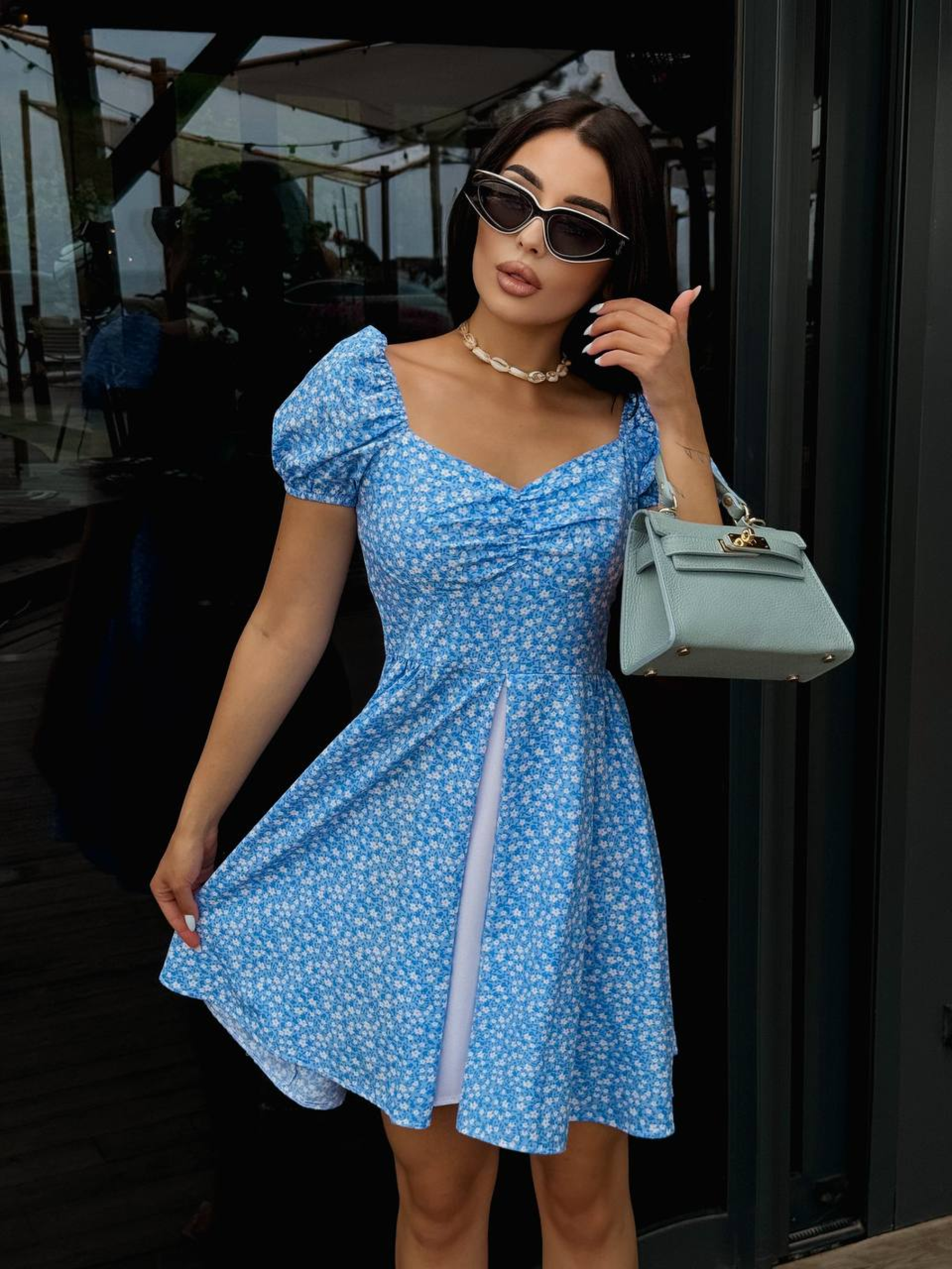 Жіноча літня міні сукня з коротким рукавом — це втілення ніжності та небесної свіжості у вашому гардеробі. Виконана у приємному блакитному кольорі з витонченим квітковим візерунком, ця модель нагадує про безтурботні літні дні та квітучі сади. Лаконічний крій А-силуету робить її універсальним вибором для будь-якої події: від ранкової кави на терасі до вечірньої прогулянки парком. Це плаття, яке підкреслить вашу легкість та природну чарівність. Дизайн та переваги фасону А-силует: Класичний крій, який м'яко розширюється донизу, створюючи жіночний образ і приховуючи дрібні недоліки. Це фасон, який пасує більшості типів фігури. Довжина міні: Підкреслює стрункість ніг і дозволяє почуватися комфортно навіть у пік літньої спеки. Короткий рукав: Класичний рукав забезпечує надійний захист плечей від сонця, водночас додаючи образу стриманості та охайності. Блакитний квітковий принт: Свіжий та актуальний візерунок, який легко комбінується як із білими кедами, так і з елегантними босоніжками на підборах. Характеристики: Матеріал: Софт (soft-touch). Склад: 82% Поліестер, 15% Віскоза, 3% Еластан. Колір: Блакитний із квітковим принтом. Довжина: Міні. Фасон: А-силует. Стиль: Повсякденний (Casual). Сезон: Літо. Виробник: Україна. Рекомендації з догляду: Для збереження яскравості кольорів та структури тканини: Прання при температурі не вище 30-40°C у делікатному режимі. Не використовуйте відбілювачі з хлором. Сушити у розправленому вигляді (на плічках), щоб уникнути зайвих заломів. Прасувати при низькій температурі з виворітного боку або використовувати вертикальне відпарювання.