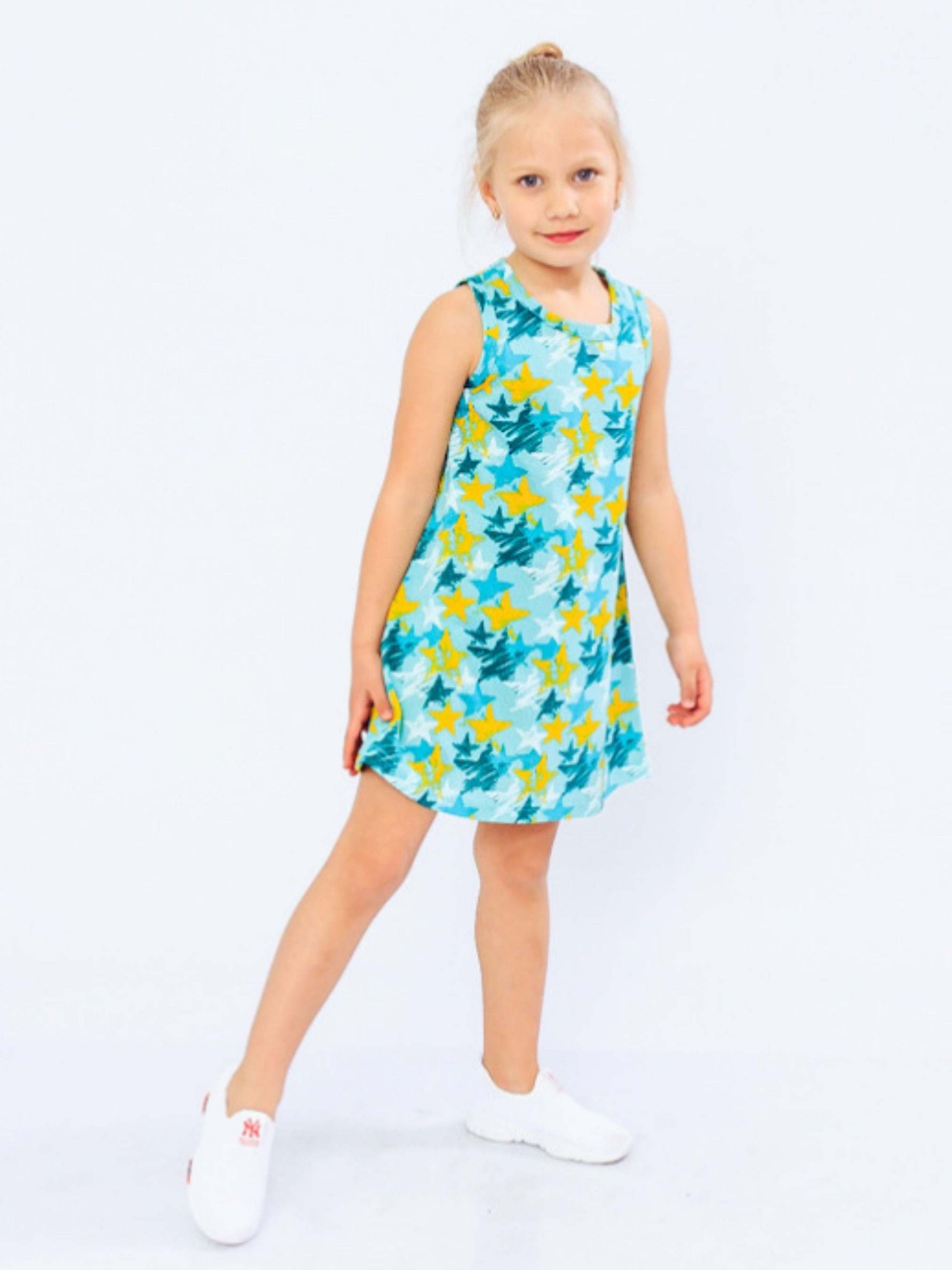 Полотно: кулір набивний Склад полотна: 100% бавовна Зріст: 104-134 Практичний і зручний одяг від бренду Носи Своє створений для найактивніших і стильних дітей. Завдяки високій якості використовуваних для пошиття матеріалів вироби компанії служать довго цінуються батьками і приносять максимальний комфорт своїм власникам. Плаття-майка ідеально підійде для милої дівчинки. Сарафан кольору ніагара - класична модель з лаконічним дизайном в якій ваша дівчинка перетвориться в милу лялечку. До такого вбрання підійдуть пінетки і туфельки різних відтінків а також світла панамка або солом'яний капелюшок. Вільна модель не сковує рухів до того ж в такому вбранні шкіра буде дихати і ніякі подразнення не потурбують. Ретельно оброблені шви і натуральна бавовна дбайливо взаємодіють з чутливим епідермісом не травмуючи його. Якісне полотно не буде линяти і деформуватися після частих пранів а також не вицвітає на сонці. Догляд: дбайливе прання при t не більше 40С; прасуваи при t не більше 110С; з вивороту трохи вологою. Величезний асортимент нашого магазину дозволить підібрати стильні речі для Вашого гардеробу а досвідчені менеджери дадуть відповідь на всі виниклі питання. Приємних покупок!