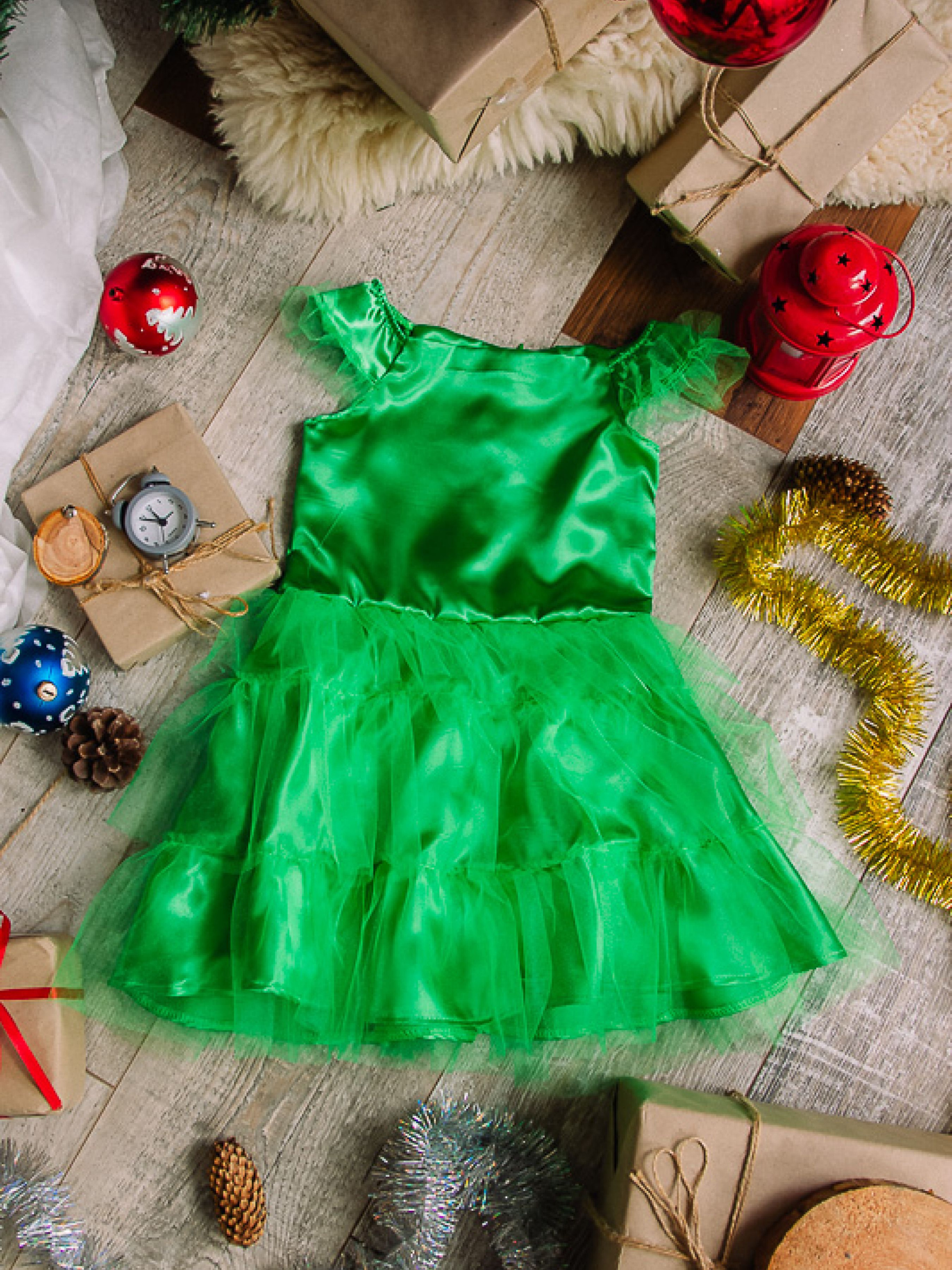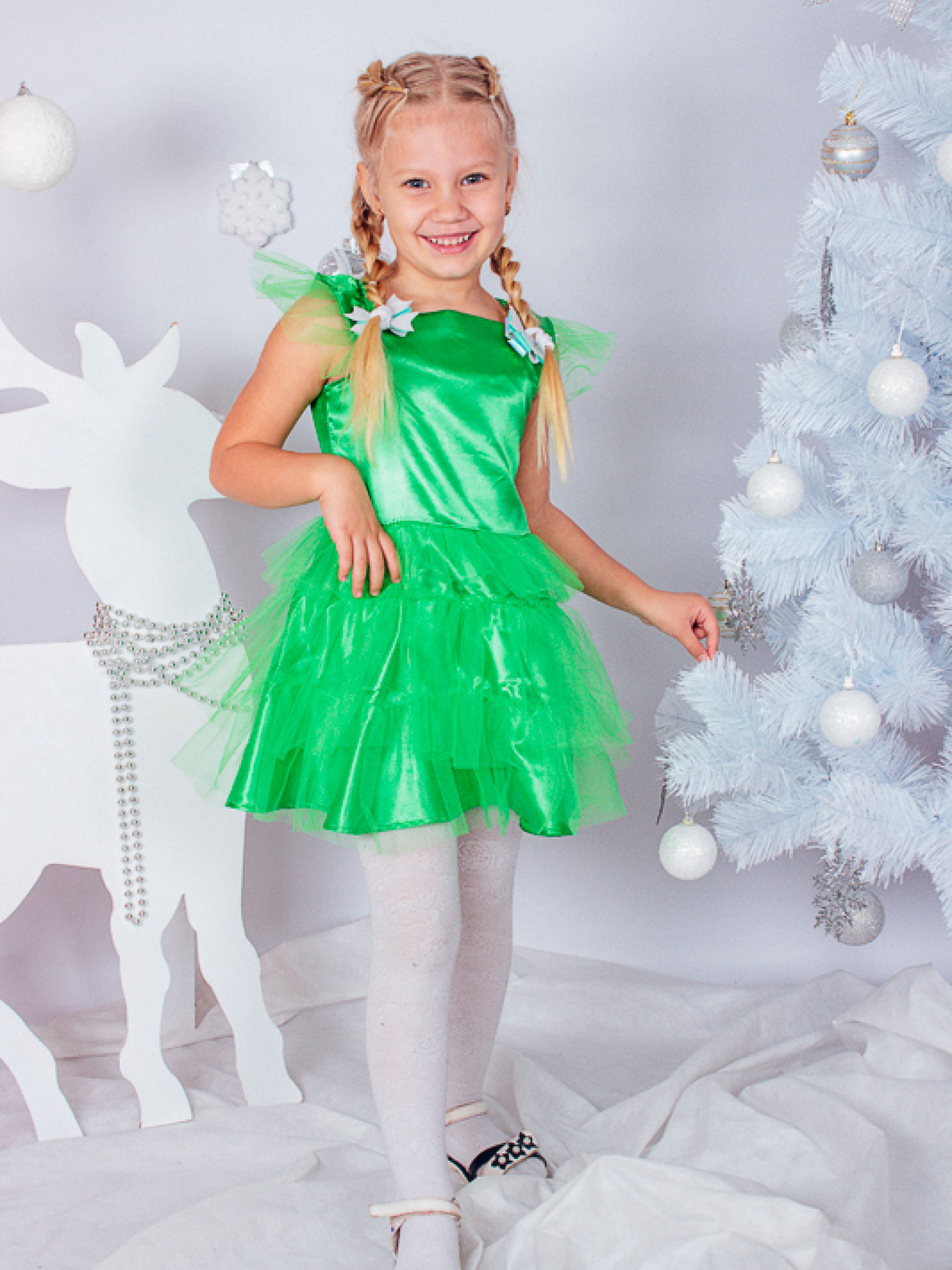 Полотно: атлас фатин Склад полотна: 100% поліестр Зріст: 98-110 УВАГА! Товар обміну та поверненню не підлягає! Ялиночка - головний символ Новорічних свят. Без цієї зеленої красуні не обійтися адже навколо неї водять хороводи Дід Мороз приносить подарунки. Легка і повітряна сукня Ялиночки пошита в комбінації атласу і фатину. Воно неодмінно сподобається маленькій модниці тому що ураз перевтілить її в прекрасну Ялиночку і перенесе в казковий світ чаклунства. У такій сукні святкова подія запам'ятається надовго.
