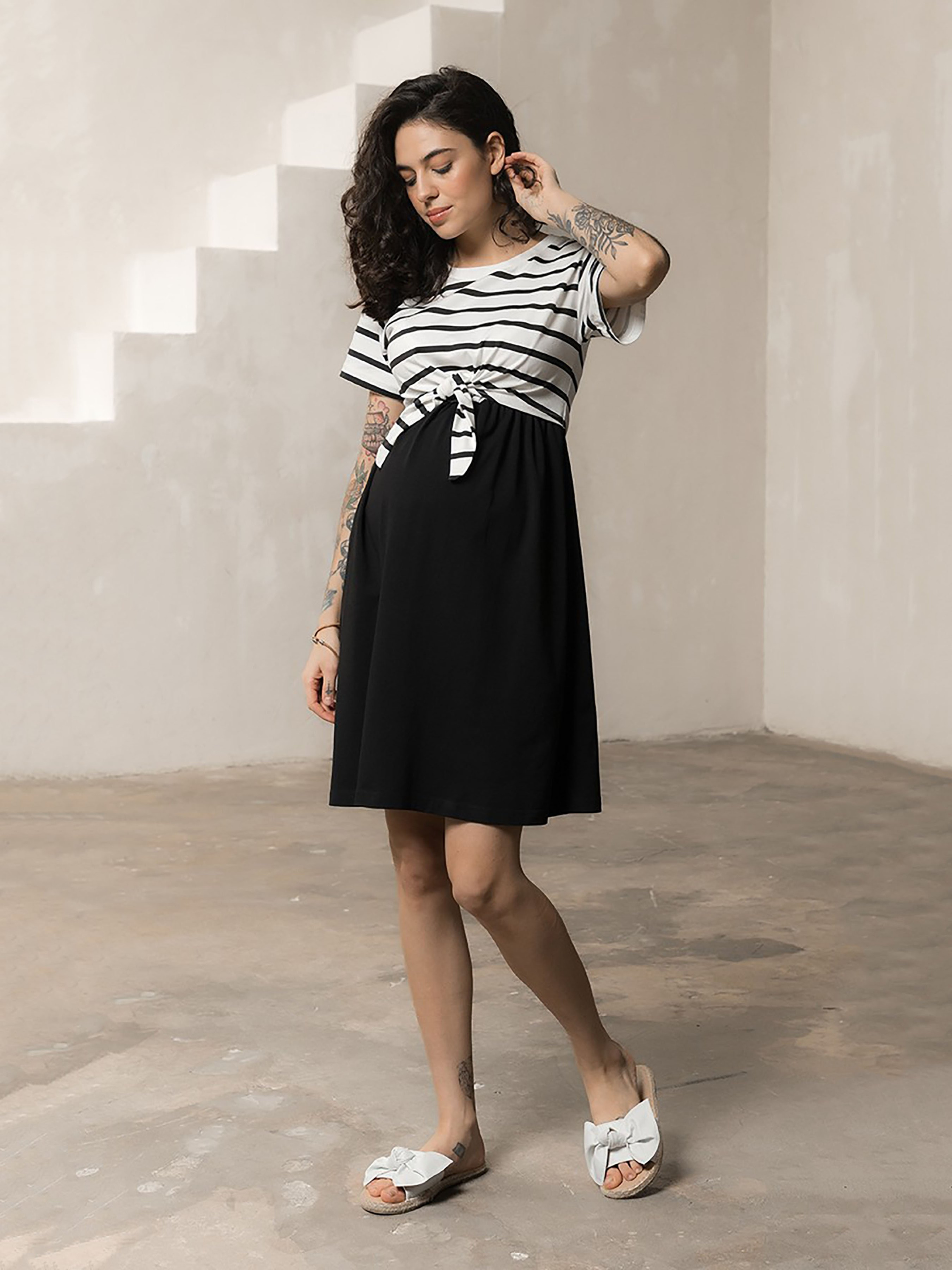 Базовое трикотажное платье для беременных и кормящих мам.