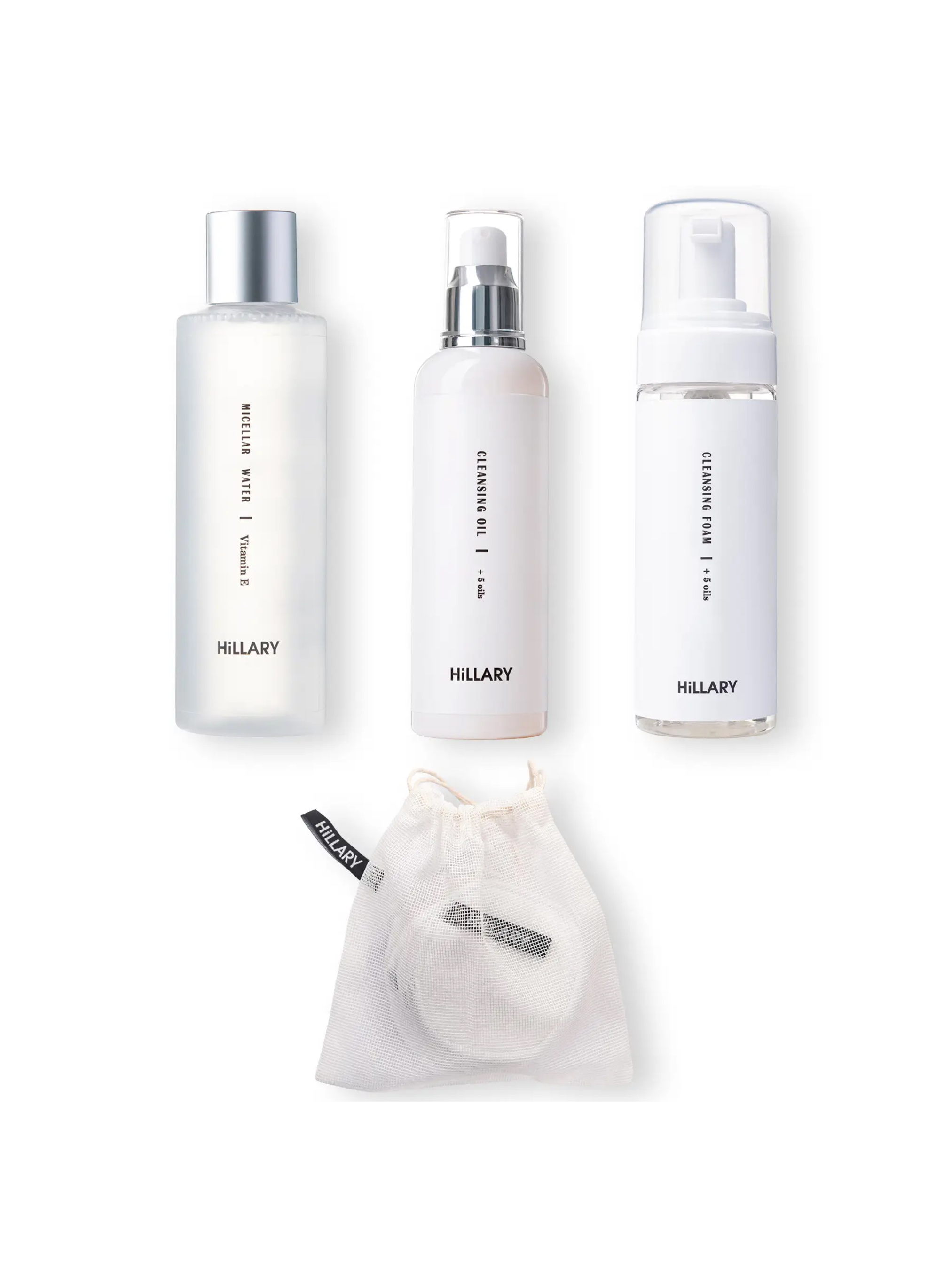 Три шага на пути к здоровой, сияющей и ультрачистой коже! В Комплекс Очищение для нормальной кожи вошло три эффективных и натуральных уходовых продукта, предназначенных для качественного очищения кожи от макияжа, ороговевших клеток и себума. Активные компоненты в составе продуктов комплекса способствуют регенерации, а смесь 5 масел создает вещество, подобное липидному слою, что скрепляет корнеоциты – клетки, которые образуют ороговевший слой кожи. Все продукты Комплекса Очищение для нормальной кожи имеют комфортный рН, бережно и глубоко очищают кожу не нарушая микробиом. Мицеллярная вода HILLARY MICELLAR WATER Vitamin E: предназначена для очищения лица, снятия макияжа и тонизирования кожи; благодаря мицеллам, действующим как магнит, притягивает частички макияжа и жира, идеально очищает кожу; сохраняет баланс гидролипидной оболочки кожи; снимает раздражения и воспаления; подходит для любого типа кожи, а также для снятия макияжа с глаз; не содержит эфирных масел, отдушек, парабенов и силиконов. Гидрофильное масло для нормальной кожи Hillary Cleansing Oil + 5 oils: создано на основе инновационных компонентов растительного происхождения IMWITOR® liteMULS и IMWITOR®PG3 C10; прекрасно подходит для ежедневного очищения кожи; смесь 5 масел создает вещество, подобное липидному слою, что скрепляет карнеоциты – клетки образующие ороговевший слой кожи; не вредит микробиому, усиливает липидобарьєр и сохраняет естественный Ph-баланс кожи; тщательно растворяет и удаляет даже самый стойкий макияж; хорошо смывается и прекрасно подходит для массажа лица; разглаживает мелкие морщины, придает коже лица приятный оттенок и выравнивает тон. Очищающая пенка для нормальной кожи с 5-ю маслами: прекрасно подходит для ежедневного очищения кожи; используется как второй этап глубокого очищения кожи после гидрофильного масла; смесь 5 масел создает вещество, подобное липидному слою, что скрепляет корнеоциты – клетки образуют ороговевший слой кожи; не вредит микробиому, усиливает липидобарьер и сохраняет естественный Ph-баланс кожи; тщательно растворяет и удаляет даже самый стойкий макияж; придает коже лица приятный оттенок и выравнивает тон. ЭКО диски для снятия макияжа: возможность многоразового использования; 100% экологически чистые; подходит для всех типов кожи; гипоаллергенные; мягко очищают и снимают макияж; 10 штук в комплекте; мешочек для стирки в комплекте. Предостережение: Натуральная косметика не является гипоаллергенной. За 24 часа до применения проведите аллерготест на сгибе локтя.