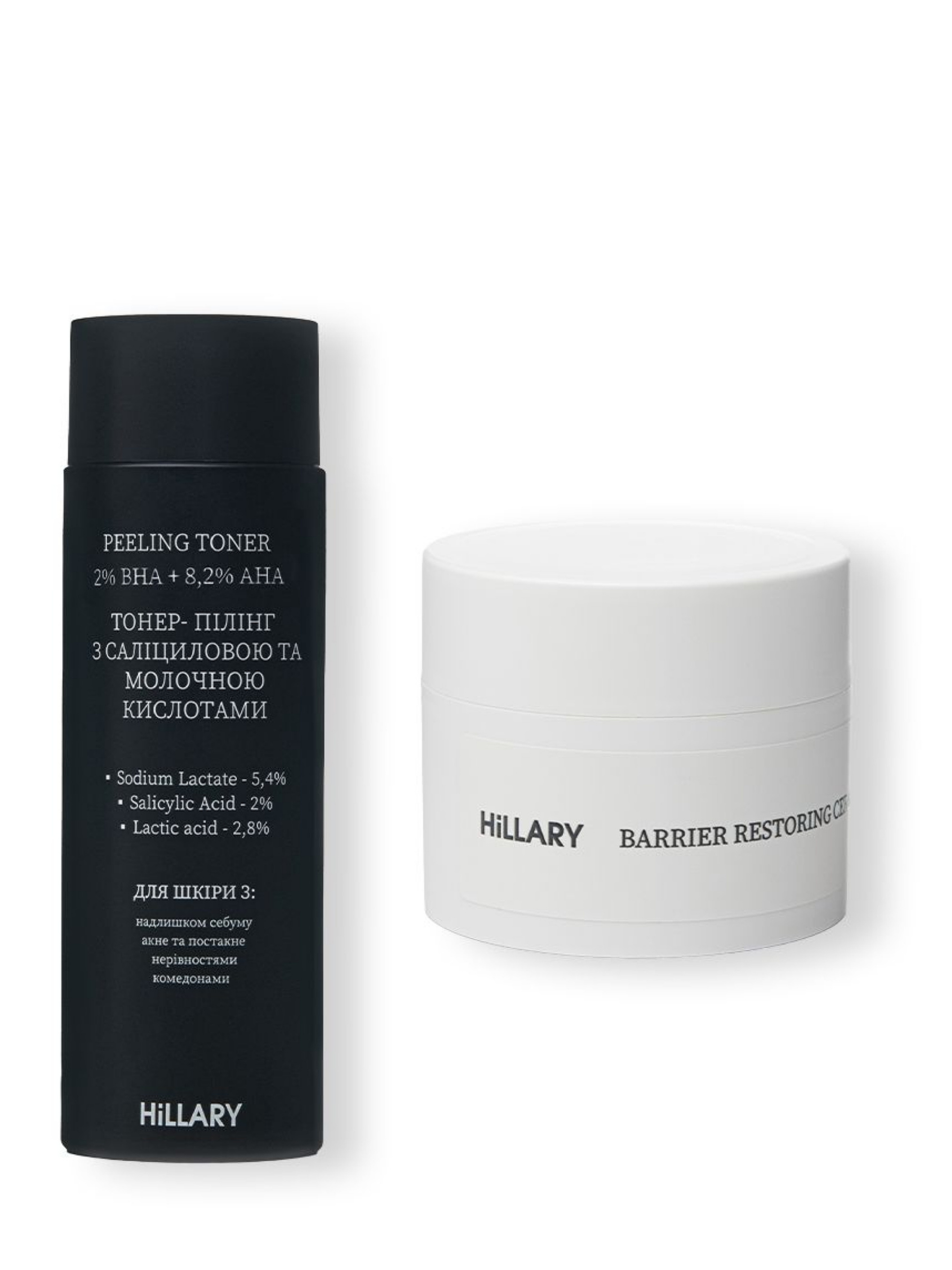 HillaryТонер-пилинг 2% ВНА + 8,2% АНА + Восстанавливающий крем с керамидами и постбиотиками