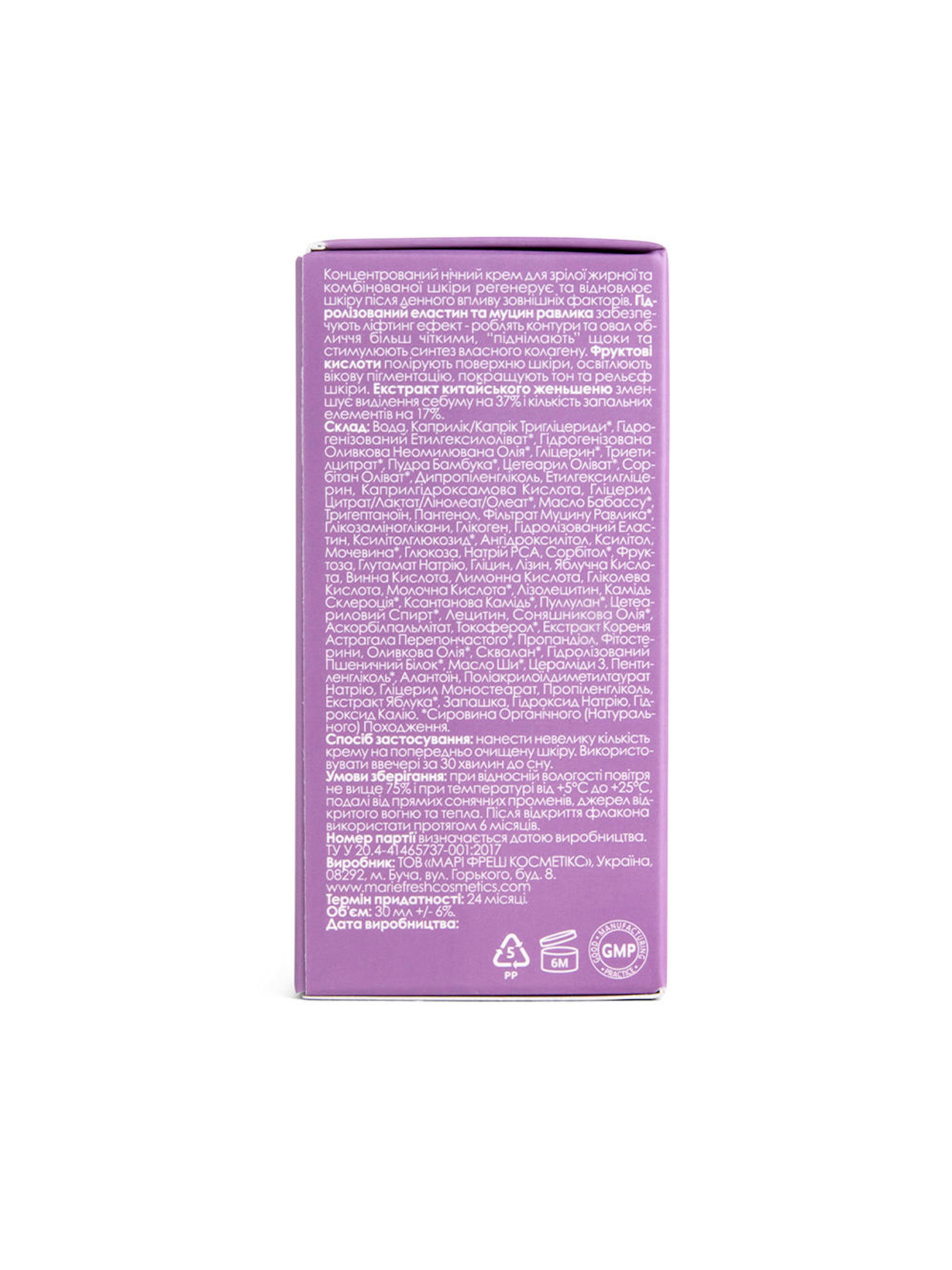 MARIE FRESH CosmeticsНочной крем лифтинг с муцином улитки для зрелой жирной и комбинированной кожи