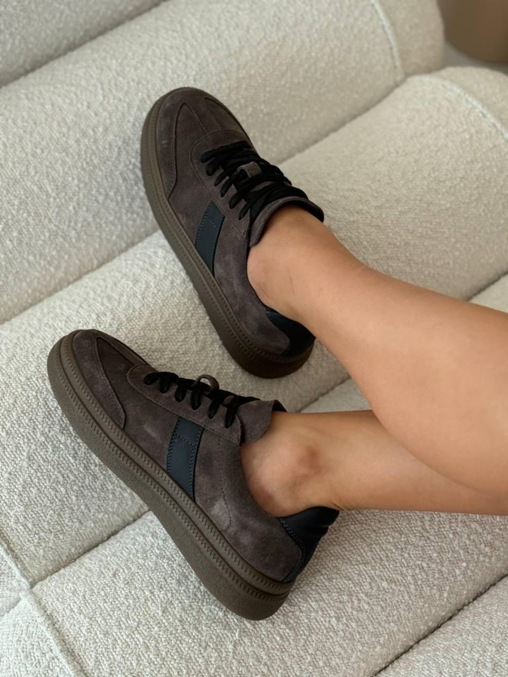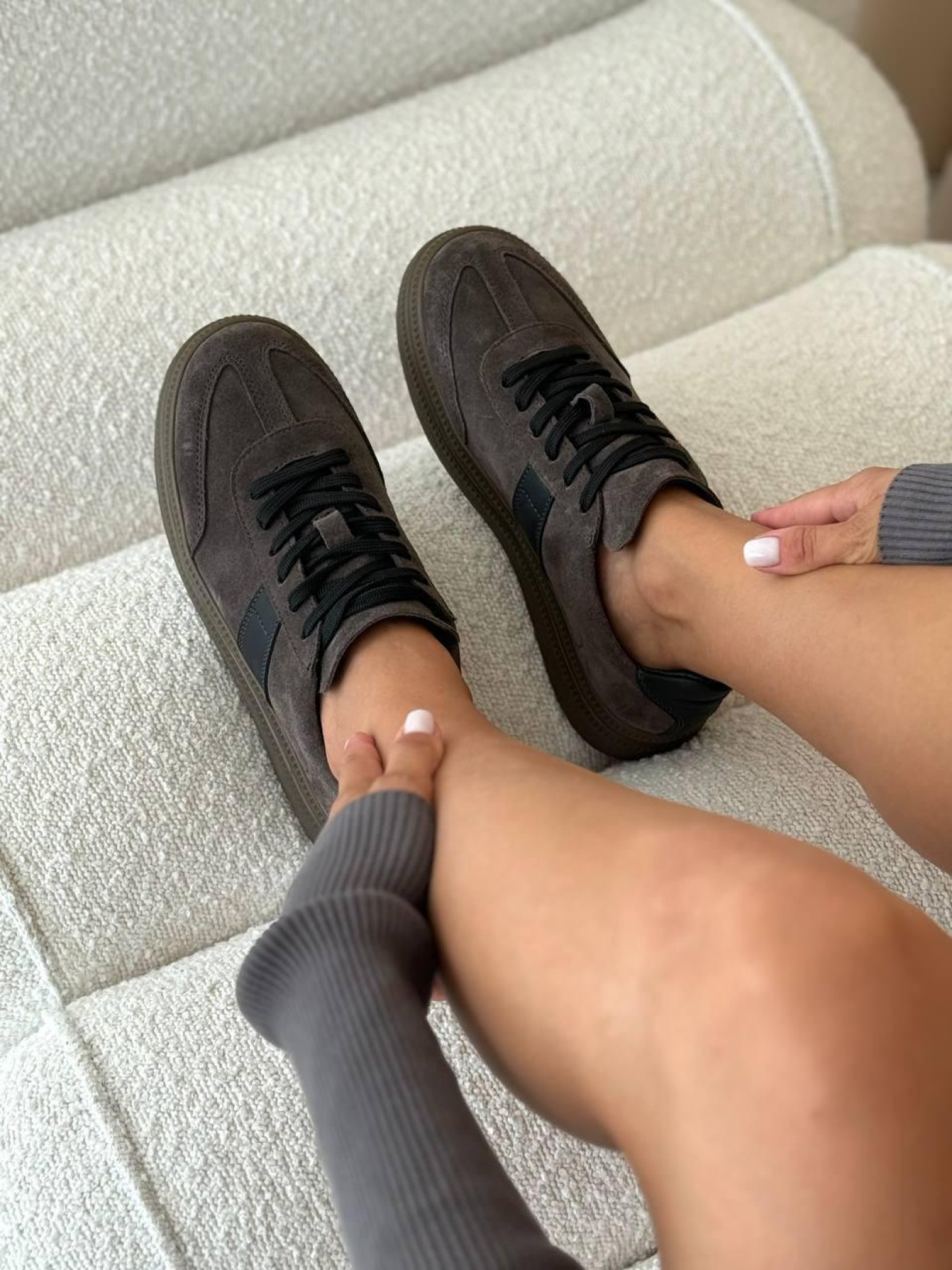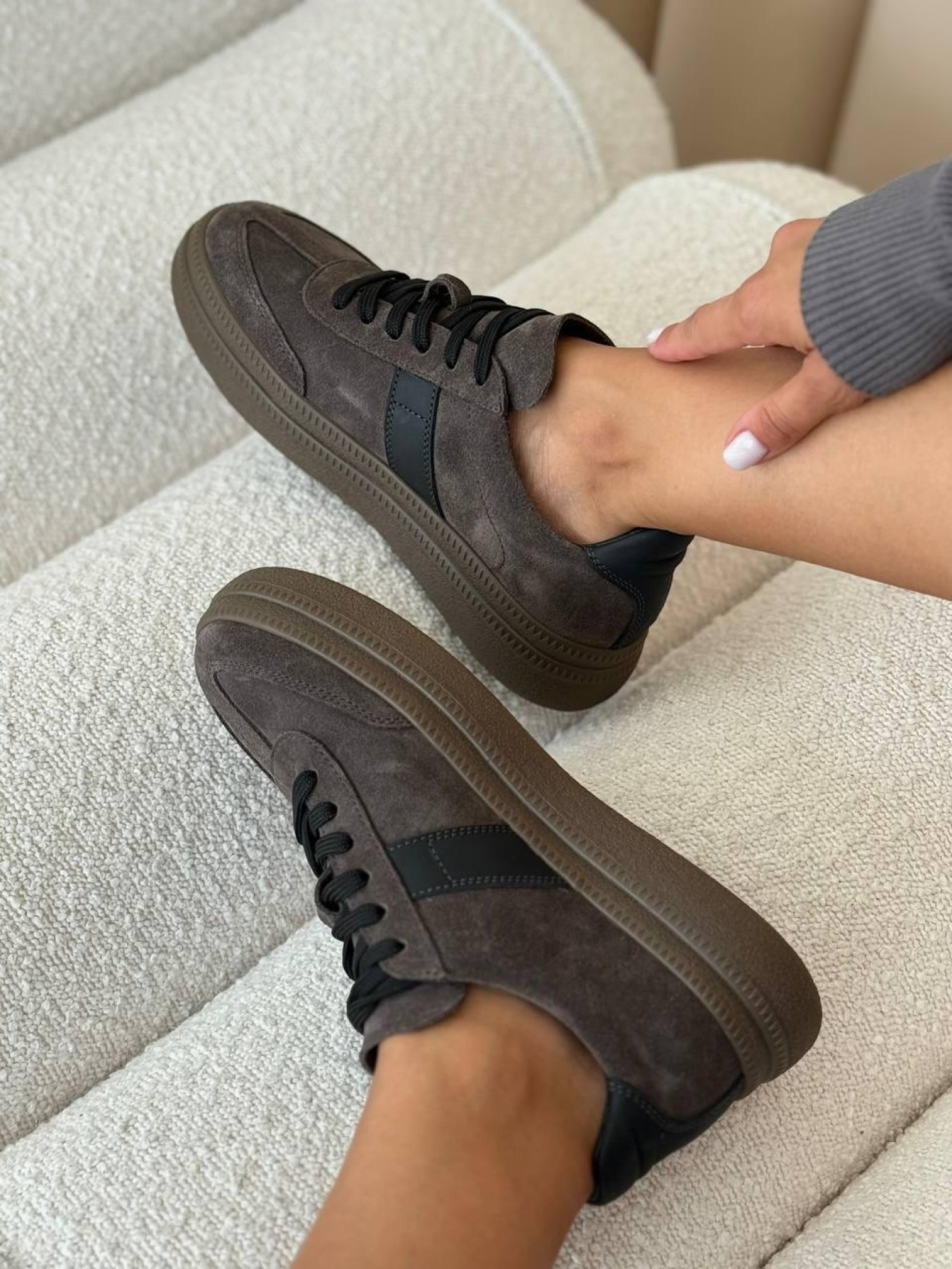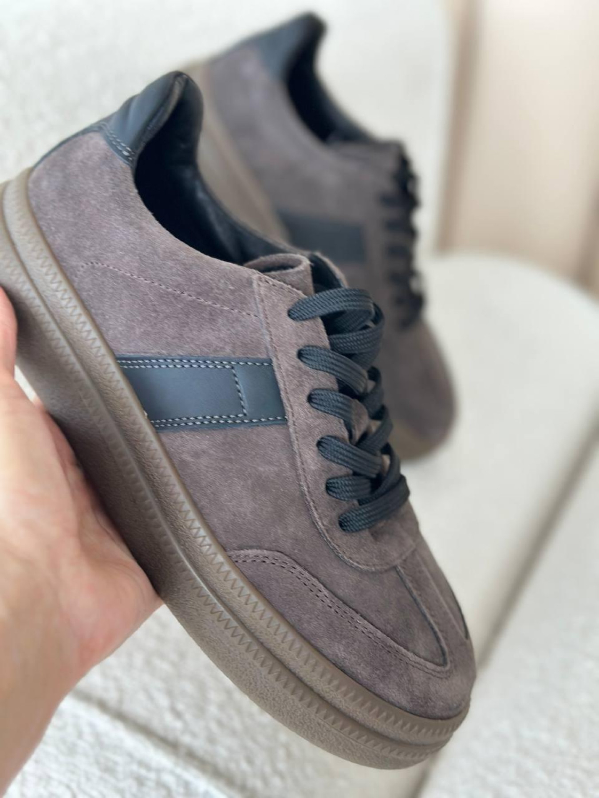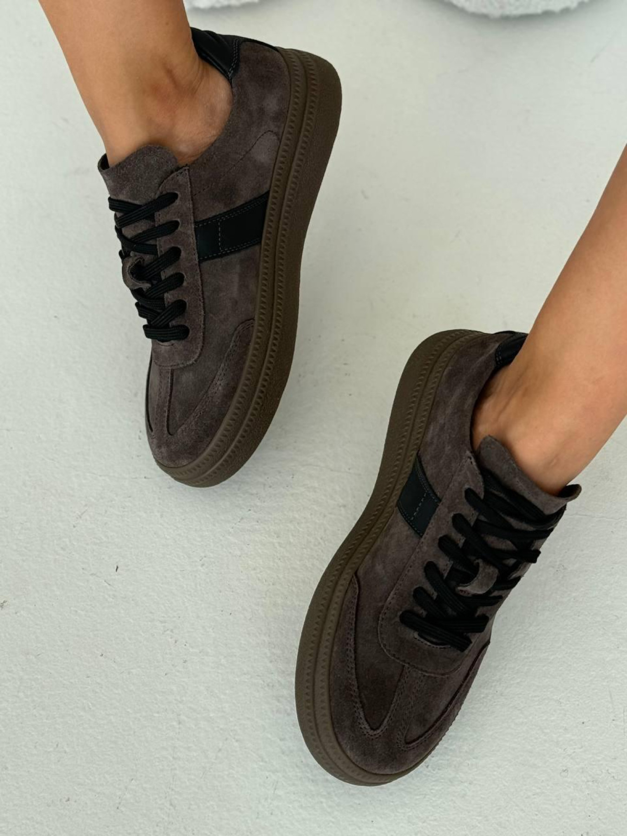 Замшевые кеды с черными матовыми вставками на байке серо-коричневые (123/Лайк7) 39 модель P_203300-S39_204123