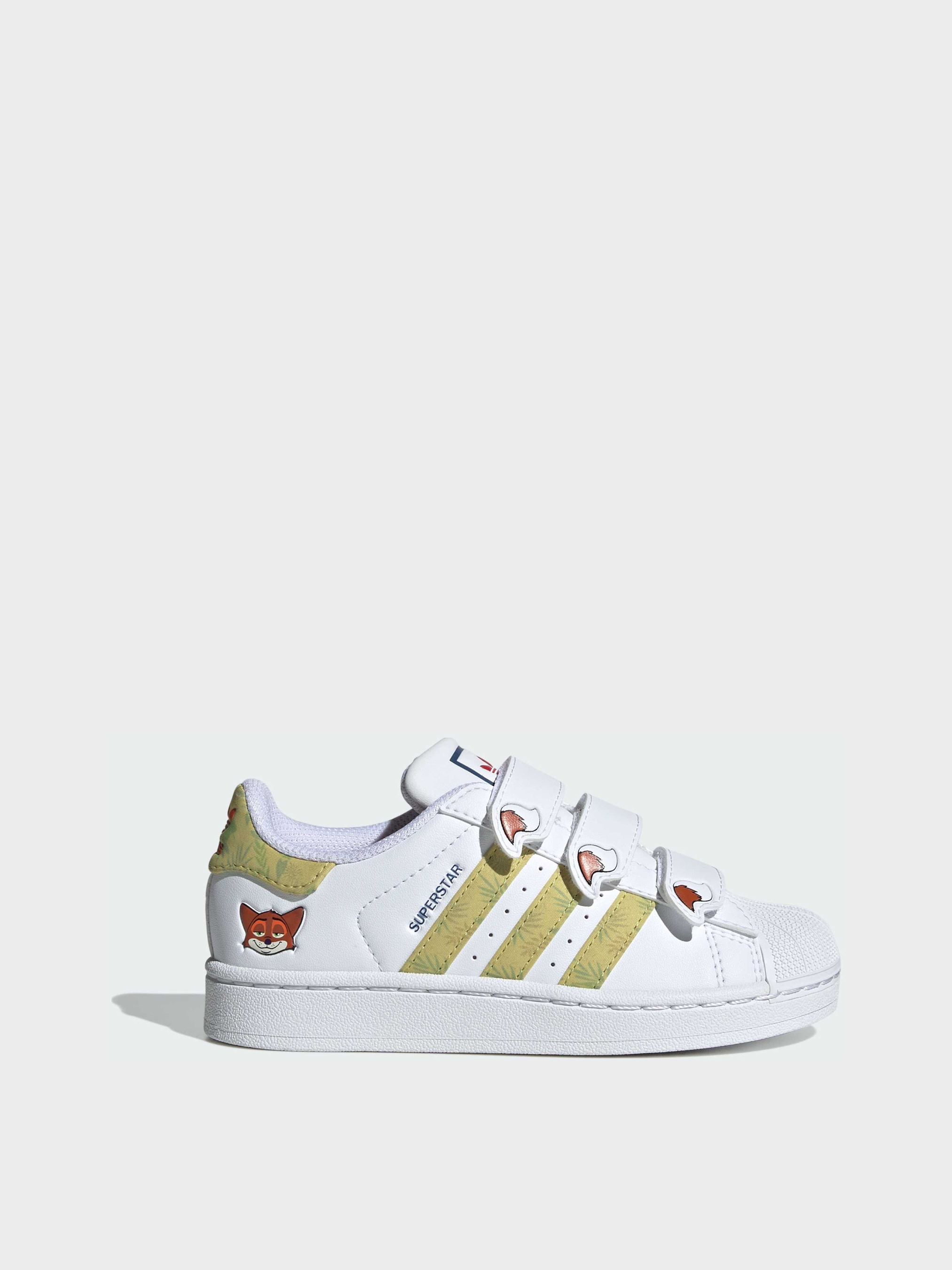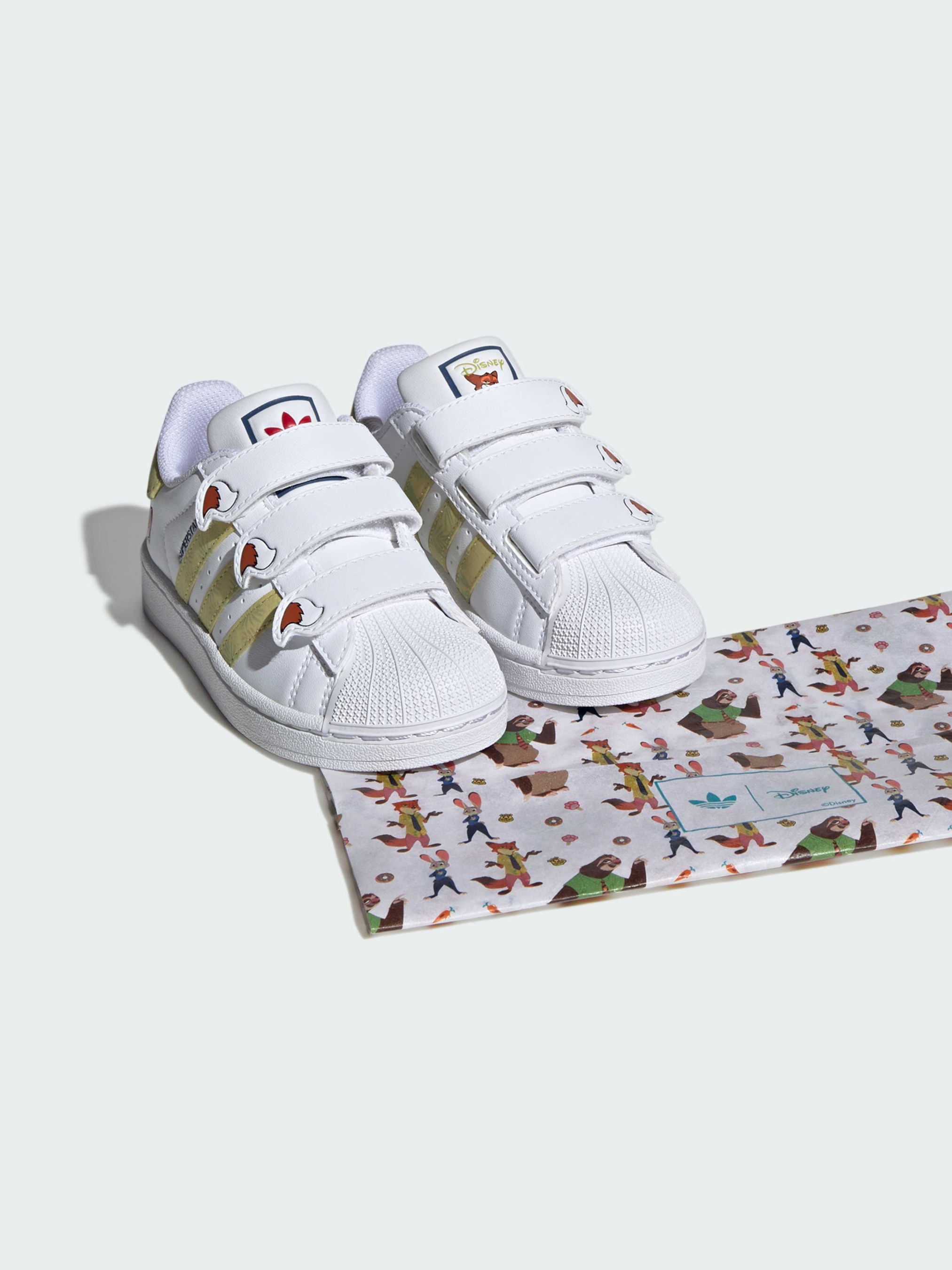 Характеристики ©Disney Верх из синтетических материалов Застежка на липучки Стандартный крой Текстильная подкладка Резиновая подошва Описание Кроссовки adidas Superstar возвращаются. Эти детские кроссовки adidas Superstar вернулись со всеми своими оригинальными деталями и формой, которые доминировали на улицах в 90-х и 2000-х годах. Верх из гладкой кожи на резиновой подошве и культовый дизайн носка в виде ракушки. Вставки в области язычка и пятки обеспечивают комфорт при каждом шаге. Эта версия получила графику, вдохновленную диснеевским мультфильмом «Зверополис».