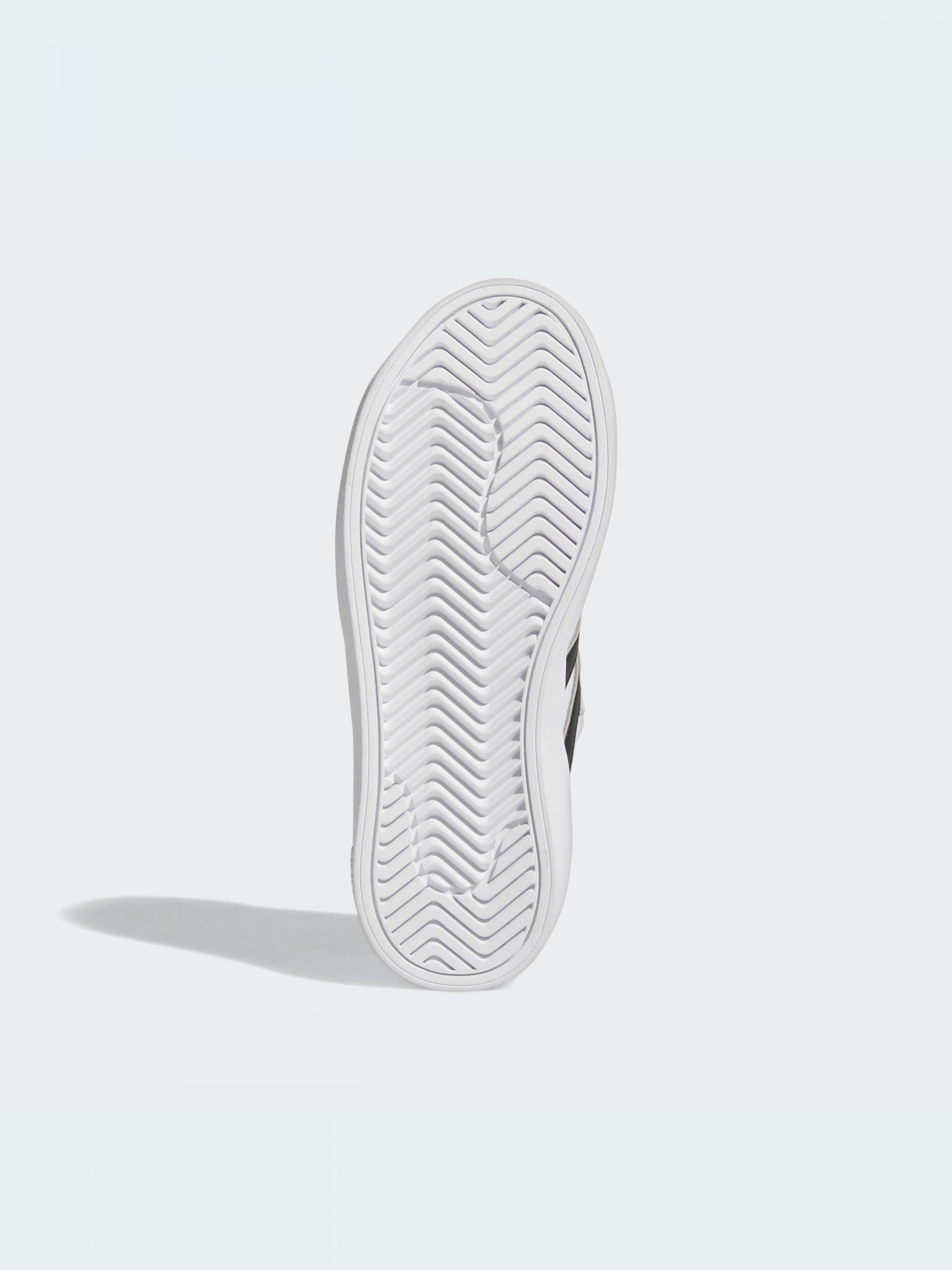 Внеси в гардероб своего ребенка современный стиль и броские теннисные нотки с помощью этих кроссовок adidas. Вдохновленные культовыми кроссовками adidas Superstar, они имеют фирменный стиль, который всегда в моде. Прочные материалы обеспечивают комфорт для ног ребенка изо дня в день, а 3 полоски на боковой стороне завершают образ в стиле эпохи.
