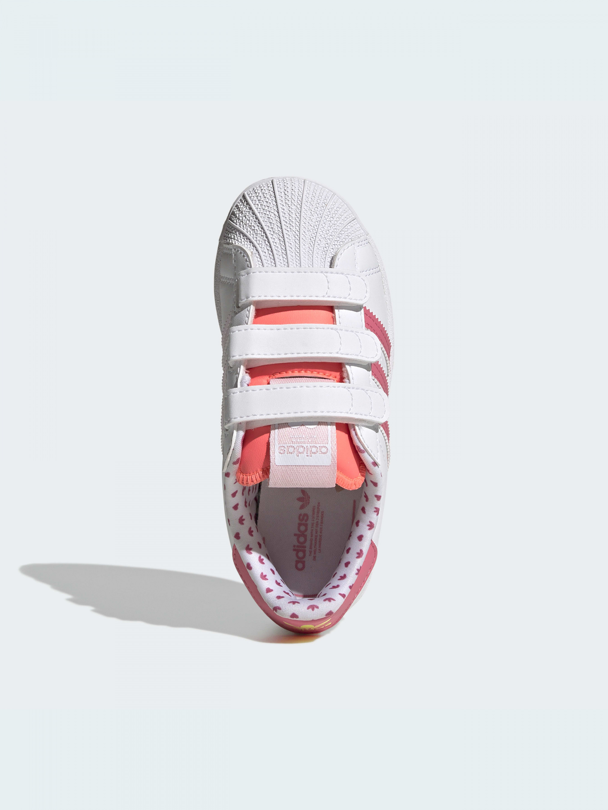 День святого Валентина посвящен не только любви к кому-то, но и любви к себе. Эти детские кроссовки adidas расскажут о важности принятия себя. Романтичные сердечки и нежные цвета поднимут настроение и научат ребенка заботиться о себе. Культовый мысок-ракушка позволит быть самым модным на игровой площадке. Ремешки на липучках помогут ребенку самому снимать и надевать обувь.Верх этой модели на 50% состоит из переработанных материалов и представляет одно из наших решений по сокращению пластиковых отходов.