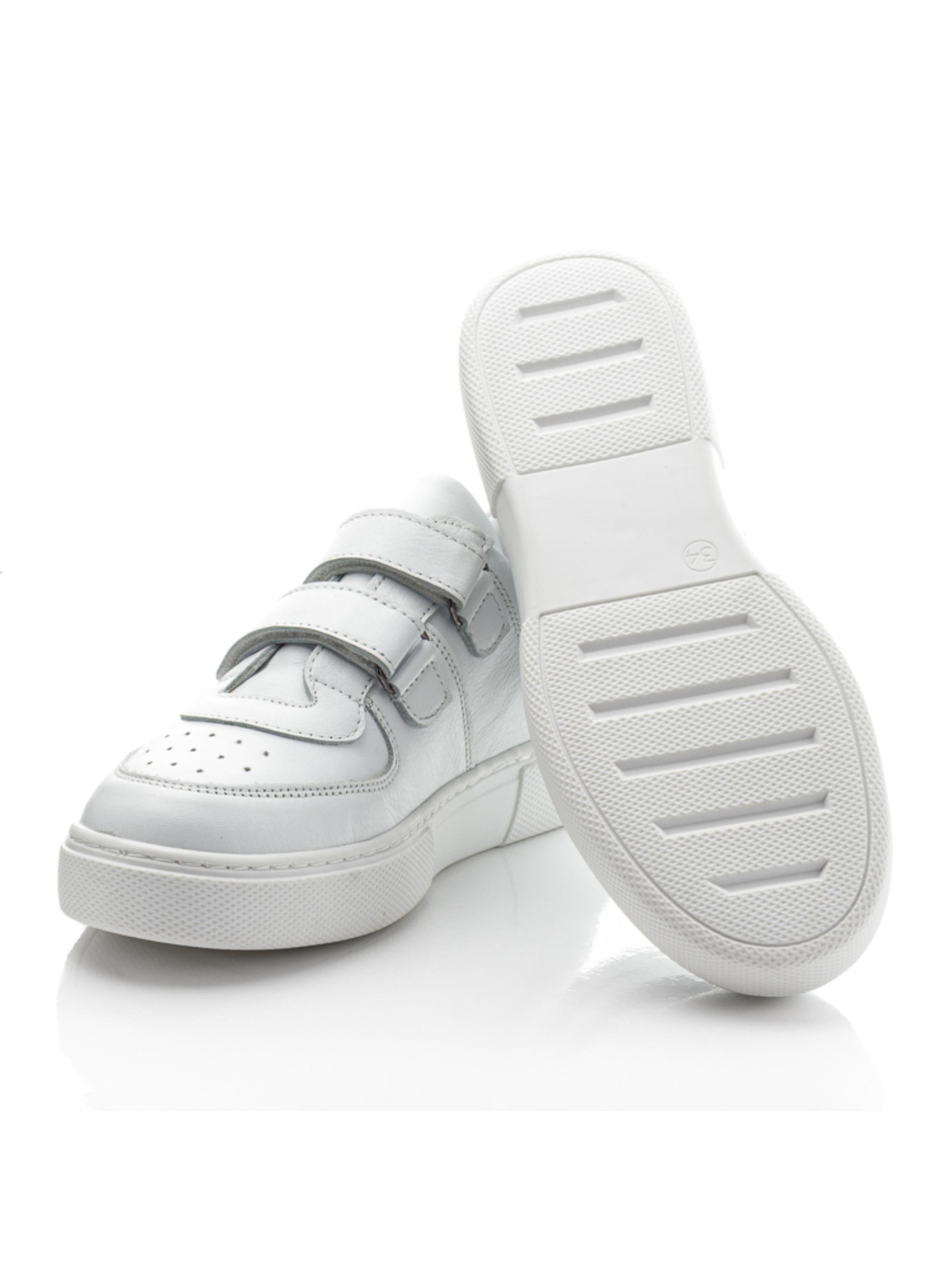 Классические белые кеды — универсальный выбор для всей семьи! Эти стильные кроссовки подойдут как для мальчиков и девочек, так и для их активных и модных мам (размеры 31–40). Модель выполнена полностью из натуральной кожи: как внешний материал, так и подкладка обеспечивают комфорт, воздухопроницаемость и износостойкость. Две удобные липучки позволяют быстро и надежно зафиксировать обувь на ноге, а твердый задник и стелька с супинатором обеспечивают правильную поддержку стопы. Гибкая и удобная подошва делает эти кеды отличным выбором для школы, прогулок или повседневной носки. Стильно, практично и удобно — белые кроссовки, которые никогда не выйдут из моды!