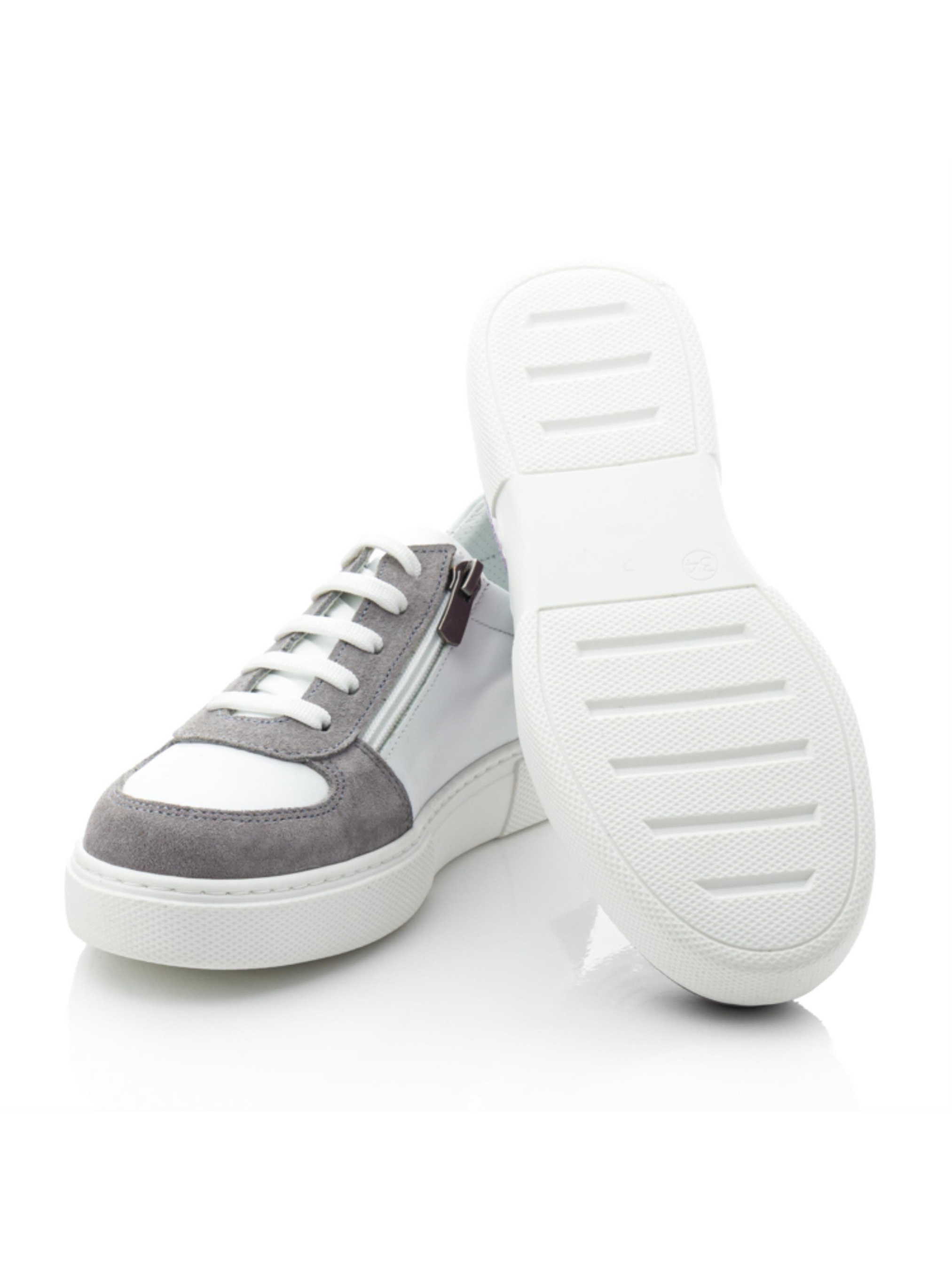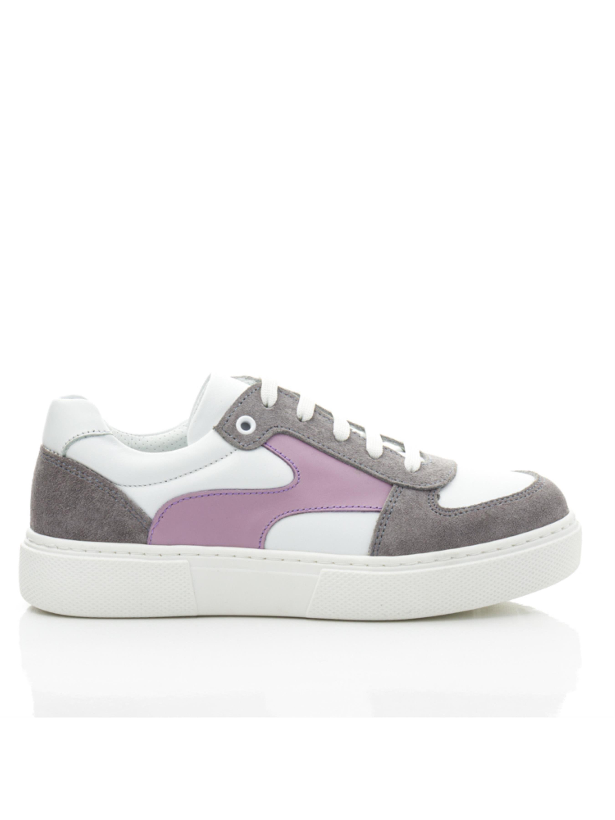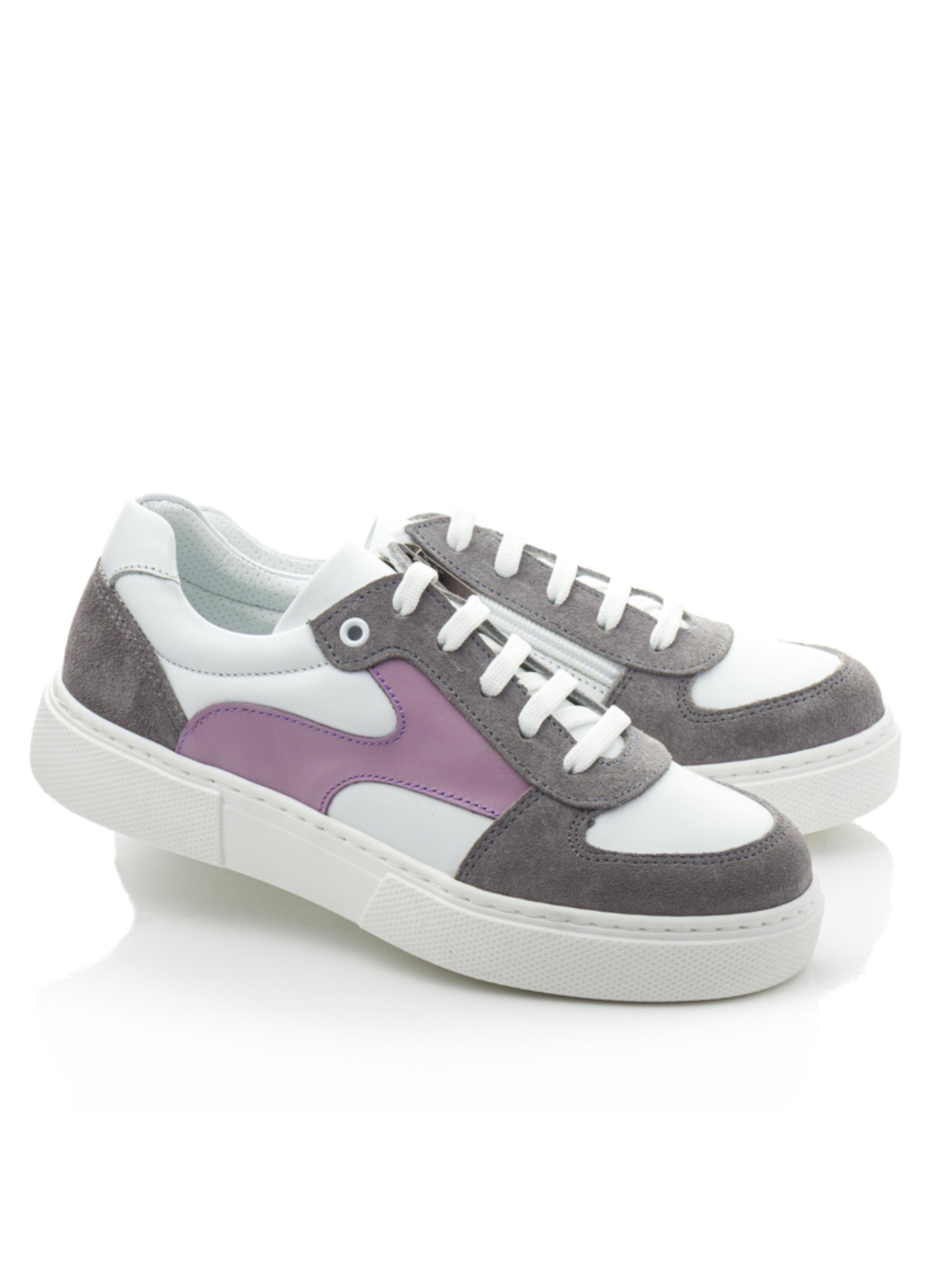 Эти стильные кеды станут универсальным выбором для девочек и мам, которые ценят комфорт и модный внешний вид. Верх изделия выполнен из натуральной белой кожи, что придаёт обуви изысканность и лёгкость. Серые замшевые вставки на носке и пятке добавляют элегантности, а нежные сиреневые акценты делают дизайн свежим и оригинальным. Внутри кед — подкладка из натуральной перфорированной кожи, которая обеспечивает превосходную вентиляцию, поддерживая комфорт в течение всего дня. Практичная шнуровка позволяет идеально регулировать посадку, а мягкая, но прочная подошва гарантирует устойчивость и амортизацию на каждом шагу. Эта модель идеально подойдёт для прогулок, активного отдыха или даже для повседневного ношения, дополняя стильный образ. Кеды сочетают в себе современный дизайн, функциональность и высокое качество материалов, что делает их незаменимым выбором для тех, кто ищет идеальную пару обуви.