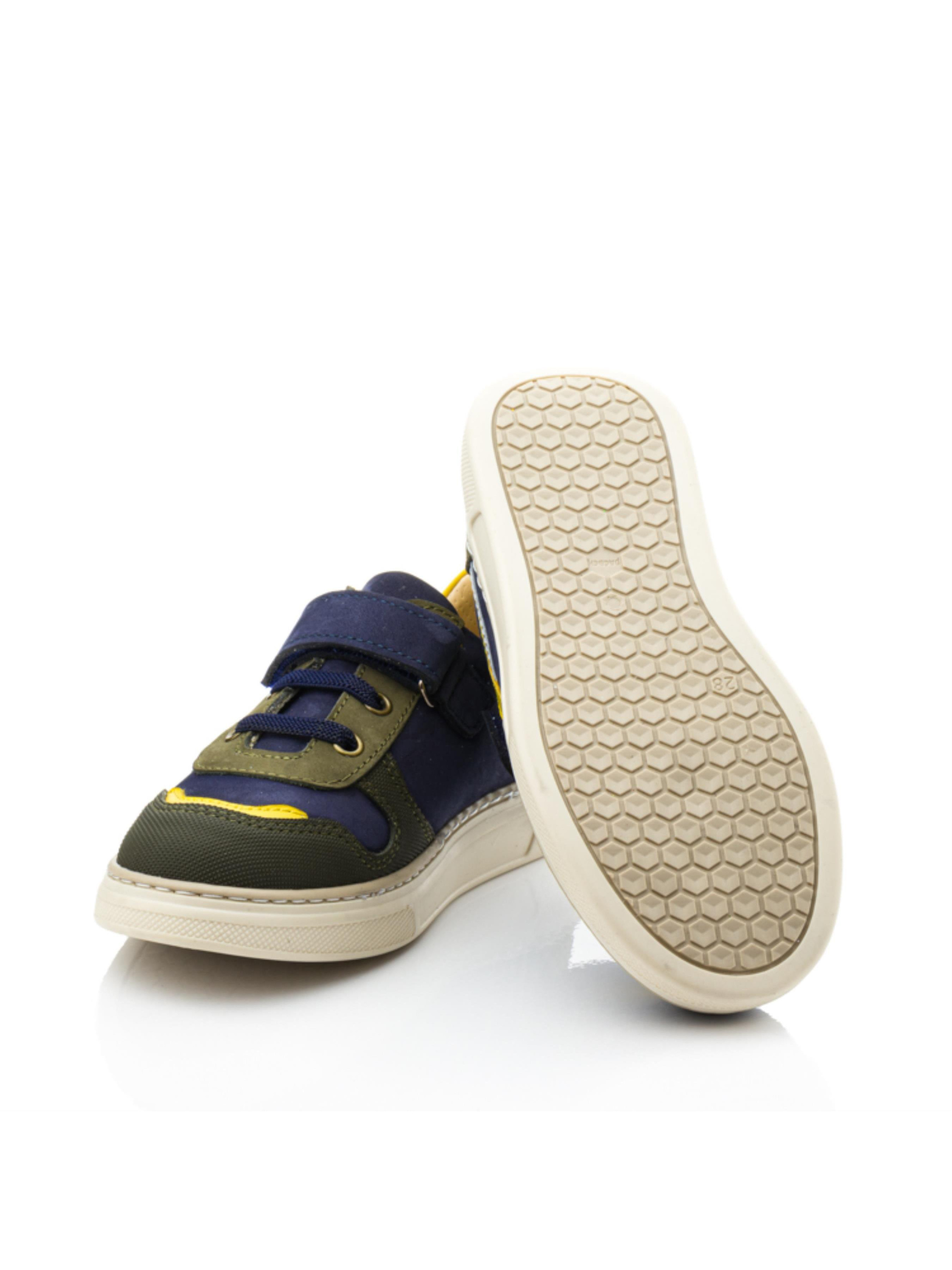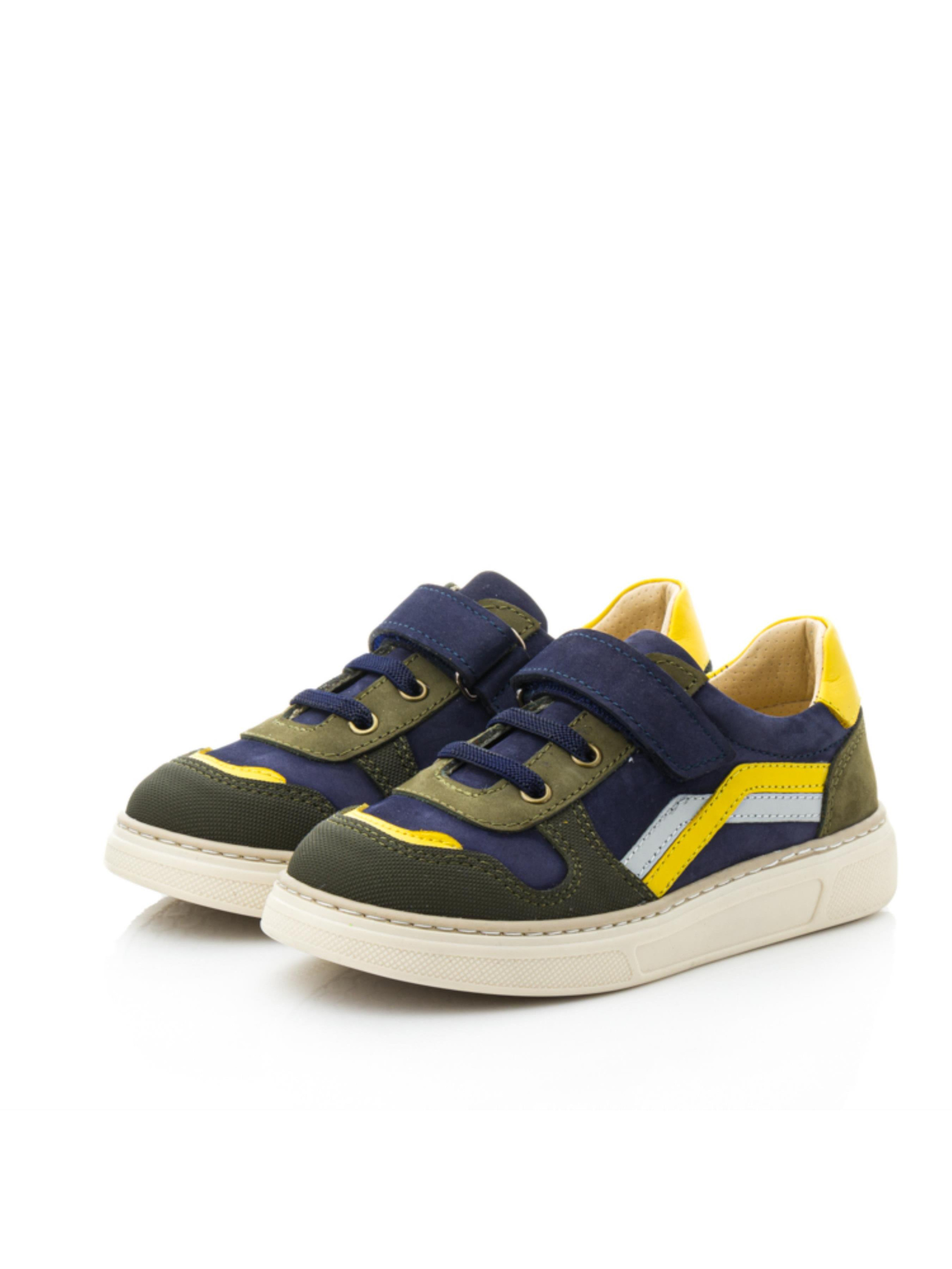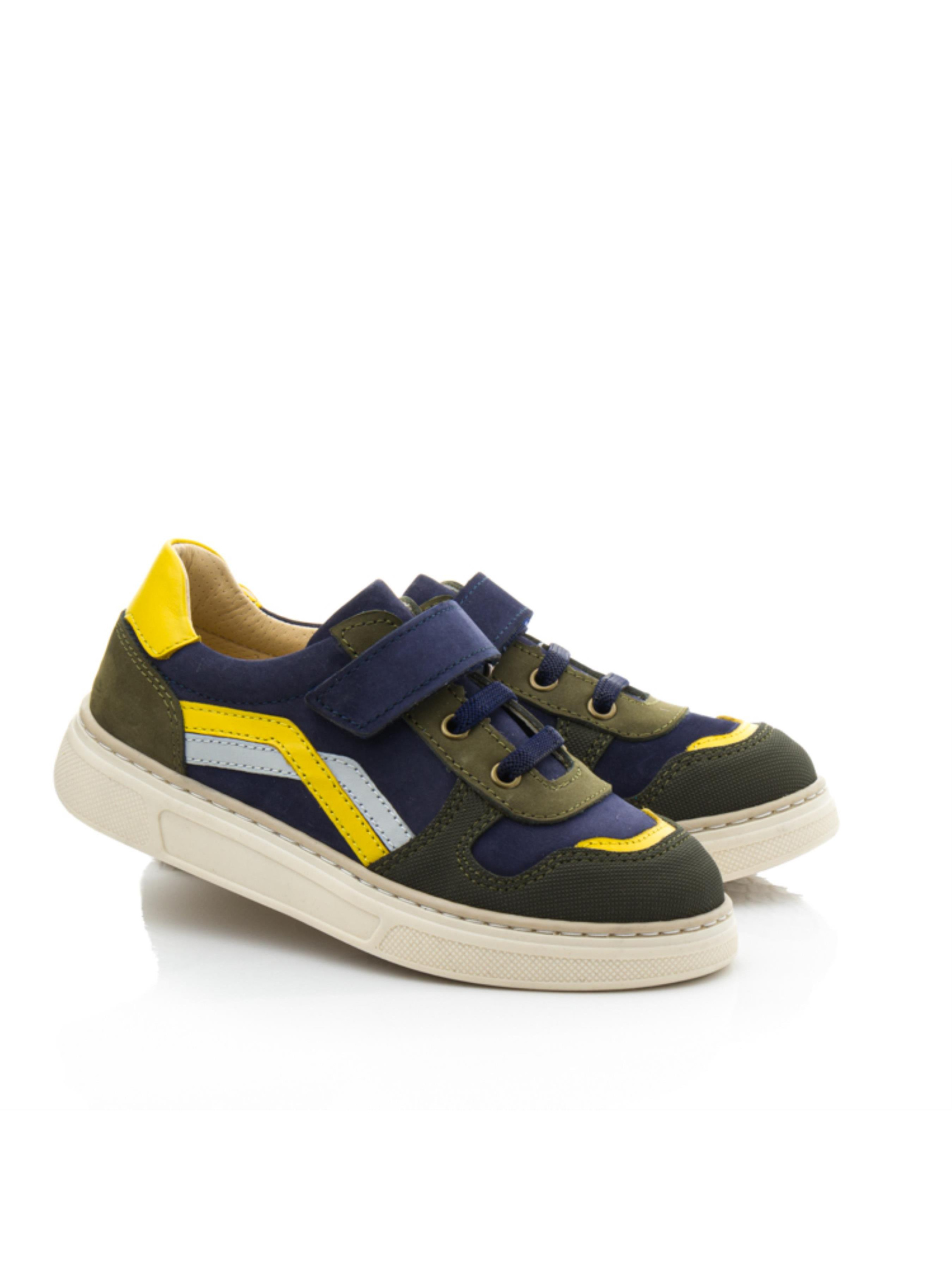 Яркие и оригинальные детские кеды для мальчиков, которые выделяются своим дизайном и высоким качеством. Верх выполнен из натурального нубука глубокого синего цвета с контрастными вставками зелёного, серого и жёлтого оттенков, создавая динамичный и современный образ. Подкладка из натуральной перфорированной кожи гарантирует комфорт и оптимальную вентиляцию для детских ножек. Носок защищён прочным материалом "неубивайка", что делает обувь надёжной даже при активных играх и прогулках. Комбинация шнуровки и липучки обеспечивает удобство и точную фиксацию на ноге ребёнка. Эти кеды идеально подходят для мальчиков, которые любят активный образ жизни и ценят стиль в каждой детали. Уникальная расцветка и практичный дизайн делают эту модель универсальной для любого гардероба.