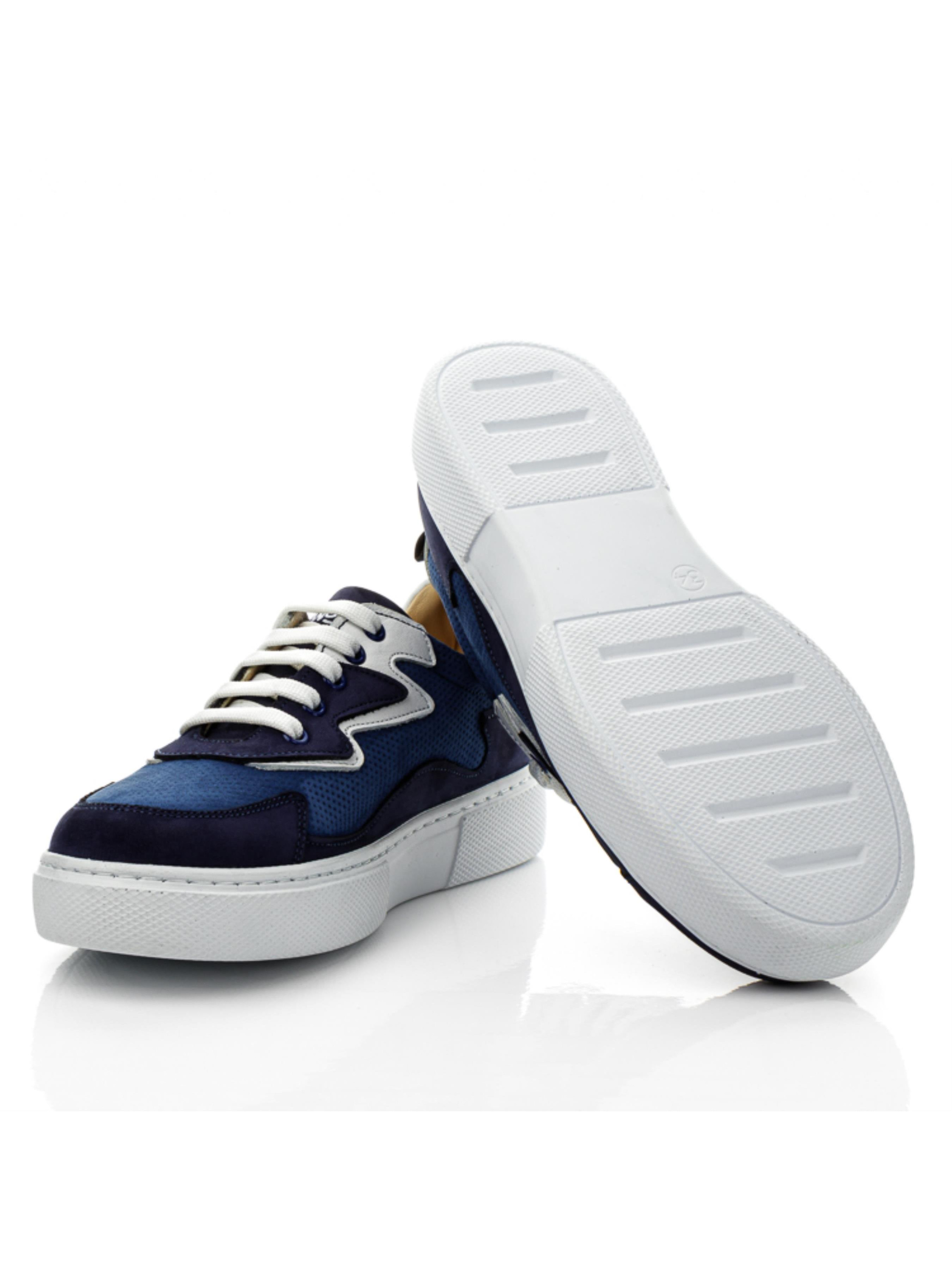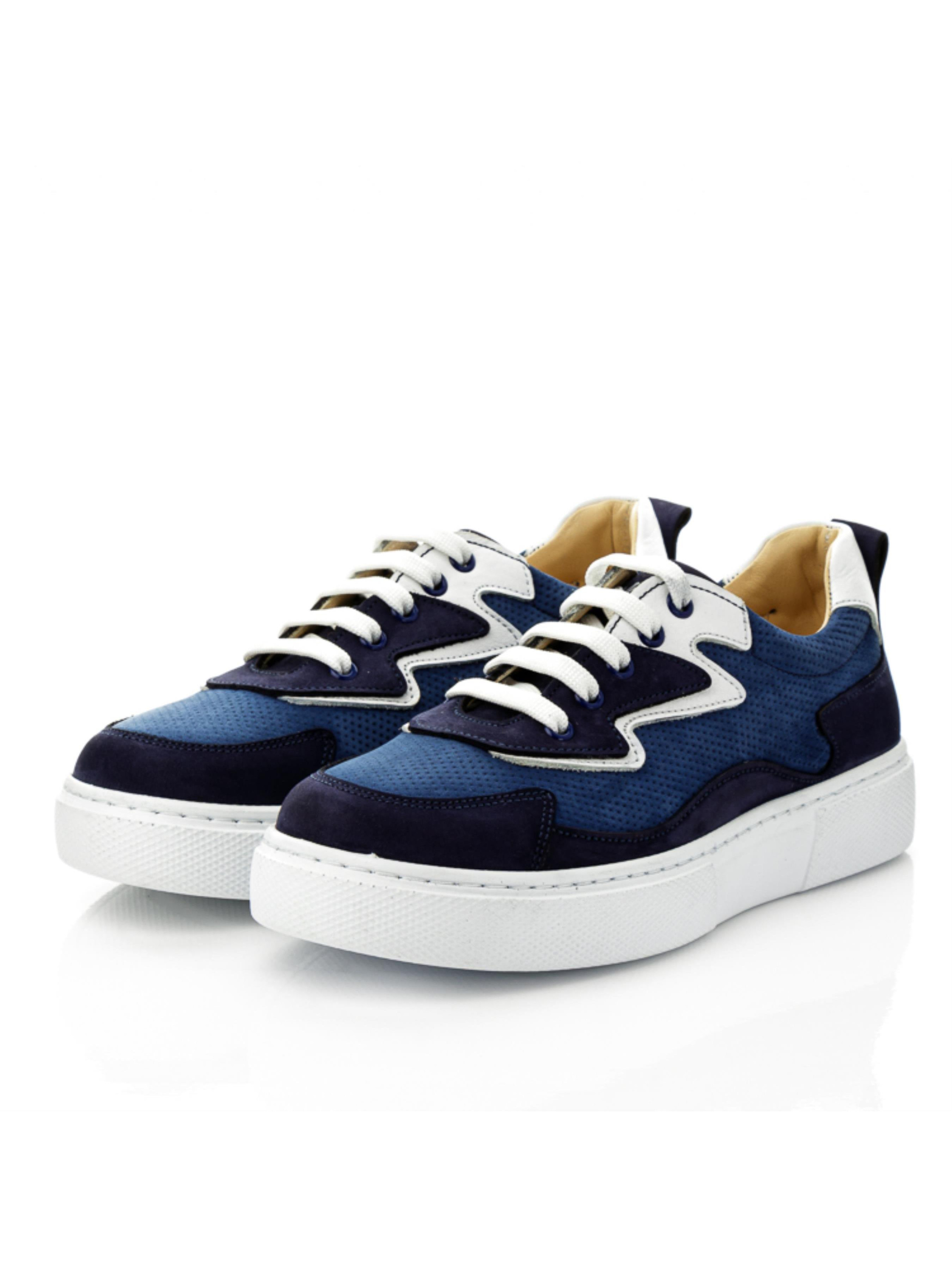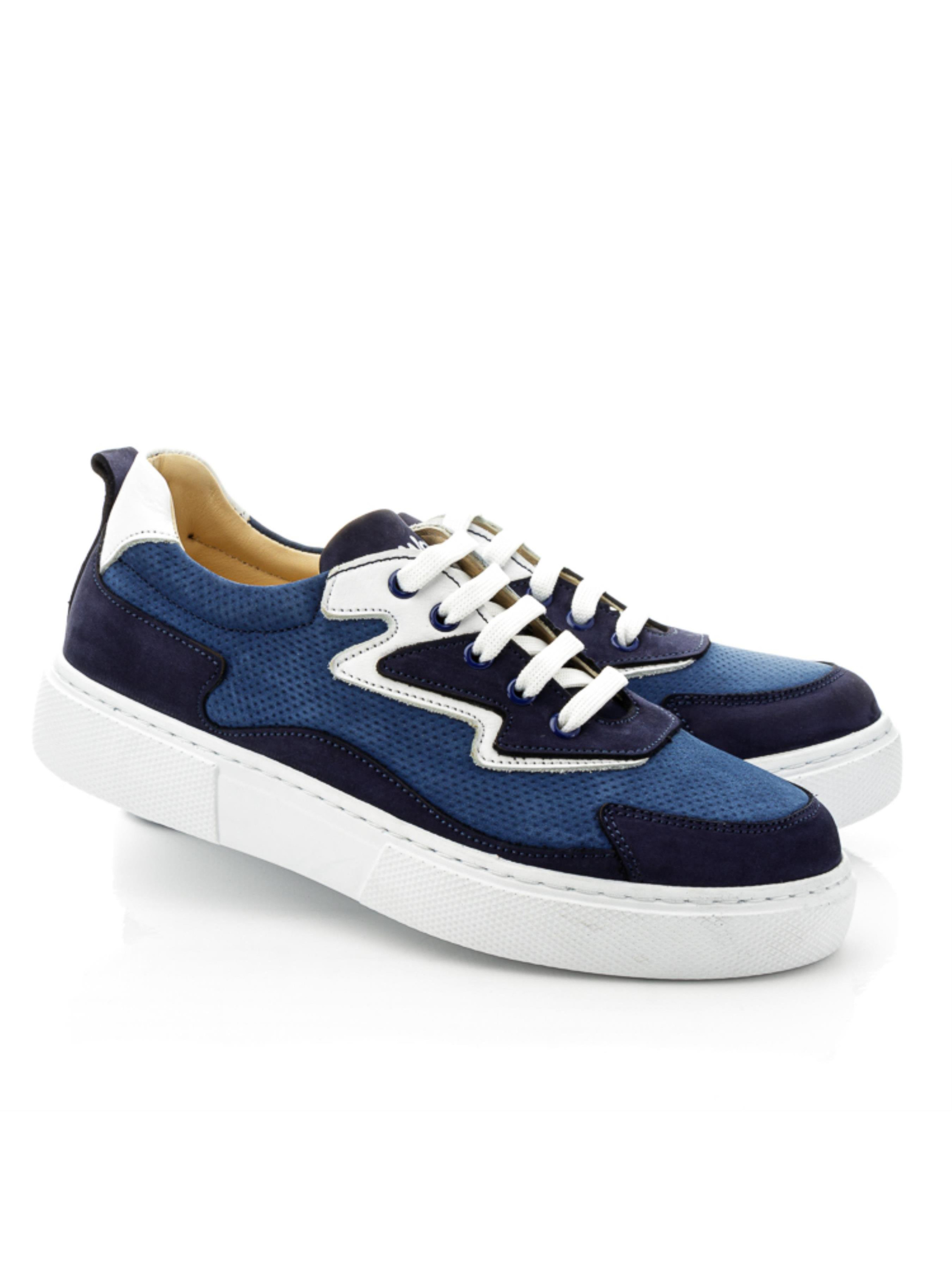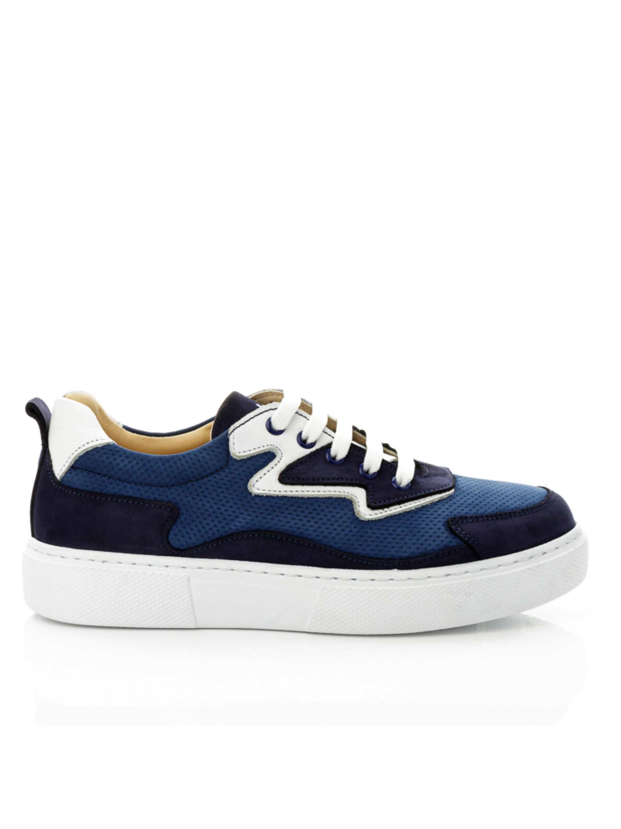 Мы умело сочетаем красоту и комфорт и такая пара кед доказательство нашего мастерства. Невероятные детские кеды для мальчика пошиты из натурального нубука синего цвета 2-х оттенков: насыщенного голубого и темно-синего. Оригинальность модели придает применение перфорации в верхних слоях материала для создания фактуры и узора. Стелька и подкладка в модели кожаные. Главными комфортными элементами пары являются анатомически правильная стелька с подушечкой под свод стопы, которая поглощает удары, жесткий задник и надежная фиксация ножки шнуровкой. Контраст модели придают вставки из натуральной кожи белого цвета и очень легкая подошва (по периметру прошита).