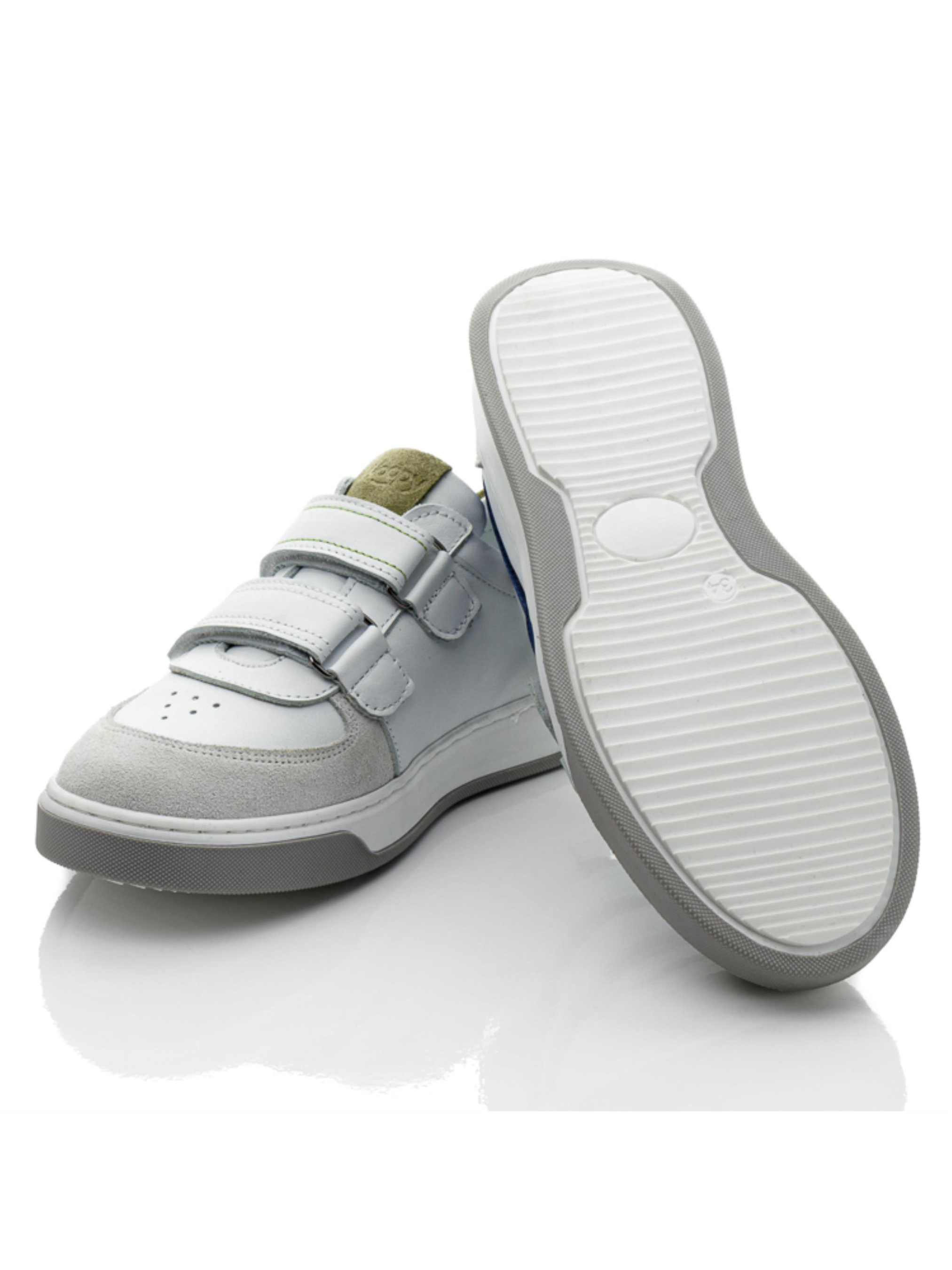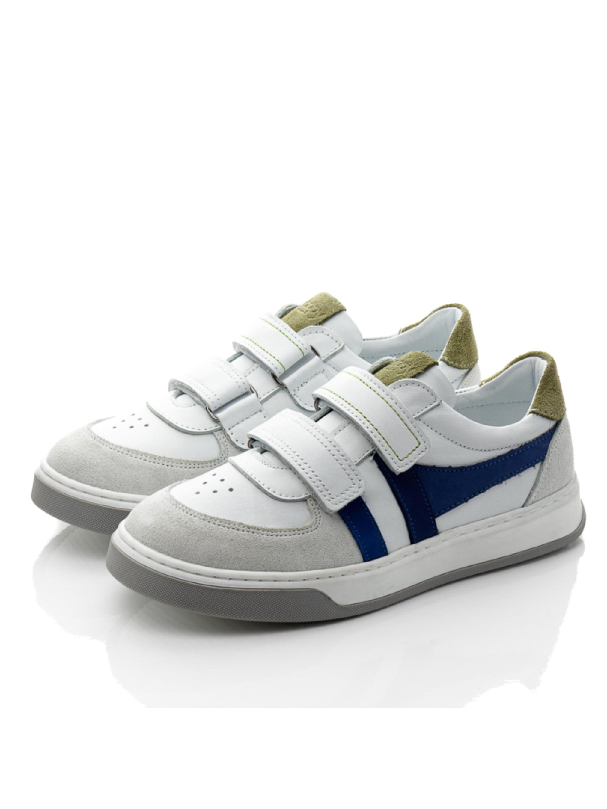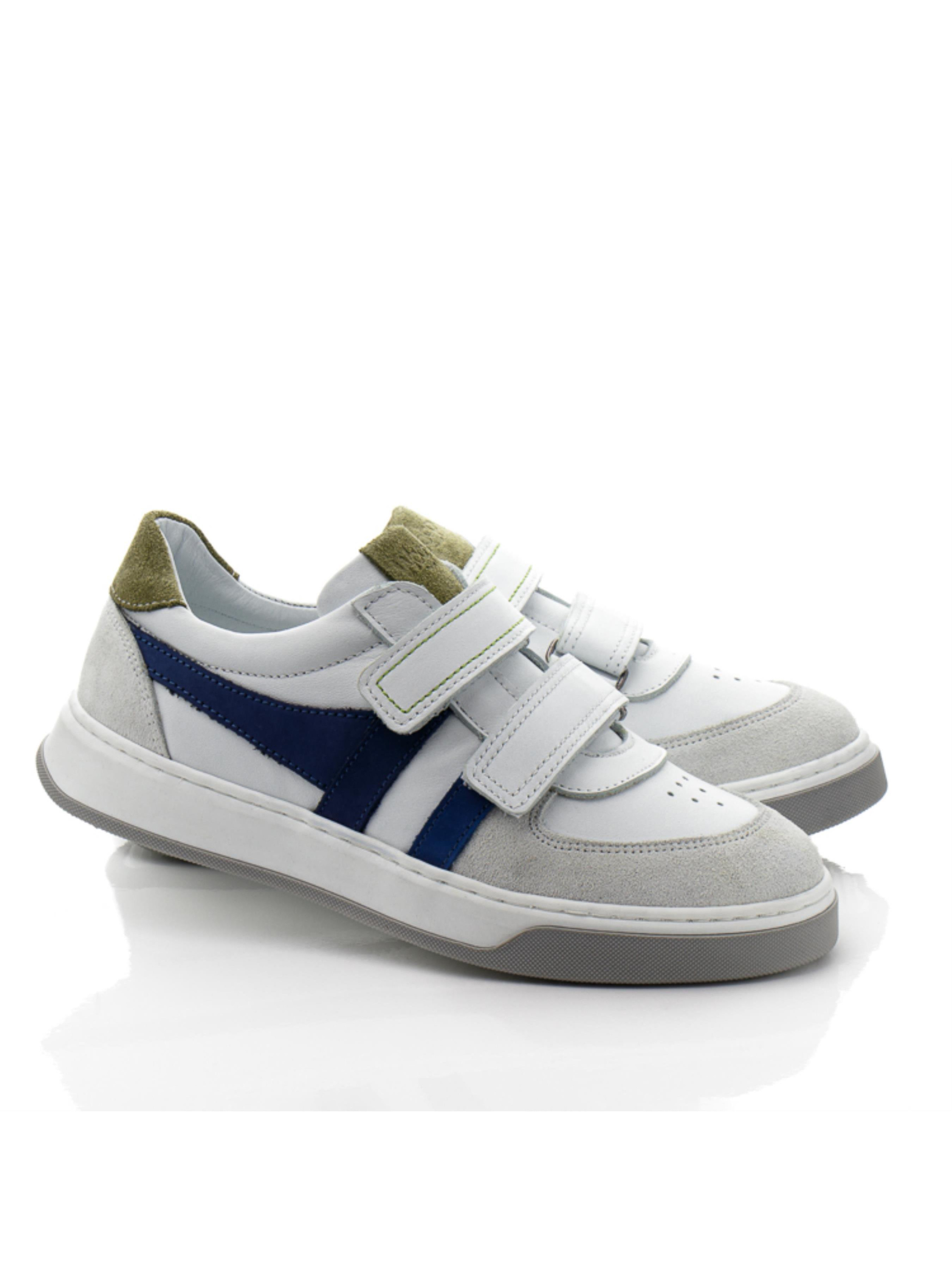Перед Вами не просто кеды, а необыкновенно стильная часть имиджа для мальчика. Детские кеды для мальчика пошиты в невероятной комбинации цветов и фактуры, а также удивят комфортом. Кеды пошиты на основе комбинации натуральной кожи белого цвета, дополнены вставкой из натуральной замши на носочке и пятке, боковая часть украшена вставкой из нубука синего цвета, а язычок украшен вставкой зеленого цвета. Материал подкладки и стельки – натуральная качественная кожа. Носочек в кедах украшен перфорированным узором в верхних слоях кожи. Подошва в кедах отлита из термопластичной резины, она не скользкая, по периметру прошита. Комфорт ножкам обеспечит поглощающая удары стелька, супинатор и жесткий задник. А удобство обувания обеспечат надежные липучки.