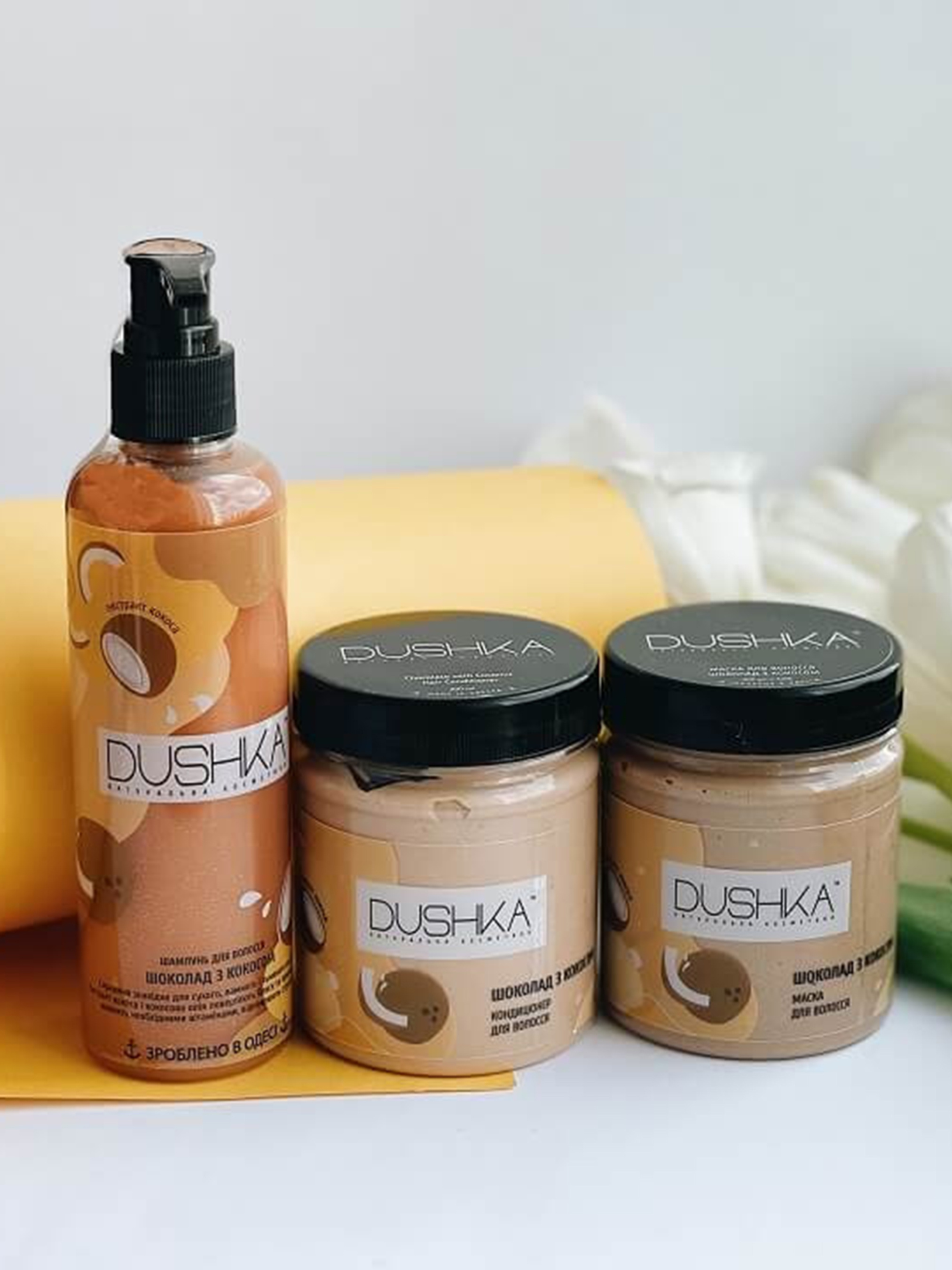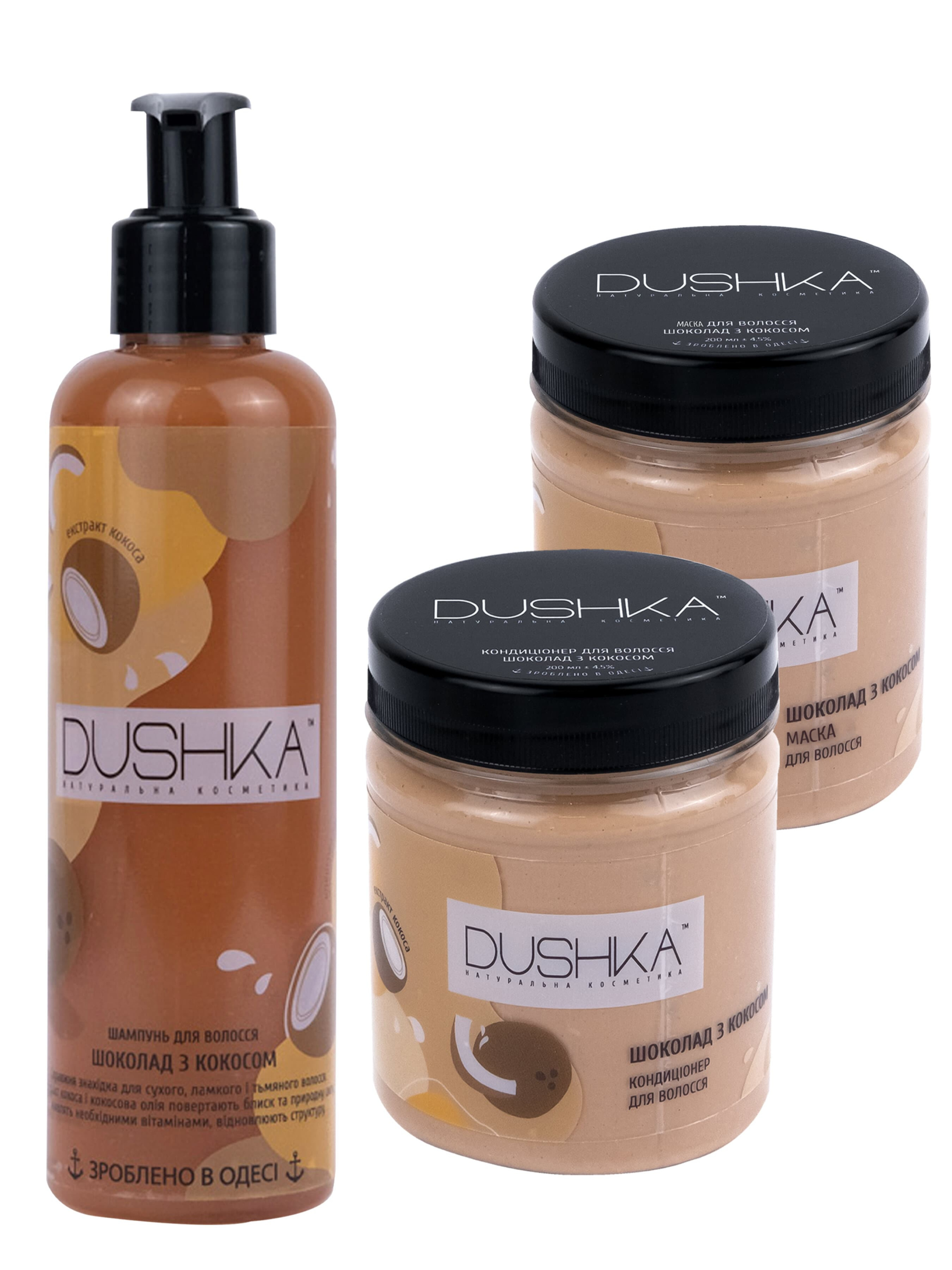 Dushka – это украинская компания, которая производит натуральные средства по уходу за телом уже более 9 лет. И все эти годы наши средства производятся вручную. Поэтому каждый гель, каждый крем, скраб, шампунь, мыло и бальзам наполнены нашей заботой. Главная цель компании – это делать людей более счастливыми. Поэтому мы выбираем интересные формы и цвета для наших продуктов. Уголок Dushka в комнате всегда вызывает только приятные эмоции. И конечно же, все продукты производятся из натурального сырья. Почему "конечно же"? Потому что для нас иначе просто невозможно. Мы усердно работаем над рецептурой, чтобы сделать продукты уникальными.
