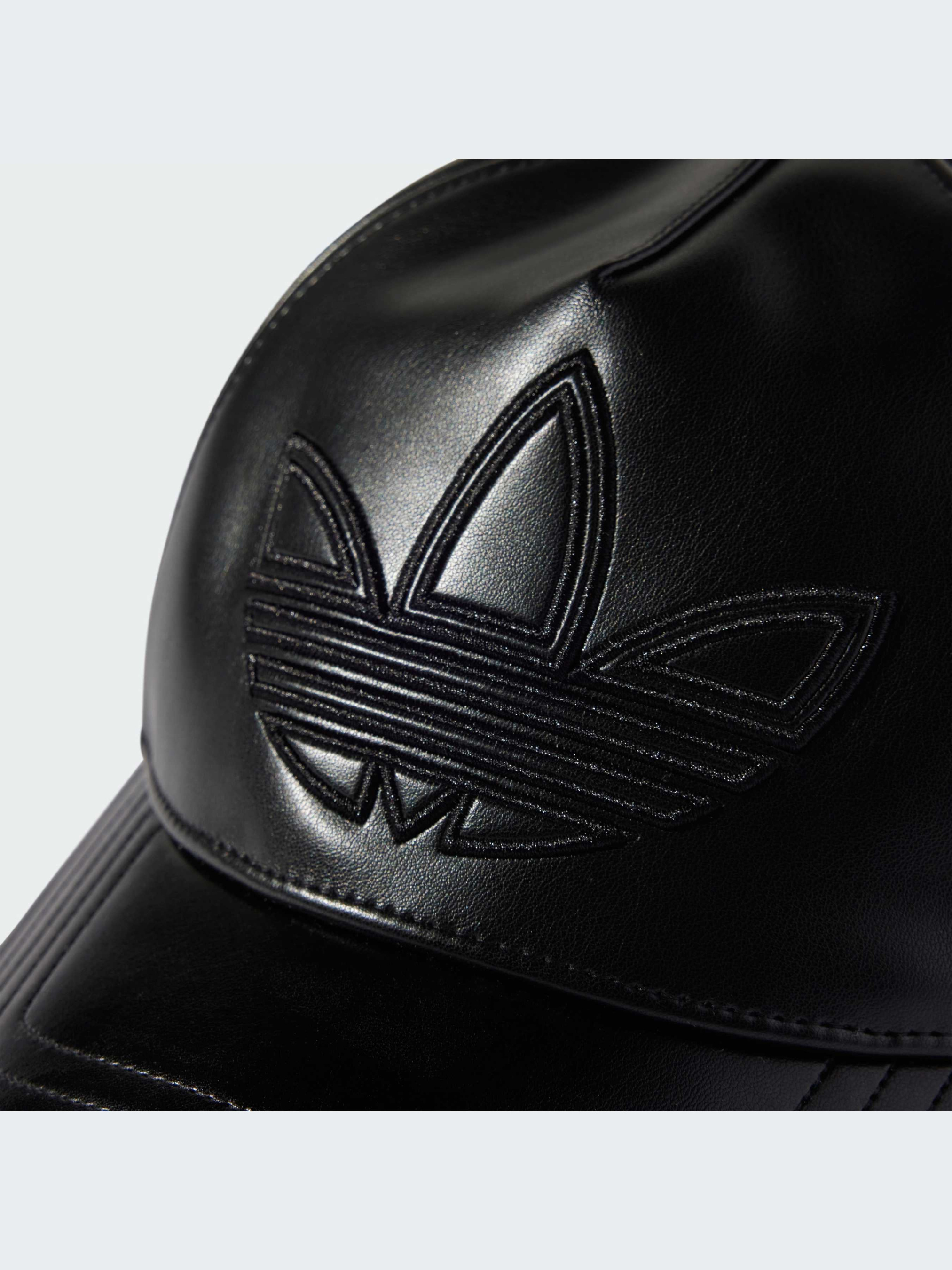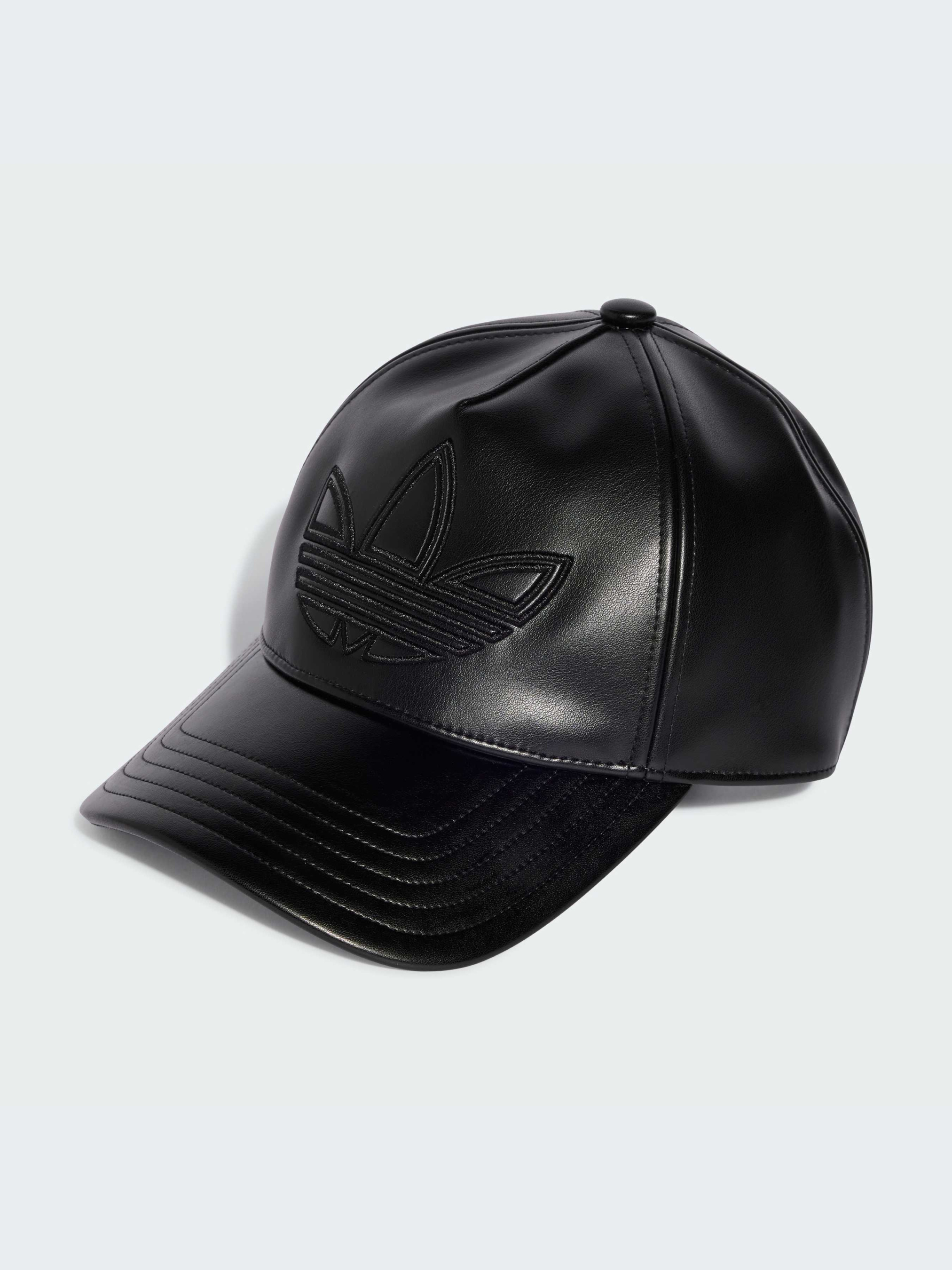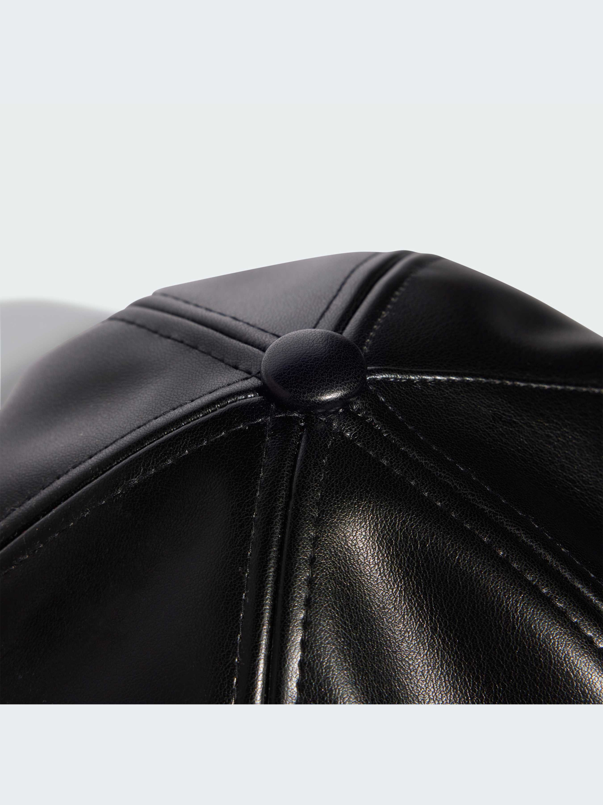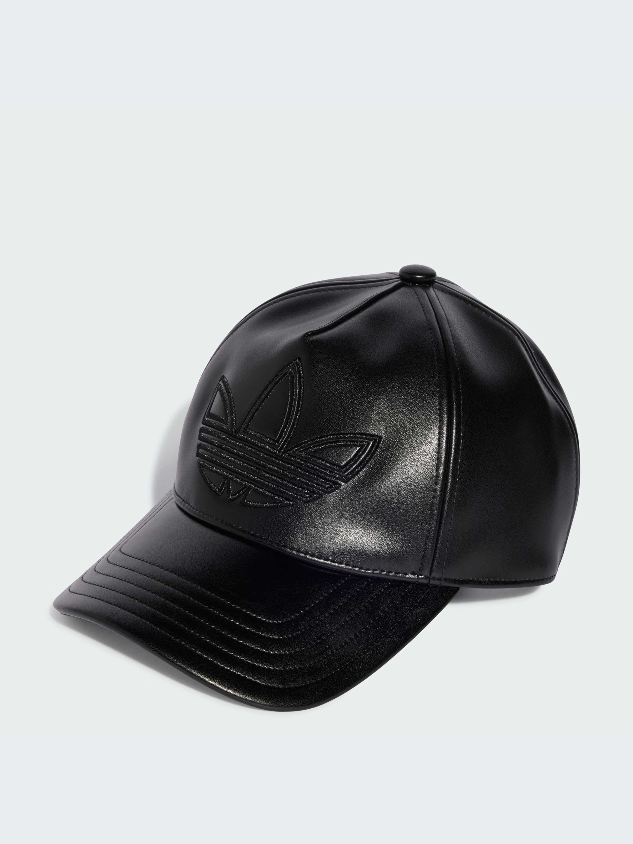 Спортивная элегантность. Эта элегантная кепка adidas выглядит модно благодаря полностью черному цвету и гладкой искусственной коже. Регулируемая застежка позволяет подобрать идеальную посадку, а тисненый Трилистник добавляет спортивный стиль.