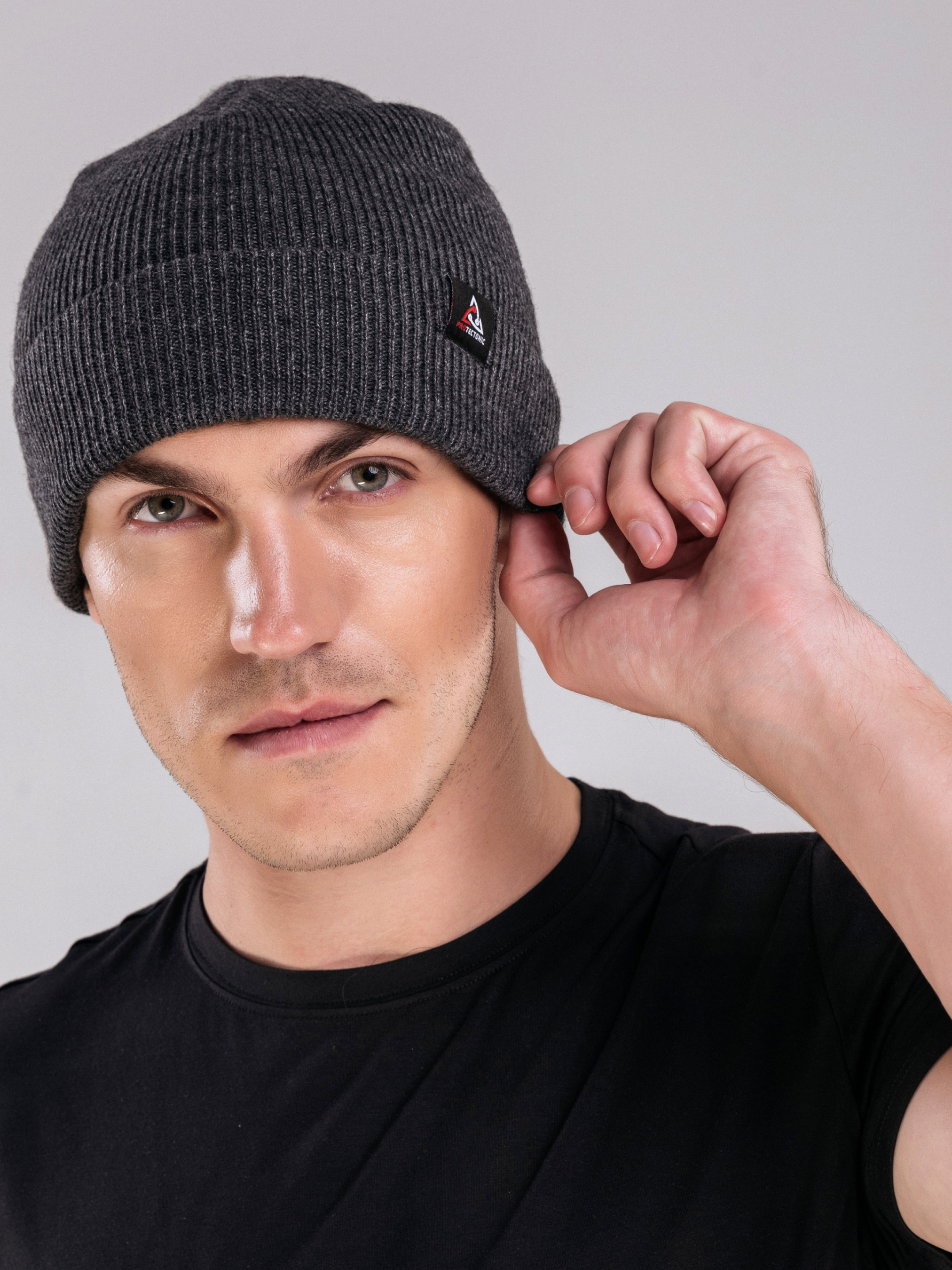 Шапка универсальная, темно-серого цвета - Ребристая ткань очень мягкая, обеспечивает тепло и комфорт в течение всего дня - Шапка из натуральной ткани с добавлением нейлона - Материал быстро сохнет - Слева декорирован эмблемой «PROTECTONIC» - Подходит для повседневной носки и занятий спортом Материал: 80% шерсть, 20% нейлон