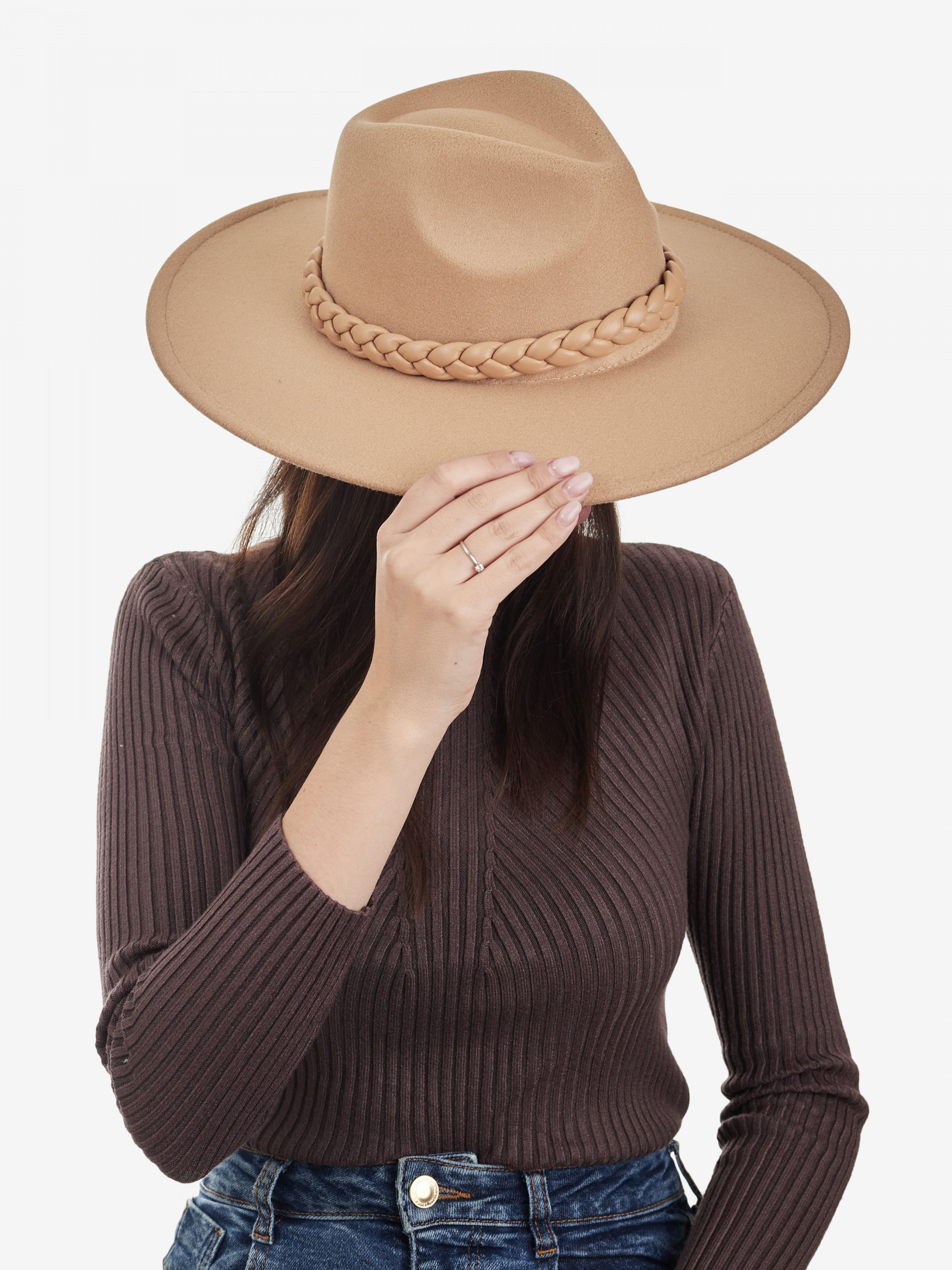 Фетровая шляпа является классикой и фаворитом многих модниц, ведь её форма и глубина тулии имеет очень удобную посадку, а дизайн подходит как для стильных образов, так и для повседневного ношения в городе. По стилю фетровая шляпа Федора будет отлично сочетаться с шортами, джинсами, с платьями из легких тканей. Эта шляпа имеет плотные поля, которые хорошо держат форму.Особенность наших шляп в том, что они идут с регулировкой размера.Внутри есть специальная тесьма, с помощью которой можно скорректировать размер, затянуть и, тем самым, уменьшить объем. Детали: - Материал: Полиэстер - Модель шляпы: Федора - Форма полей: Прямые - Поля: 10 см - Высота: 10 см - Размер: универсальный, с регулировкой - Декорирована косичкой из эко-кожи