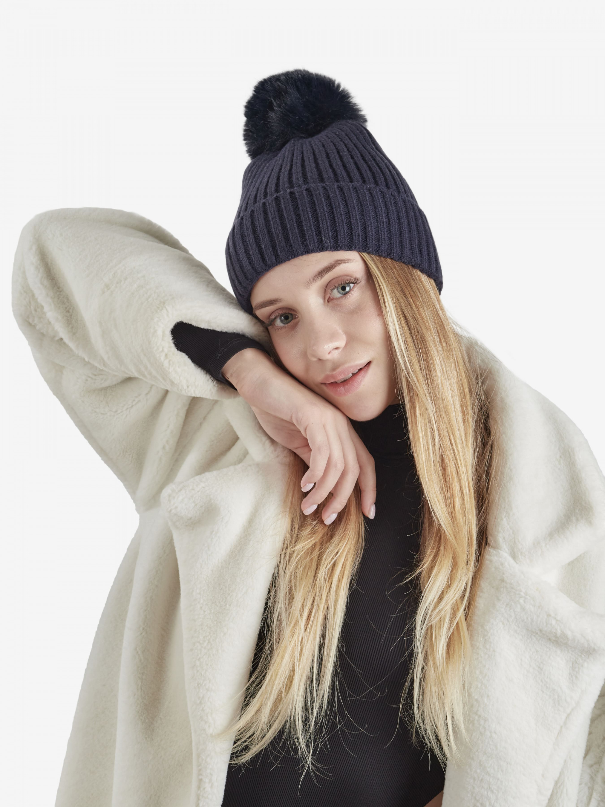 "Стильная женская теплая шапка бини отлично впишется в ваш обыденный образ. Вы будете чувствовать себя комфортно в любую погоду. Шапка дополнена плотно прилегающим отворотом, эластичная, хорошо тянущаяся и приятная на ощупь. Изделие украшено помпоном, который легко отстегивается. Такой головной убор отлично защитит голову от ветра и холода, обеспечит комфорт во время ношения. Детали: - Состав: 50% акрил, 30% котон, 20% полиэстер - Размер универсальный, хорошо тянется - Высота шапки: 21 см - Полуоборот шапки: 20 см - Сезон: Осень-Зима - Тип вязки: средняя - Декорирована помпоном"