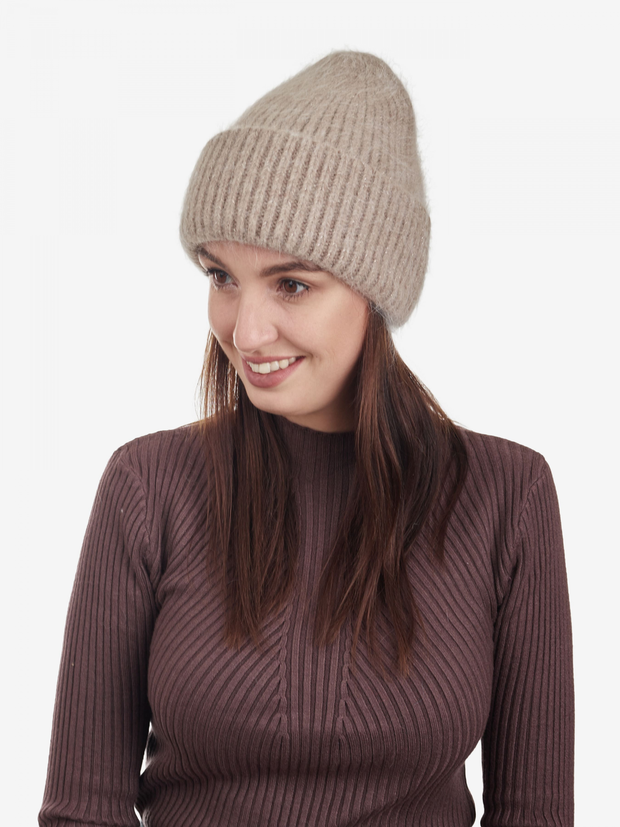 "Стильная женская теплая шапка бини отлично впишется в ваш обыденный образ. Вы будете чувствовать себя комфортно в любую погоду. Шапка дополнена плотно прилегающим отворотом, эластичная, хорошо тянущаяся и приятная на ощупь. Изделие украшено люрексовой нитью. Такой головной убор отлично защитит голову от ветра и холода, обеспечит комфорт во время ношения. Детали: - Состав: 50% вискоза, 40% ангора, 5% кашемир, 5% еластан - Размер универсальный, хорошо тянется - Высота шапки: 22 см - Полуоборот шапки: 22 см - Сезон: Осень-Зима - Тип вязки: средняя - Декорирована люрексовой нитью"