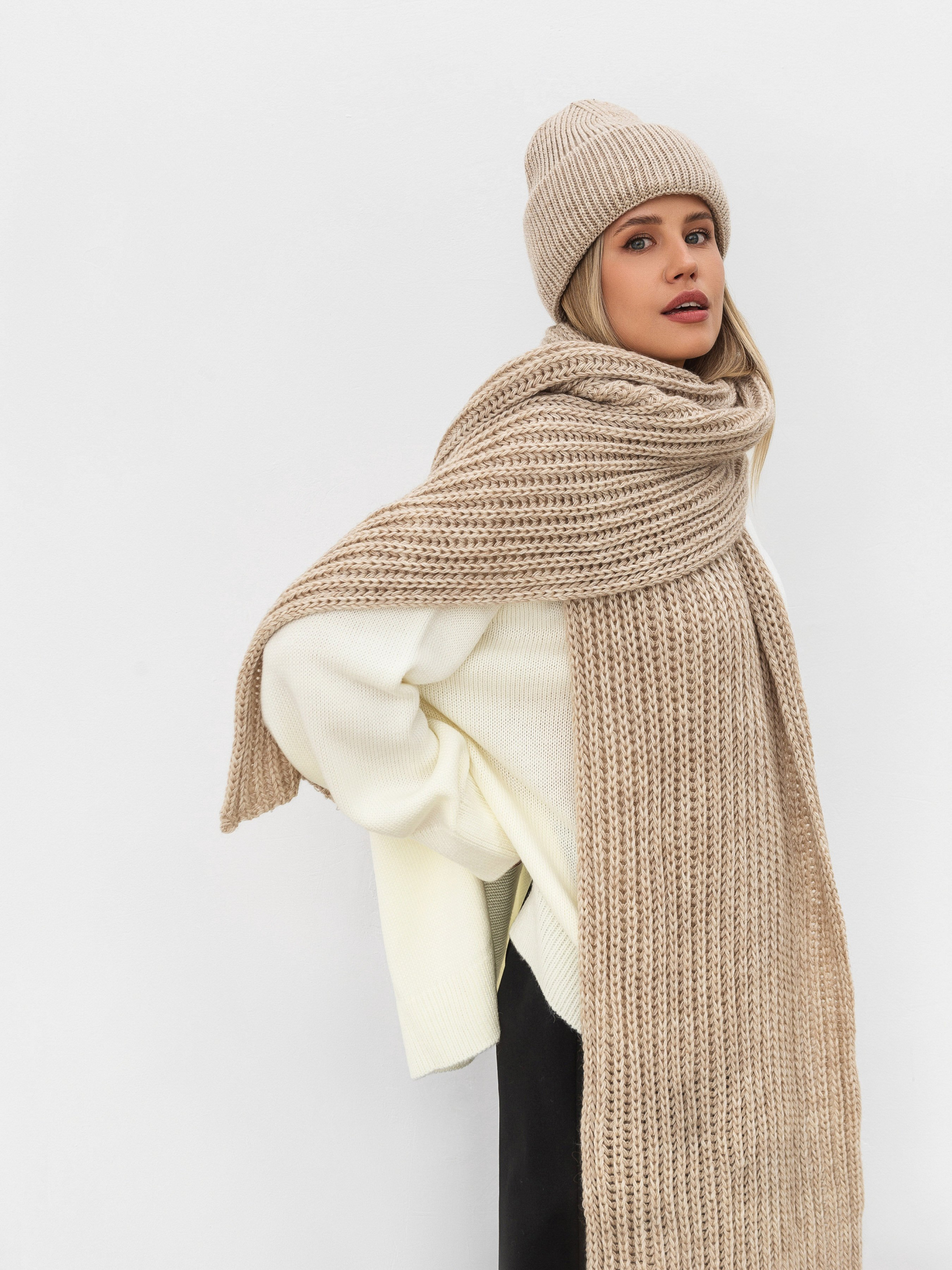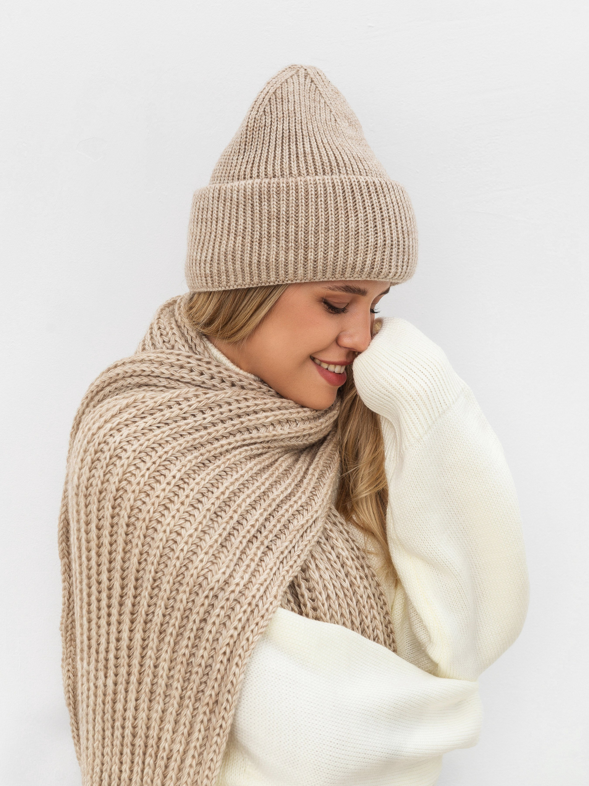 Однотонная женская шапка Бини Нанси от бренда Romashka. Вязаная шапка с отворотом или бини наиболее популярная модель шапки последних лет. Именно её вы постоянно видите в соцсетях, на фото в образах звезд стритстайла. Одна из самых удачных моделей головного убора, которая подходит абсолютно любому типу внешности, независимо от формы лица и длины волос, и считается вещью в стиле унисекс. Бини легко отличить по широкому отвороту и вытянутой форме. Шапка Нанси станет универсальным дополнением к любому луку в холодное время года. Благодаря простому и лаконичному дизайну она отлично сочетается с бомбером, косухой, пальто или пуховиком, курткой-рубашкой, эко-шубой, оверсайз худи с капюшоном. Одинаково подходит к брюкам палаццо или джинсам скинни, к кедам, кроссовкам или массивным ботинкам. Нет такого образа, в который нельзя интегрировать бини. Нанси выполнена из шерсти и акрила в равной пропорции, благодаря чему она не кашлатится, отлично сохраняет форму, хорошо тянется, не передавливает лоб и не колется, и, конечно, отлично согревает. Средней вязки, не добавляет лишнего объема. Мы обязательно добавили бы её к образу с ботинками челси Келли, леггинсами Берген, курткой-жилетом Буффало и свитером Виргиния от бренда Romashka. Эта модель также доступна в голубом, пудровом, песочном, сером и черном цветах. Не забудь дополнить комплект длинным и уютным шарфом Ниор в тон. Уход Ручная или машинная стирка с жидким моющим средством. На малых оборотах, в деликатном режиме, температура воды не выше 30 градусов; Сушить в горизонтальном положении, подальше от прямых солнечных лучей и обогревателей. Длина аксессуара: 24 см, ширина снизу аксессуара: 22 см