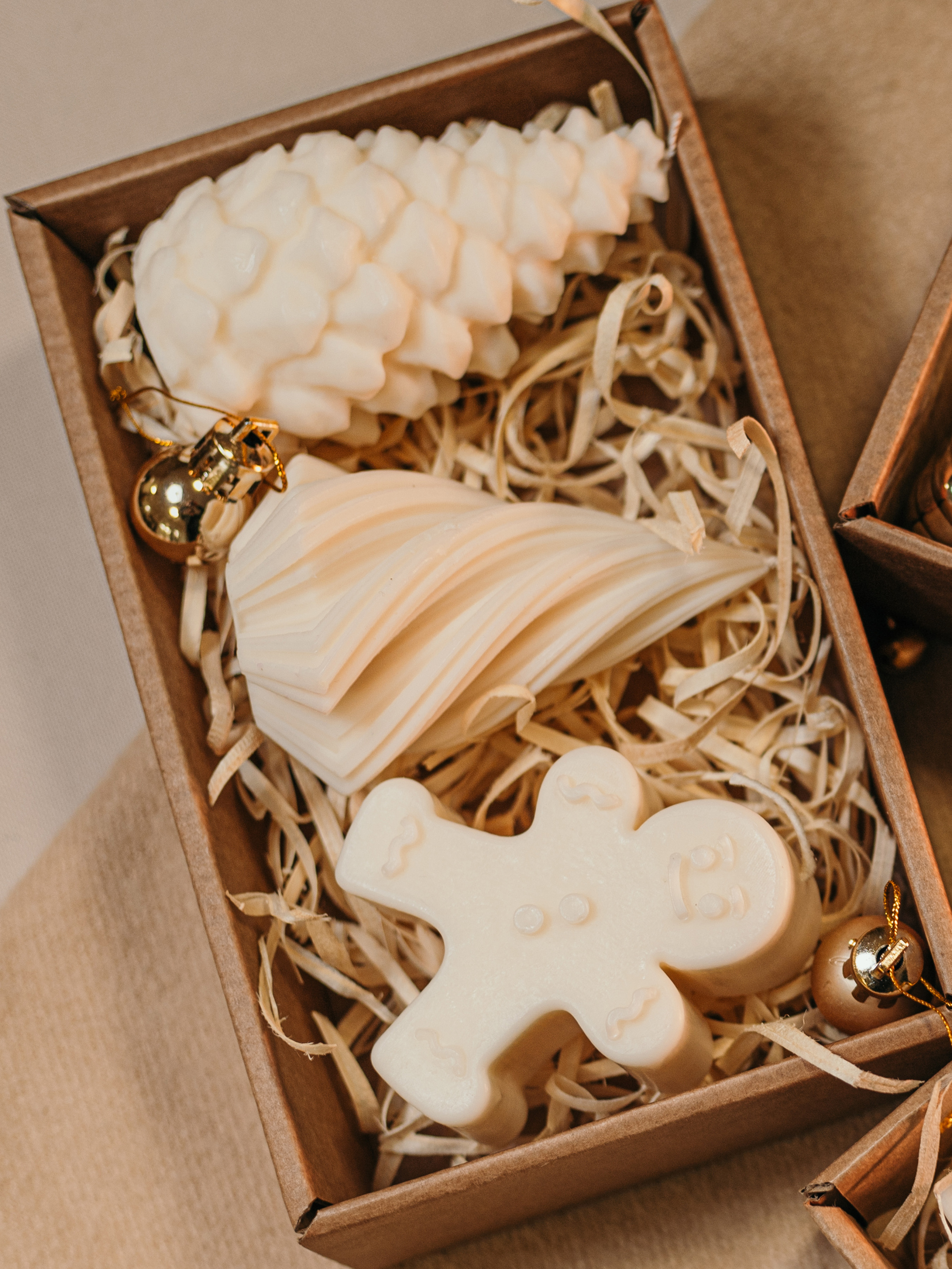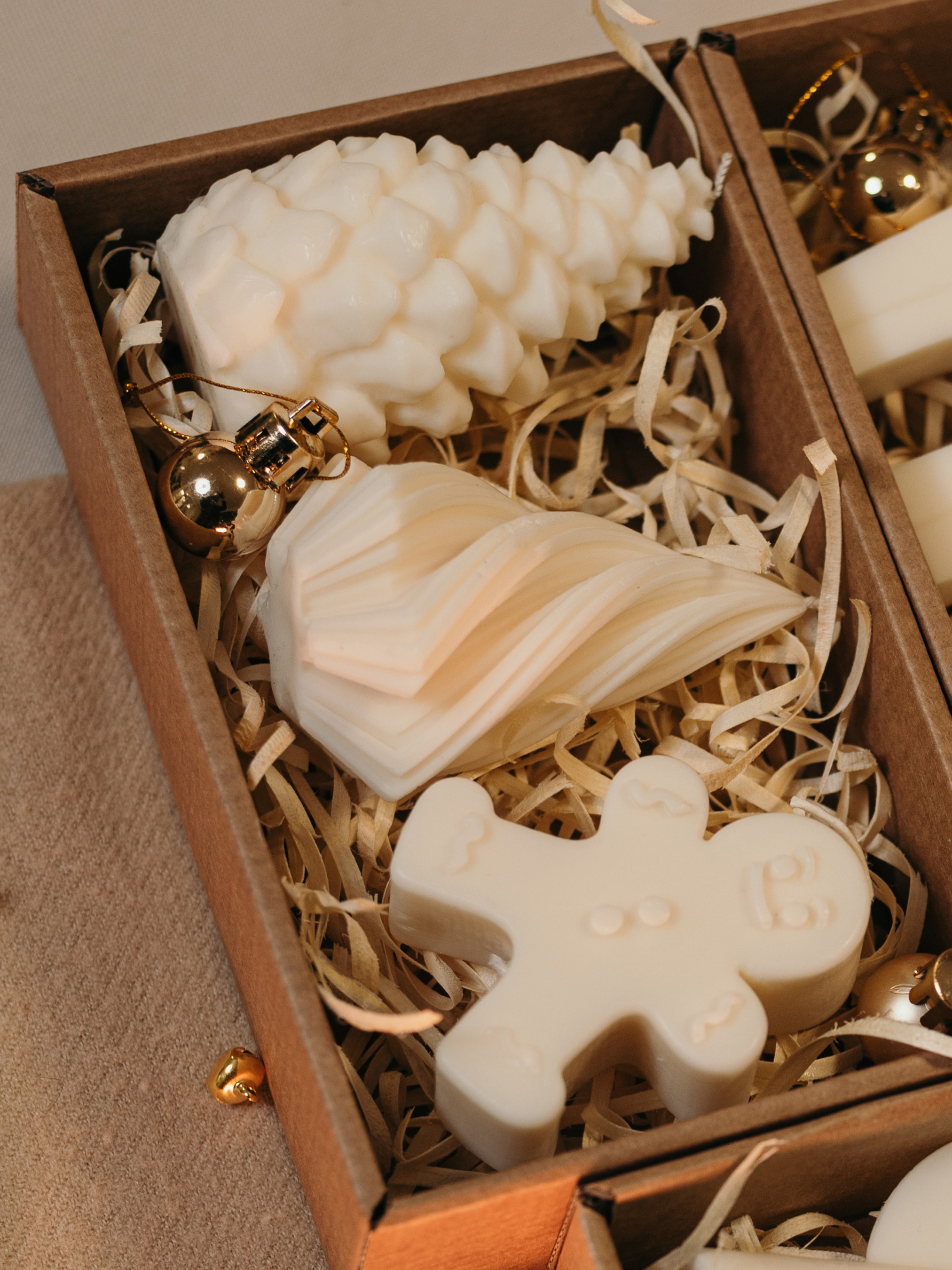 Рождественский набор свечей "Рождественская сказка" от Candle Design Этот набор создан, чтобы наполнить ваш дом волшебной атмосферой зимних праздников. Идеальное сочетание ароматов перенесет вас в заснеженный лес или на уютный вечер с теплыми имбирными пряниками. Набор состоит из трех эксклюзивных свечей, создающих праздничное настроение и уют. Парфюмированная свеча "Шишка Карпатская" Аромат: Redwoods and Moss (Секвойя и мох) Верхние ноты: гвоздика, земля Средние ноты: сосна, уголь Базовые ноты: кедр, мох Размеры: высота – 90 мм, диаметр – 50 мм Вес: 80 г Парфюмированная свеча "Елочка" Аромат: Dry Gin and Cypress (Сухой джин и кипарис) Верхние ноты: можжевельник Ноты сердца: джин, красная смородина Базовые ноты: дуб, кедр, кипарис, бальзам Размеры: высота – 80 мм, диаметр – 55 мм Вес: 40 г Ароматическая свеча "Gingerbread Man" (пряничный человечек) Аромат: Iced Gingersnap (имбирное печенье) Верхние ноты: имбирь, коричневый сахар Средние ноты: сливочное масло, патока, ваниль Базовые ноты: корица, гвоздика, молоко Размеры: высота – 70 мм, длина – 55 мм, ширина – 30 мм Вес: 60 г Преимущества набора "Рождественская сказка": Натуральные материалы: Свечи изготовлены из экологически чистого оливкового воска и имеют хлопковые фитили, что делает их безопасными для использования в доме. Волшебные ароматы: Ароматы свечей идеально подходят для создания уютной зимней атмосферы, наполняя ваш дом праздничным духом. Идеальный подарок: Свечи представлены в элегантной подарочной упаковке, что делает их прекрасным выбором для близких и друзей на зимние праздники. Наслаждайтесь зимней магией вместе с Candle Design! Наши советы по использованию: Перед использованием подрежьте фитиль на 0,5 см. Зажгите свечу и дайте ей прогореть до краев, чтобы предотвратить образование воронки. Подрезайте сгоревший фитиль перед каждым зажиганием свечи. Не задувайте свечу для тушения, достаточно накрыть специальной крышкой, затем выпустить дым. Рекомендуем зажигать свечу не более чем на 3 часа. Не оставляйте свечу без присмотра и зажигайте только в безопасных местах. Обязательно ставьте свечу на подставку. "Candle Design" — совершенная гармония природы, стиля и аромата.