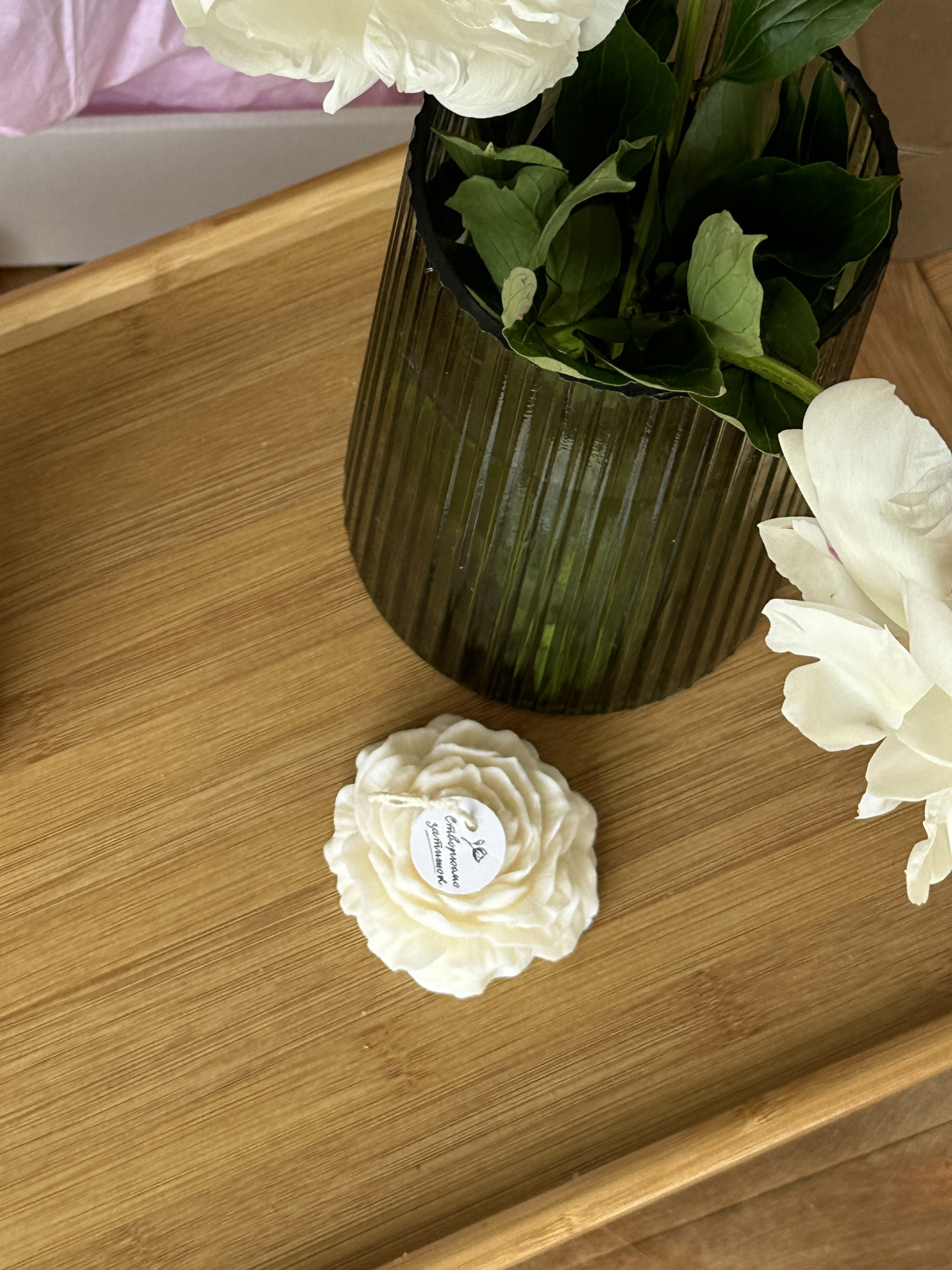 Candle DesignСвеча фигурная ароматическая "Пион", аромат – пион & магнолия, из натурального оливкового воска