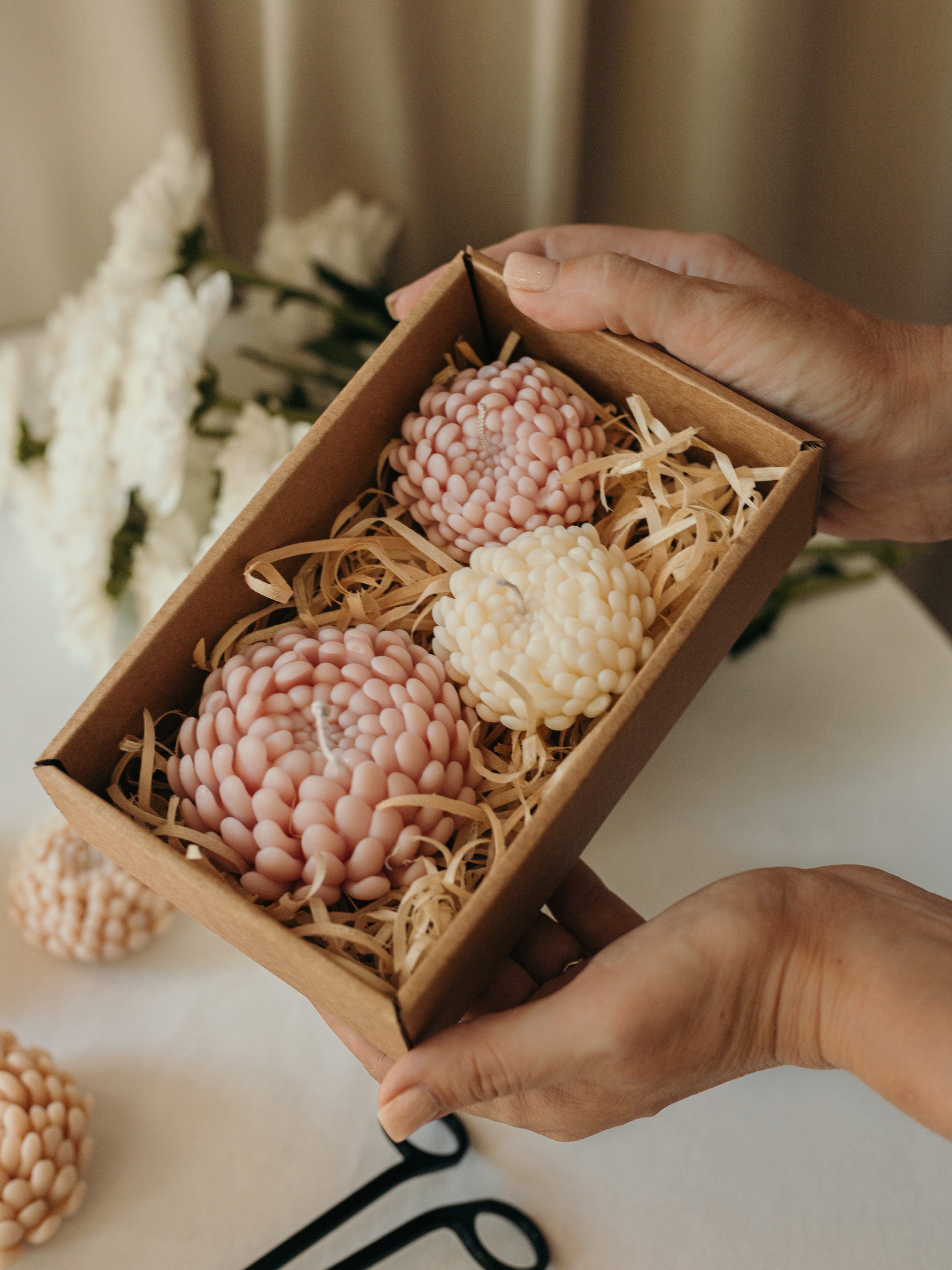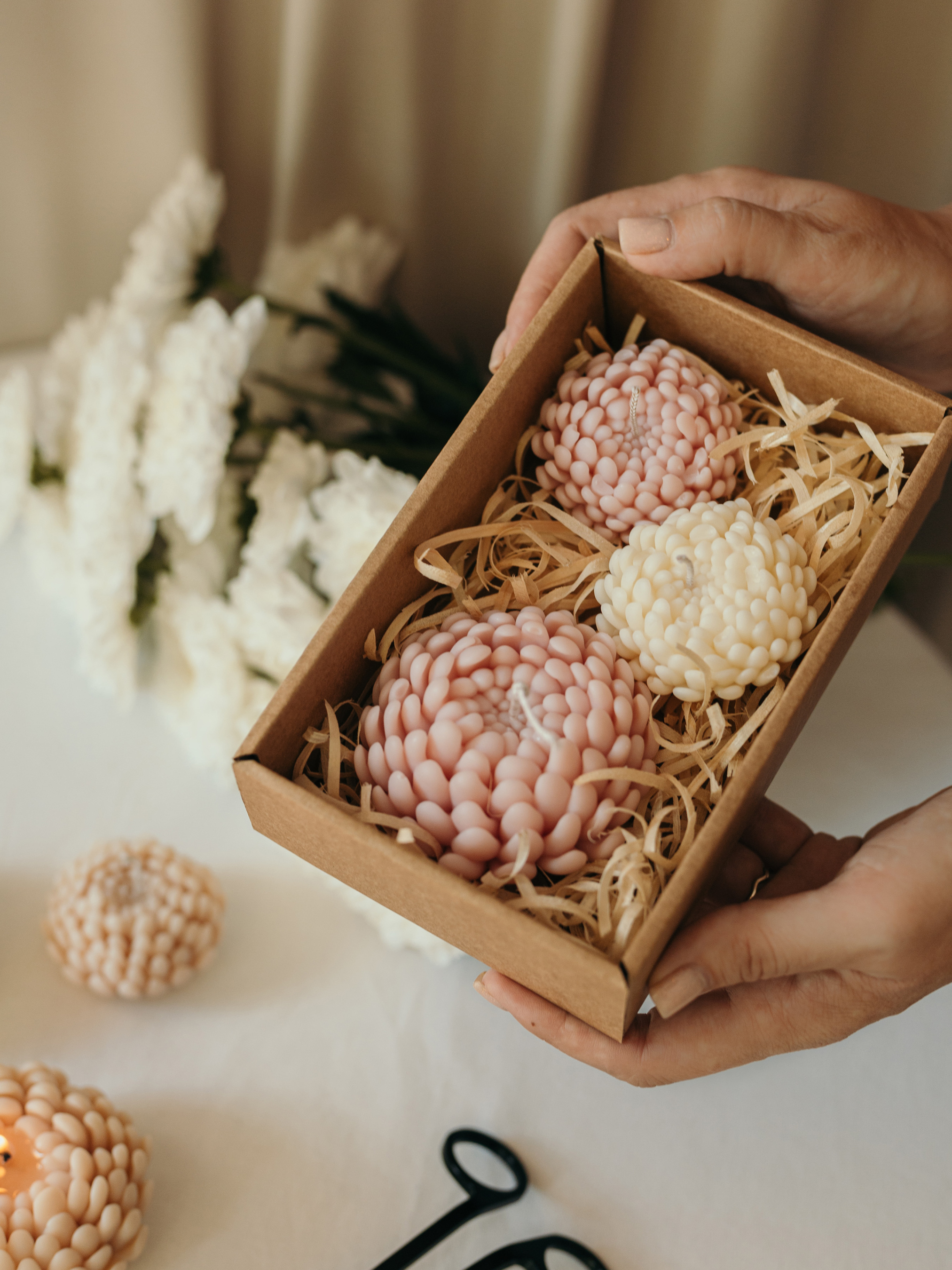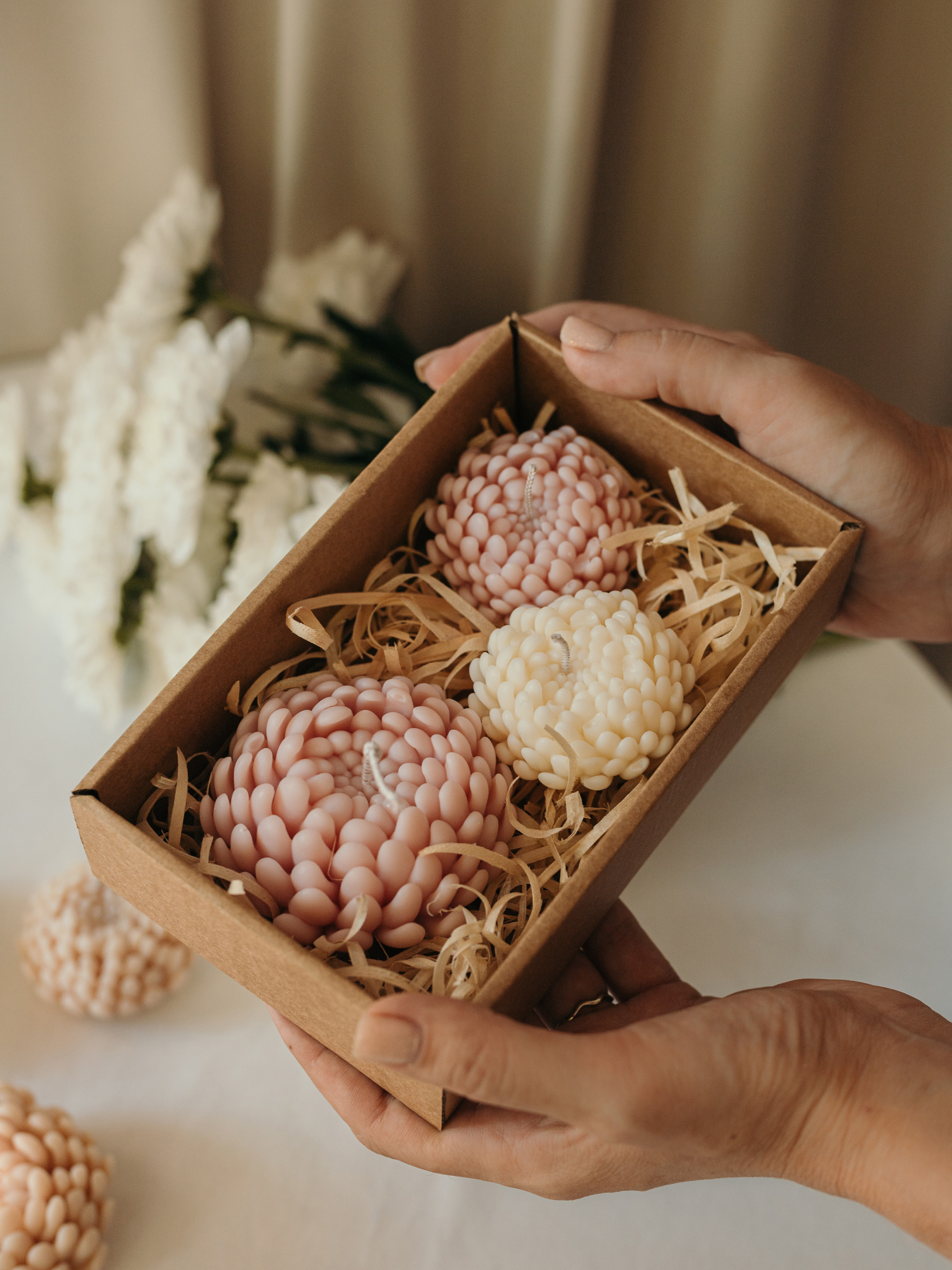 Candle DesignНабор свечей "Хризантемы" от "Candle Design" натуральный оливковый воск, 3 шт.