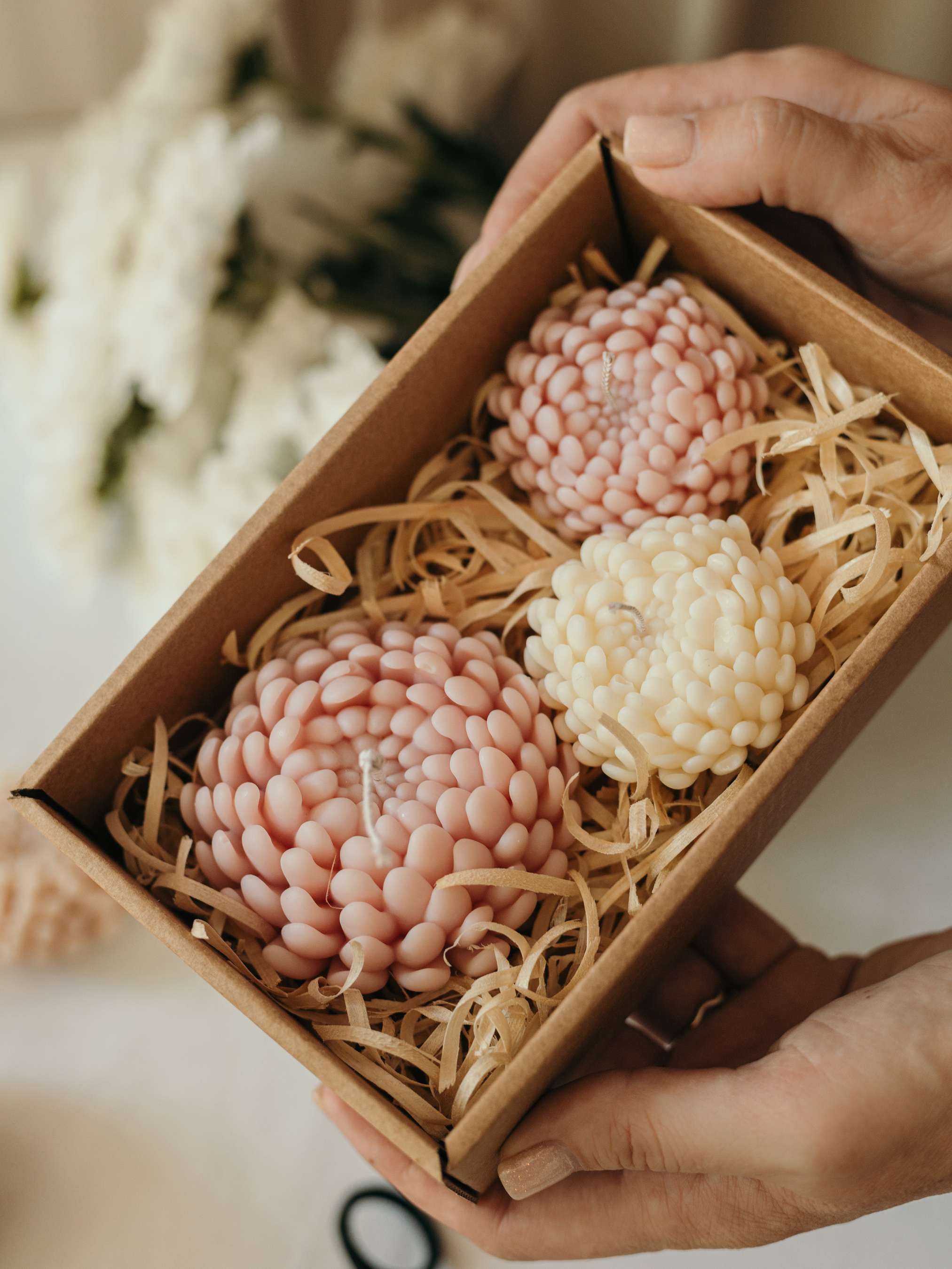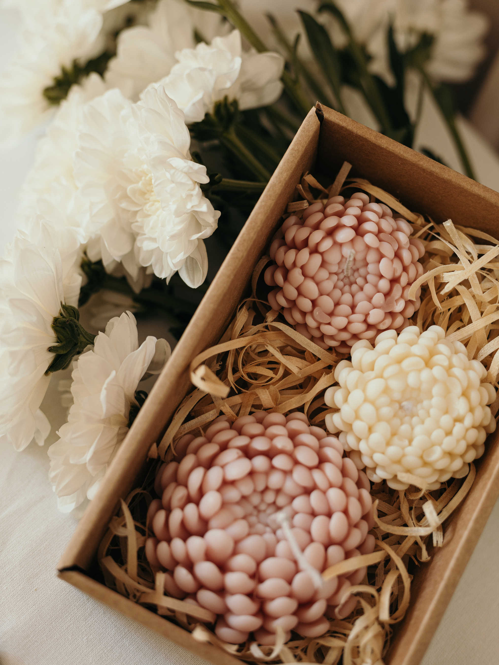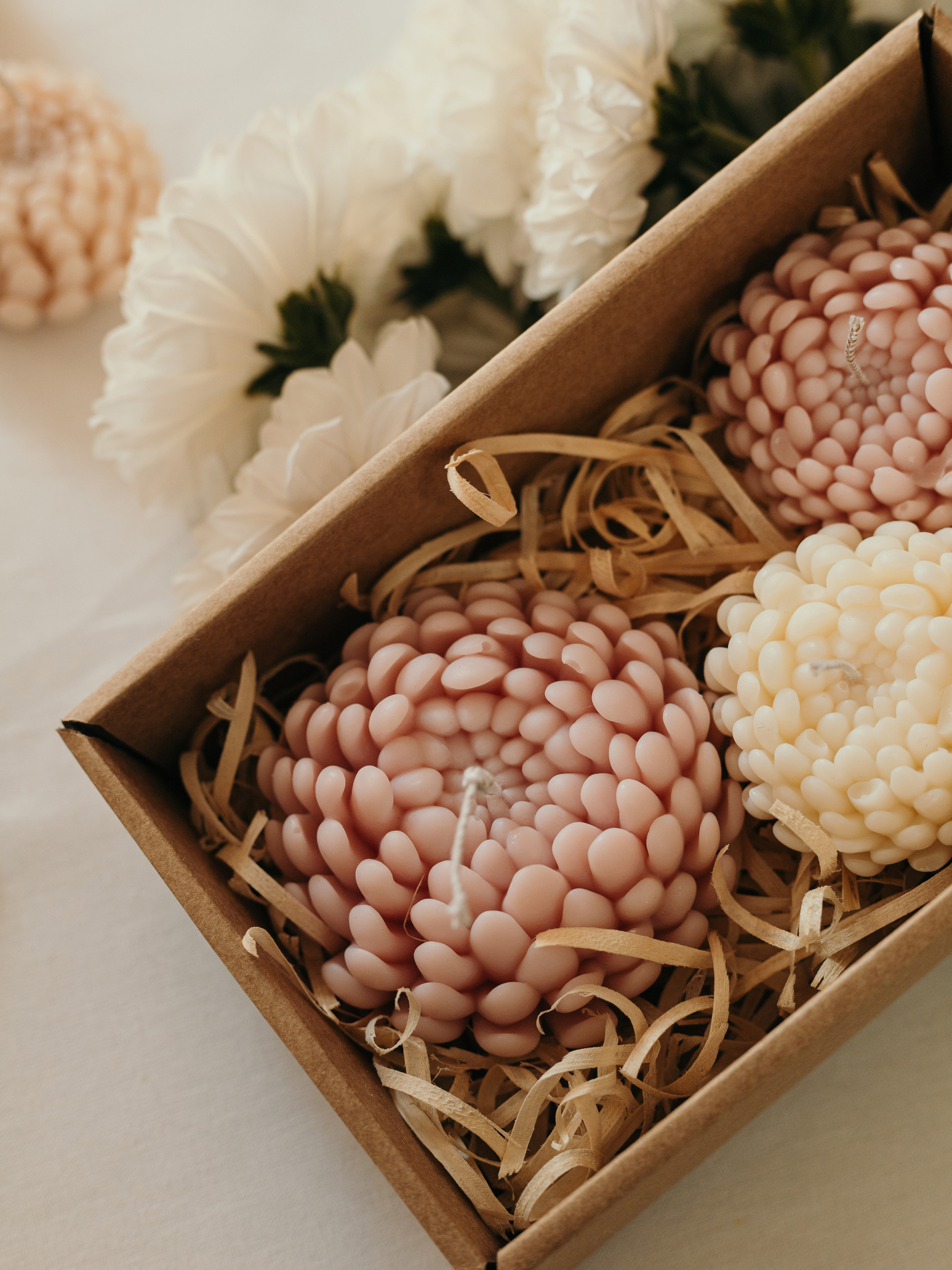 Candle DesignНабор свечей "Хризантемы" от "Candle Design" натуральный оливковый воск, 3 шт.