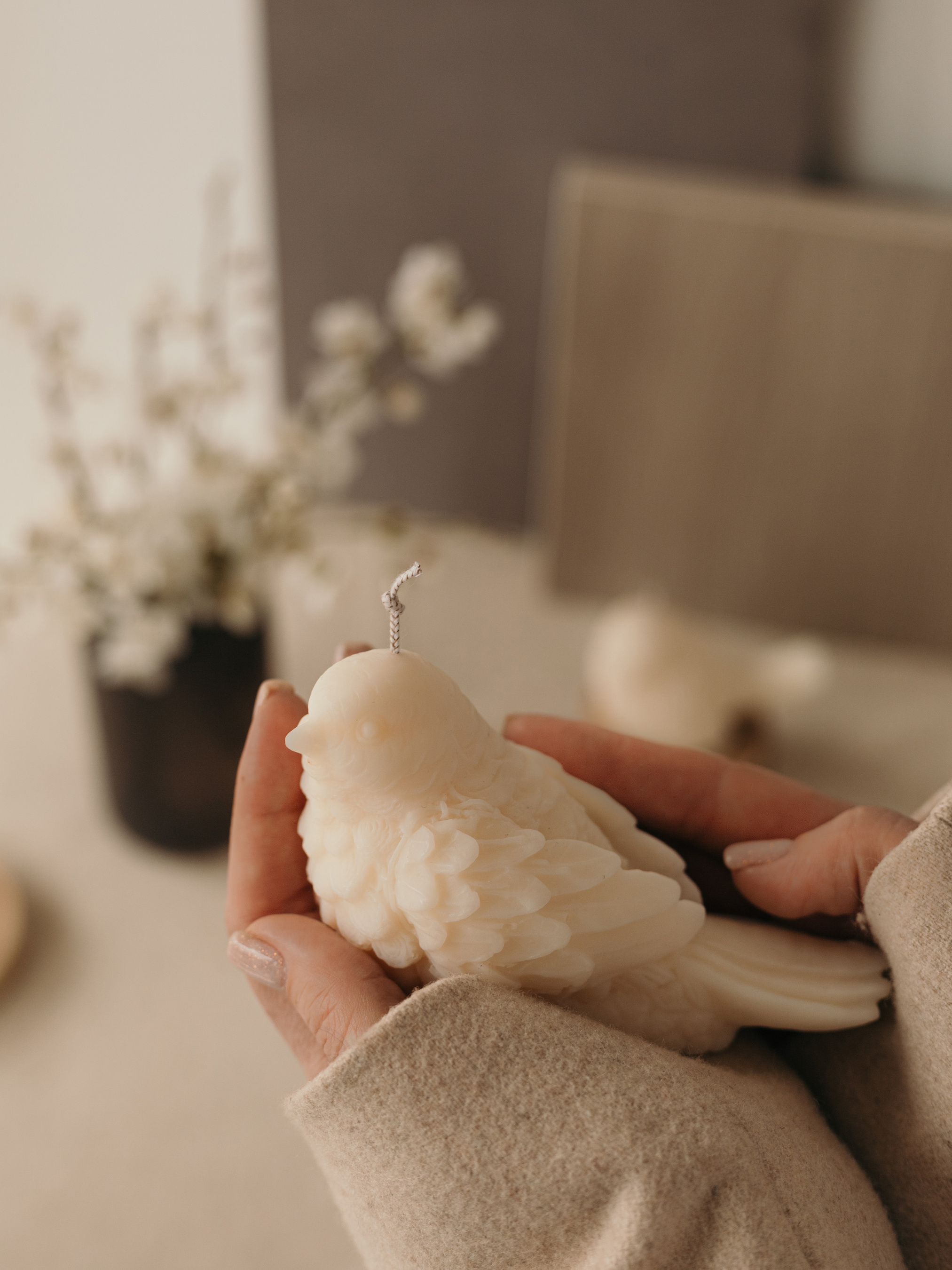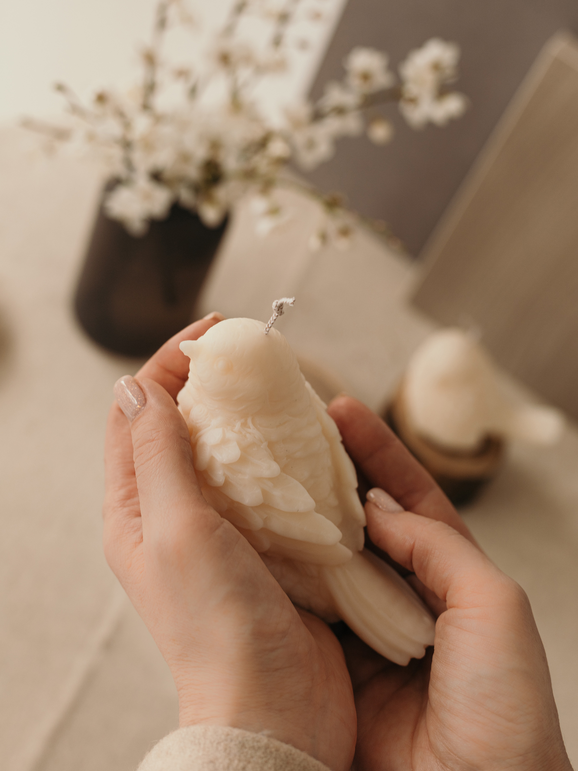 Candle DesignАроматическая свеча "Птичка S", аромат - "Цвет вишни", из натурального оливкового воска
