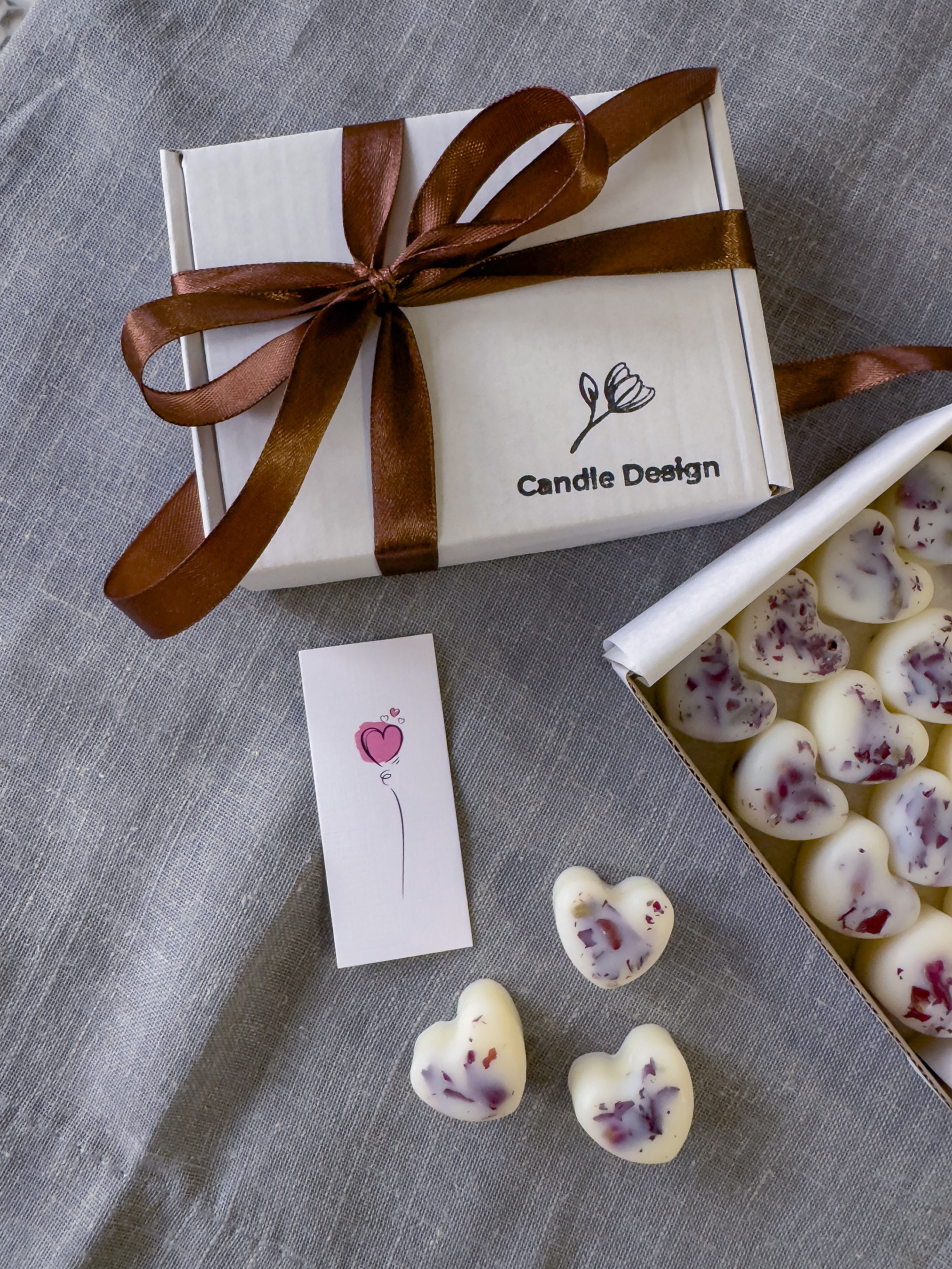 Candle DesignНабор ароматических саше "Сердечки" - Черная малина-ваниль, из натурального оливкового воска. 16 шт.