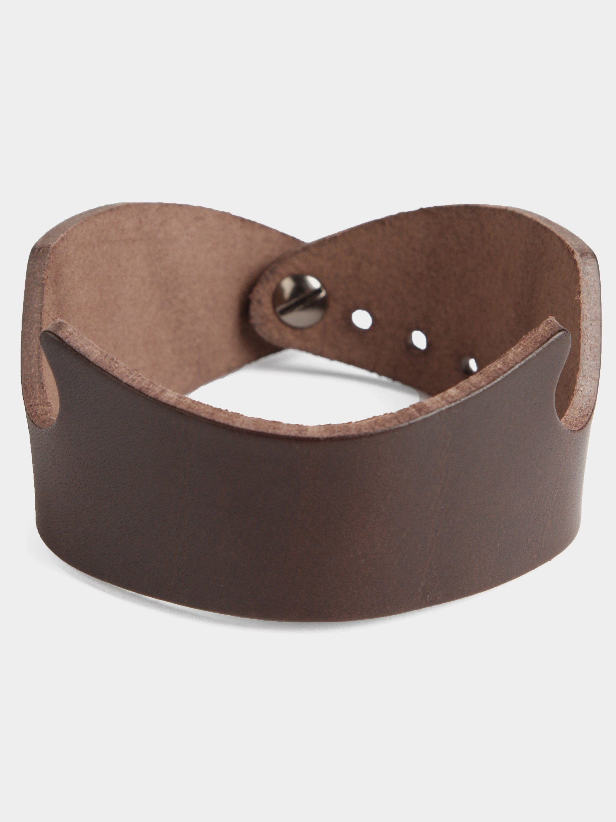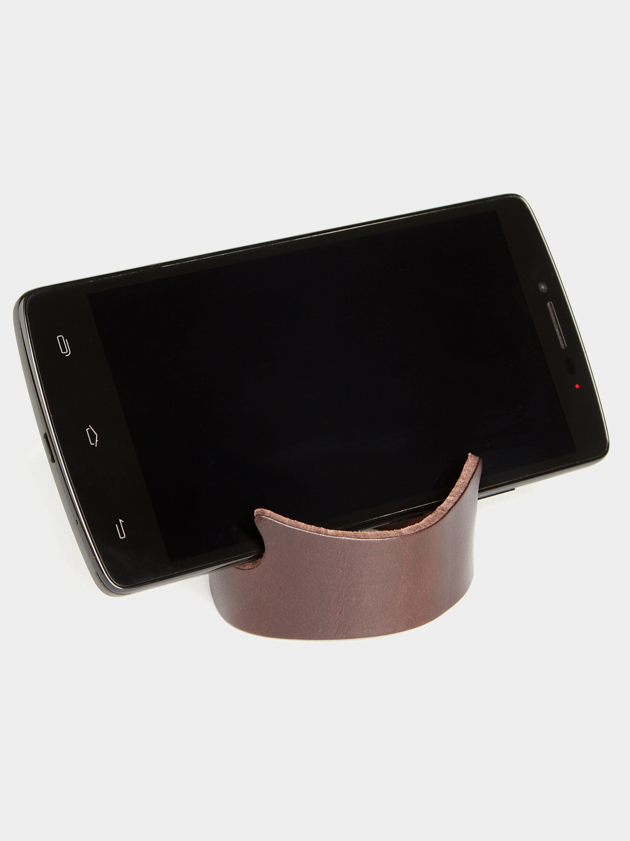 Материал: натуральная кожа высокого качества; Цвет: коричневый; Длина (в развернутом состоянии): 13 см; Ширина (в самом широком месте): 3.5 см; Диаметр: 7 см; Страна производитель: Украина. Кожаный браслет оригинально смотрится на руке. Аксессуар можно использовать в качестве подставки для смартфона.
