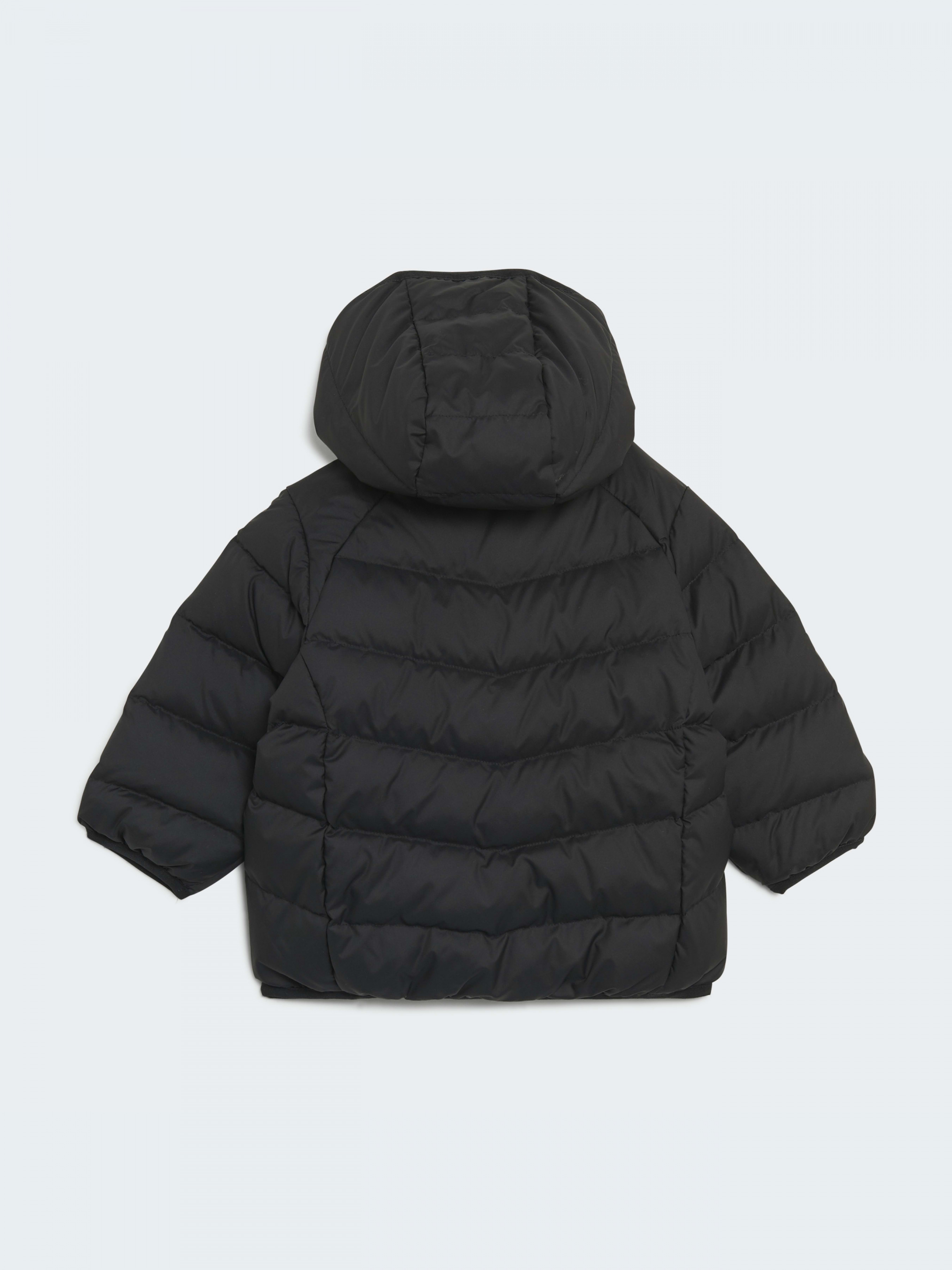 Прогулки на свежем воздухе полезны в любом возрасте. Особенно для малышей. Этот пуховик позаботится о том, чтобы твоему ребенку было тепло и комфортно в холодную погоду. Капюшон при необходимости отстегивается. Трилистник подчеркивает спортивный стиль.В состав модели входит материал Primegreen, созданный из переработанных волокон.