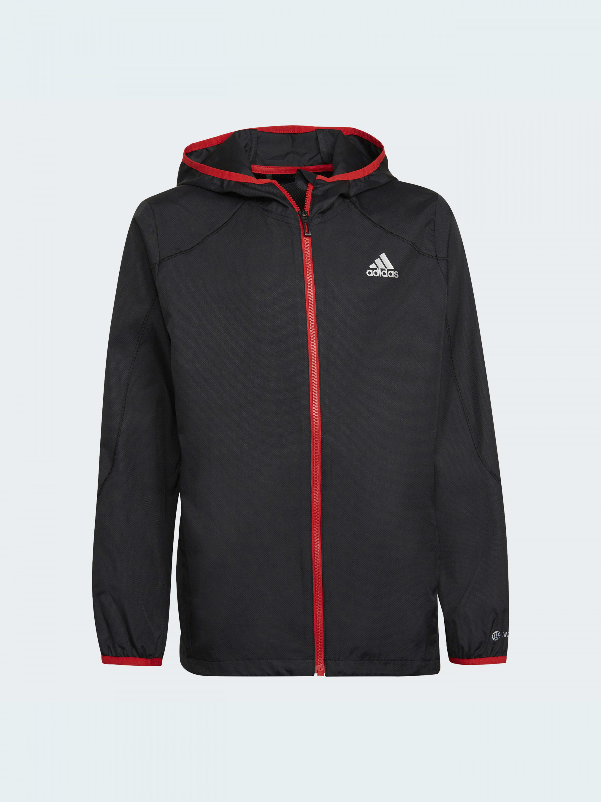 Сообщество. Физическая форма. Веселье. У тебя есть много причин, чтобы бегать. В этой ветровке adidas тебе будет комфортно в любую погоду. Ткань с технологией WIND.RDY защищает от ветра и дождя, сохраняя ощущение сухости и тепла. Дышащая спинка обеспечивает дополнительную вентиляцию.Эта модель на 100% состоит из переработанных материалов и представляет одно из наших решений по сокращению пластиковых отходов.