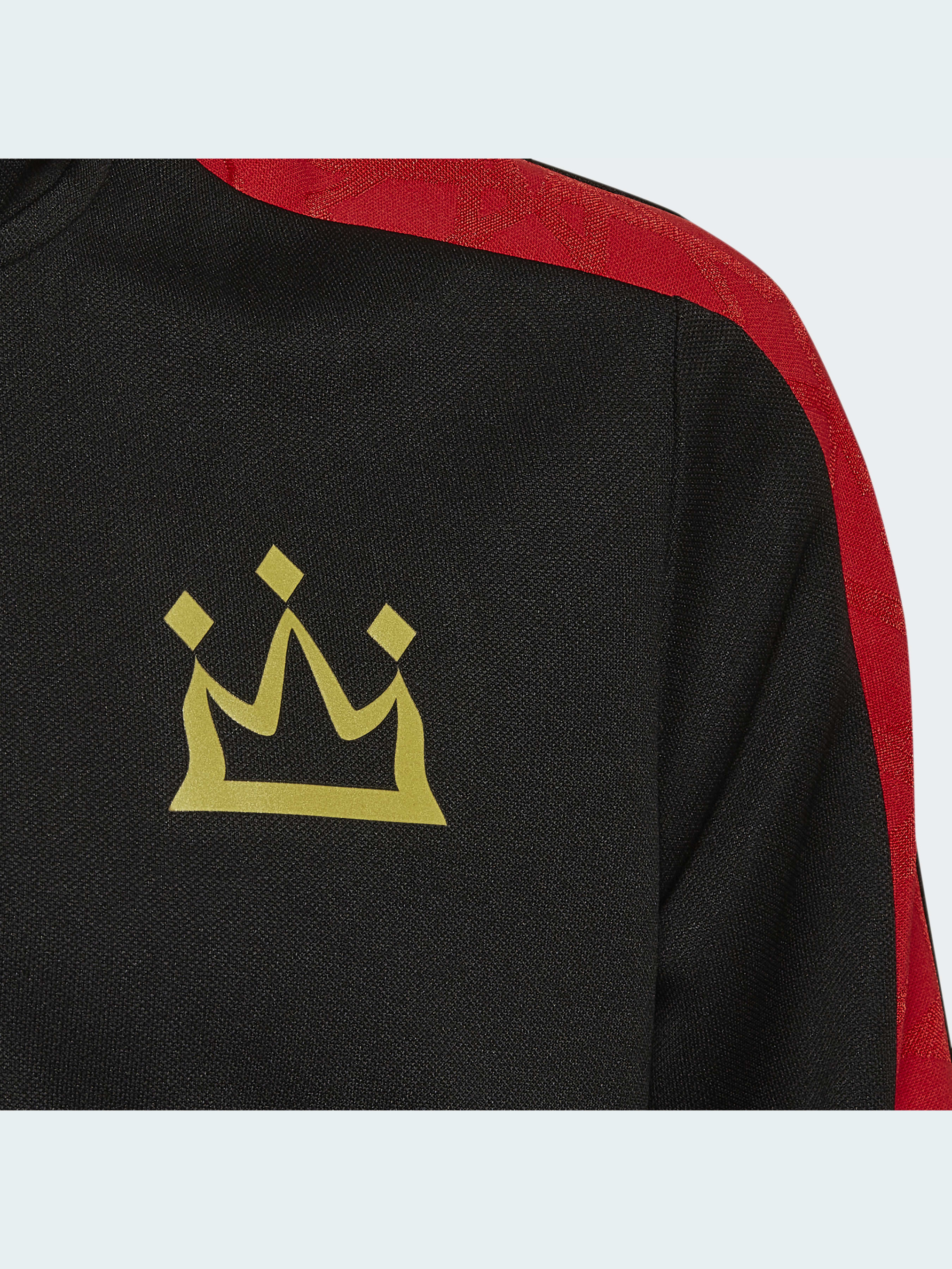 Немногие игроки могут сочетать скорость, технику и харизму, как Мохамед Салах. Эта футбольная олимпийка adidas для подростков подчеркивает его талант на поле и за его пределами. Система AEROREADY поможет тебе оставаться сухим, когда станет совсем жарко. Звездные детали на отделке символизируют восхождение Салаха к суперзвезде. Логотип в виде короны и золотая надпись "Mo" придают этой куртке королевский вид.Модель на 100% состоит из переработанных материалов и представляет одно из наших решений по сокращению пластиковых отходов.