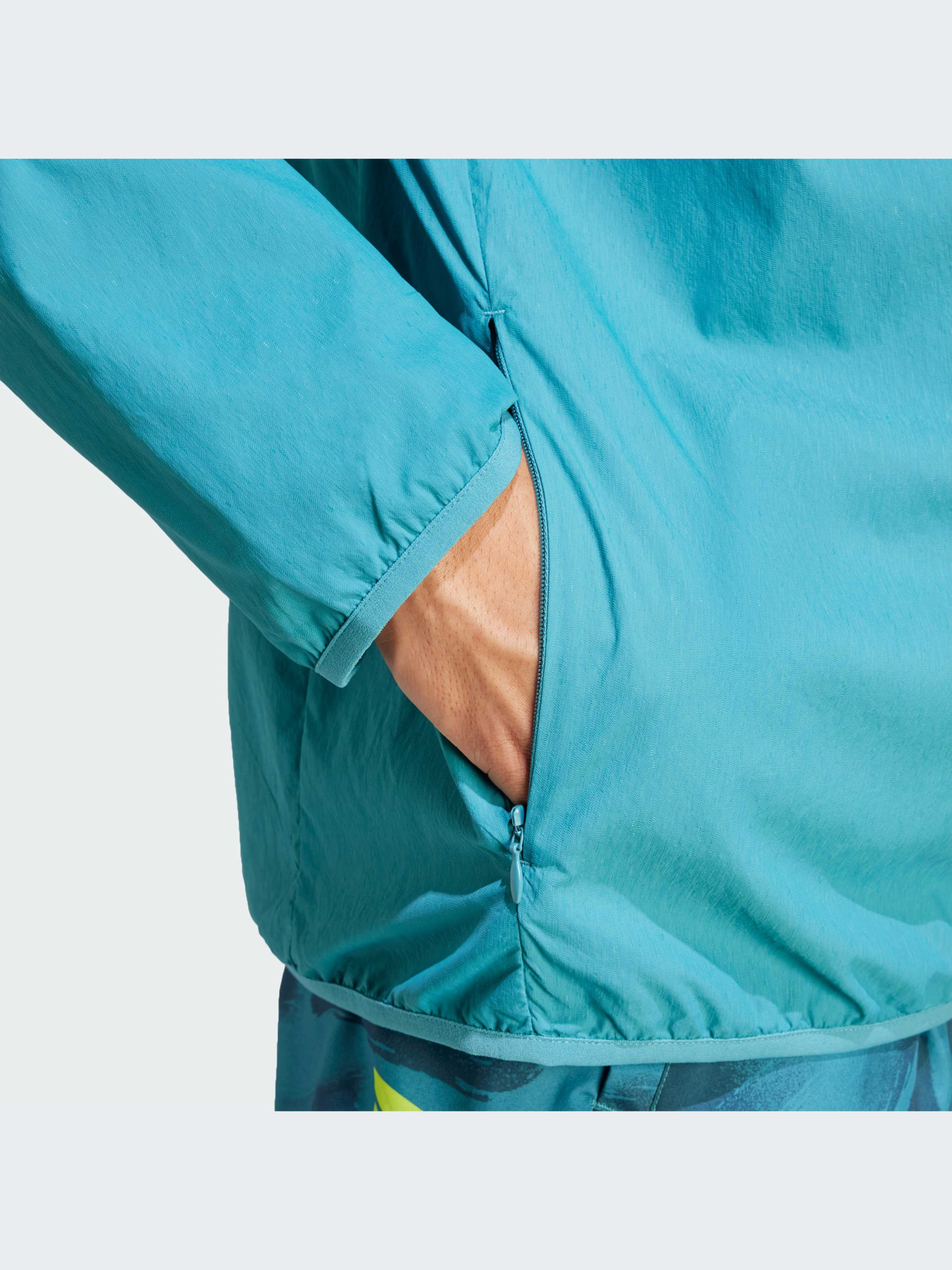 Характеристики 100% переработанный нейлон (добби) Боковой карман на потайной молнии Застежка на молнию; капюшон на завязках-шнурках Стандартный крой Эластичные завязки на рукавах и в нижней части куртки Опис Прогони прохладу в этой беговой куртке adidas. Она легкая, удобная и легко надевается поверх футболки, пока ты разогреваешься. Эластичная резинка на рукавах и в нижней части куртки защищает от холода, а регулируемый шнурком капюшон обеспечивает дополнительную защиту, когда это необходимо. Надежно храни необходимые вещи в боковом кармане на молнии. Модель на 100% состоит из переработанных материалов и представляет одно из наших решений по сокращению пластиковых отходов.