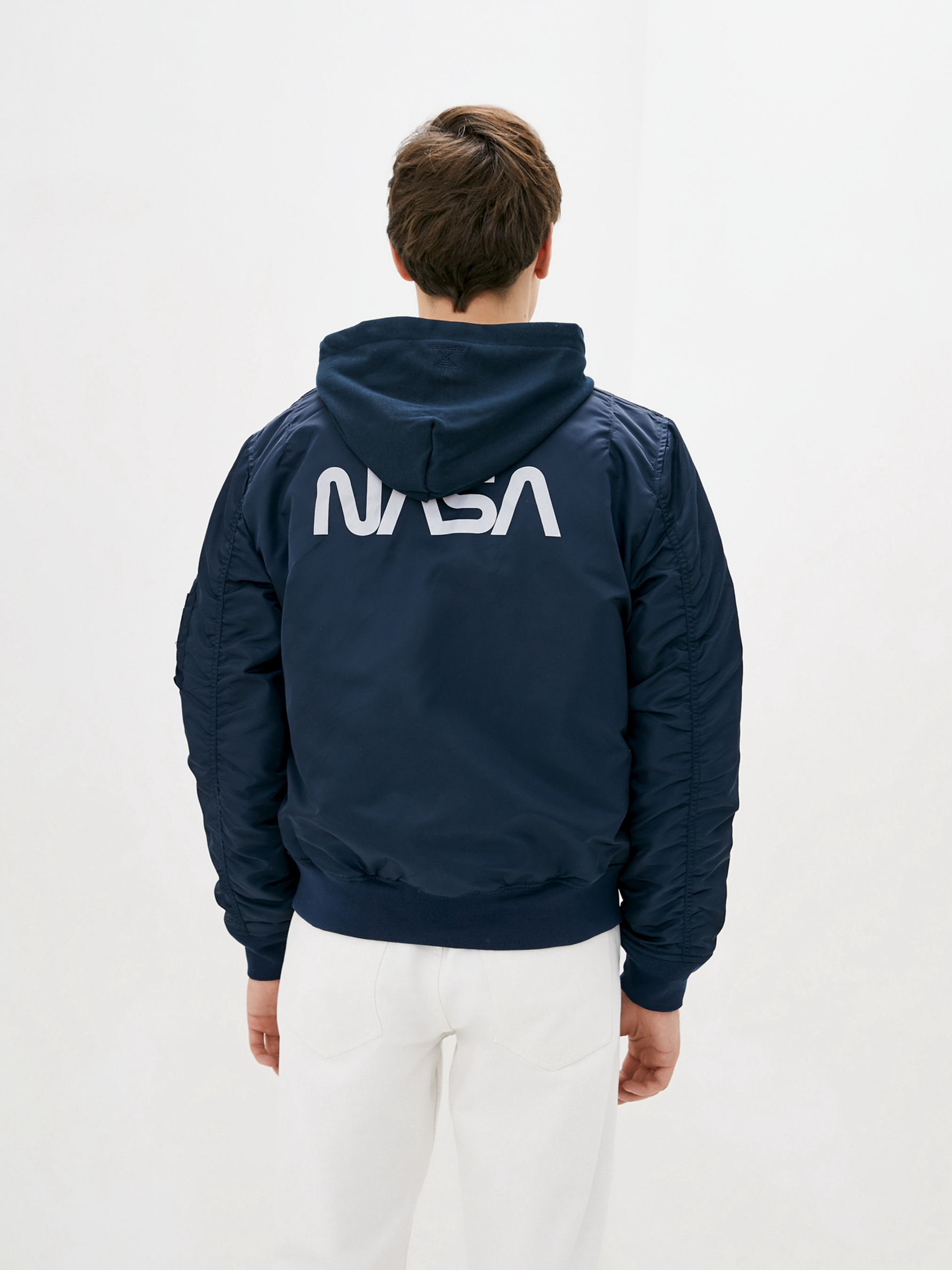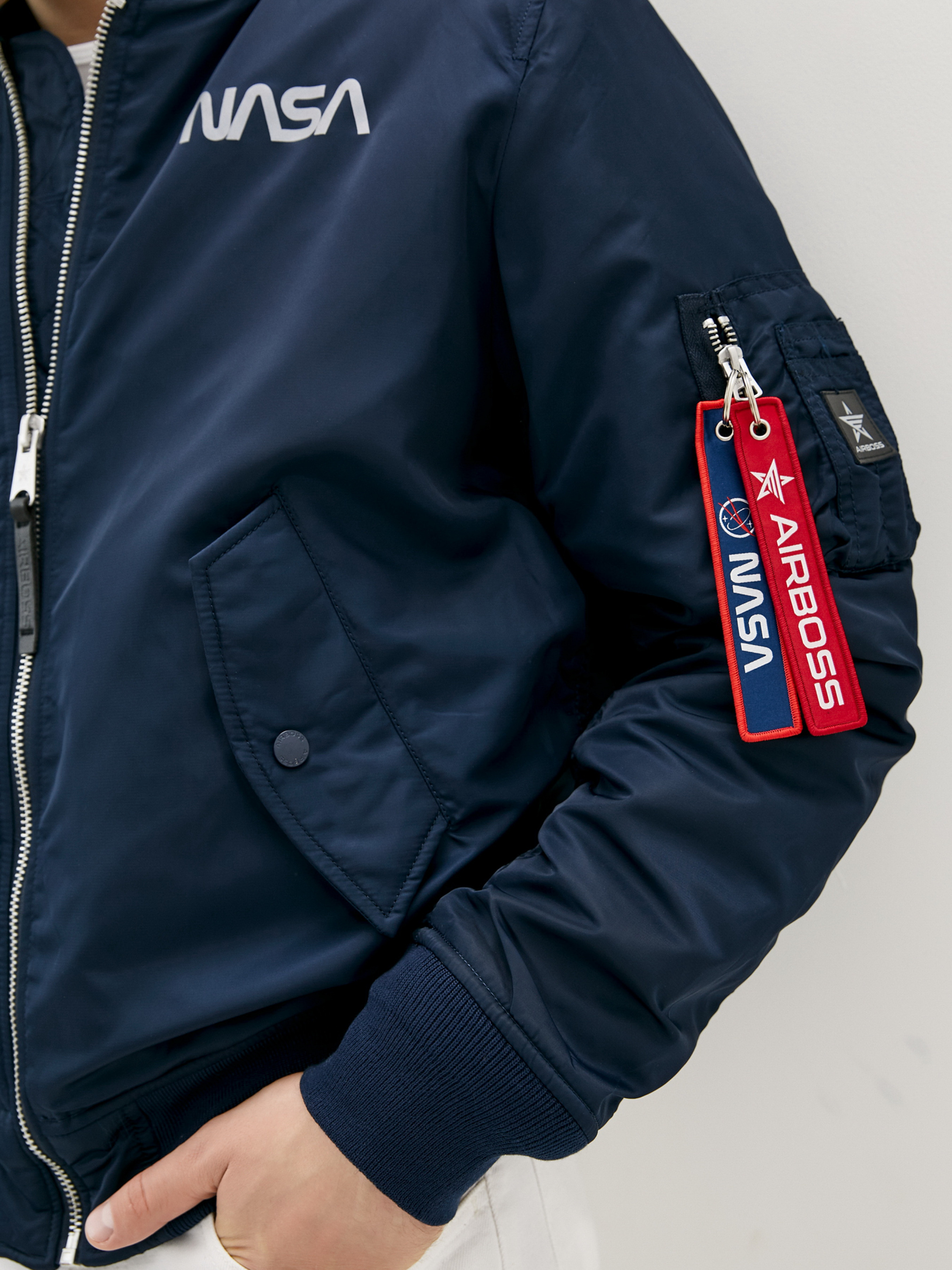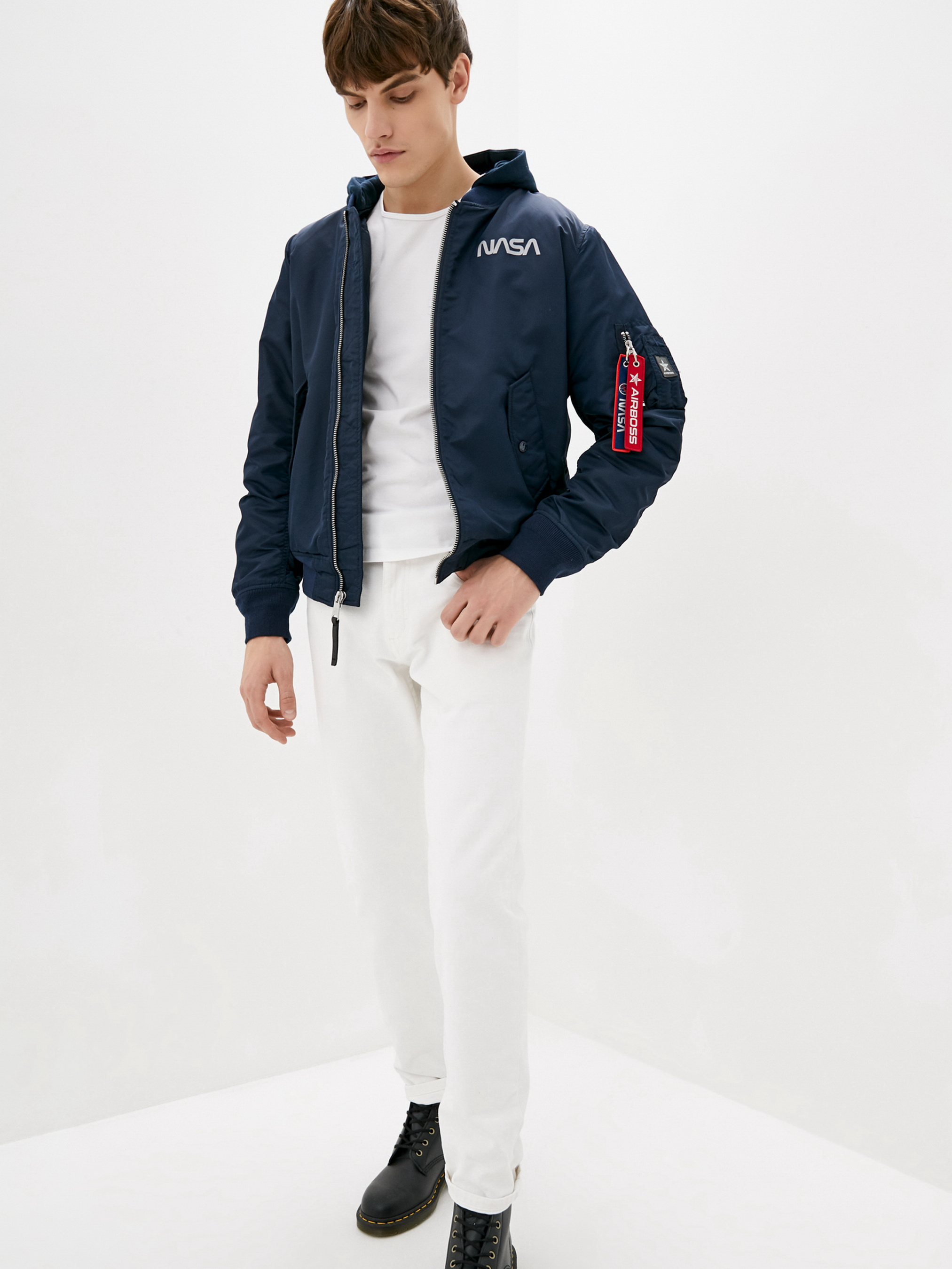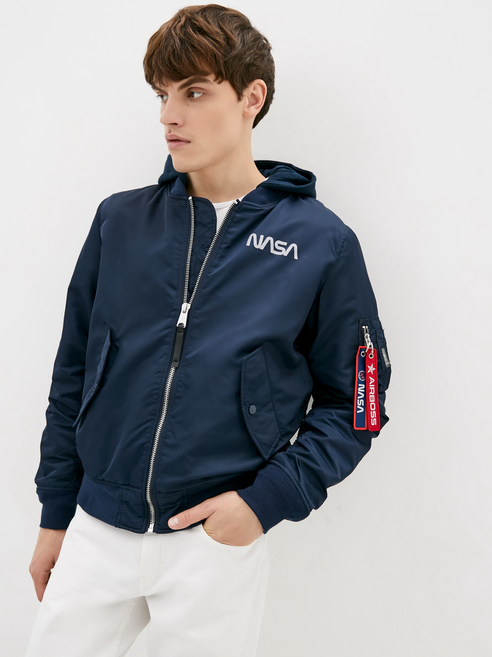 Совершенно новая модель демисезонного мужского бомбера – куртка MA-1 NASA Hooded от AIRBOSS. Данная модель отличается от классического бомбера МА-1 наличием отстегивающегося коттонового капюшона и светоотражающей надписью NASA на груди и спине. Материал верха – лётный нейлон с пропиткой, благодаря которому куртка имеет грязе- и водоотталкивающие свойства. Данная модель имеет два наружных и один внутренний карман. Манжеты и воротник выполнены из трикотажной резинки. Силуэт куртки полностью повторил классический бомбер лётчика, благодаря чему идеально садится на любую фигуру.