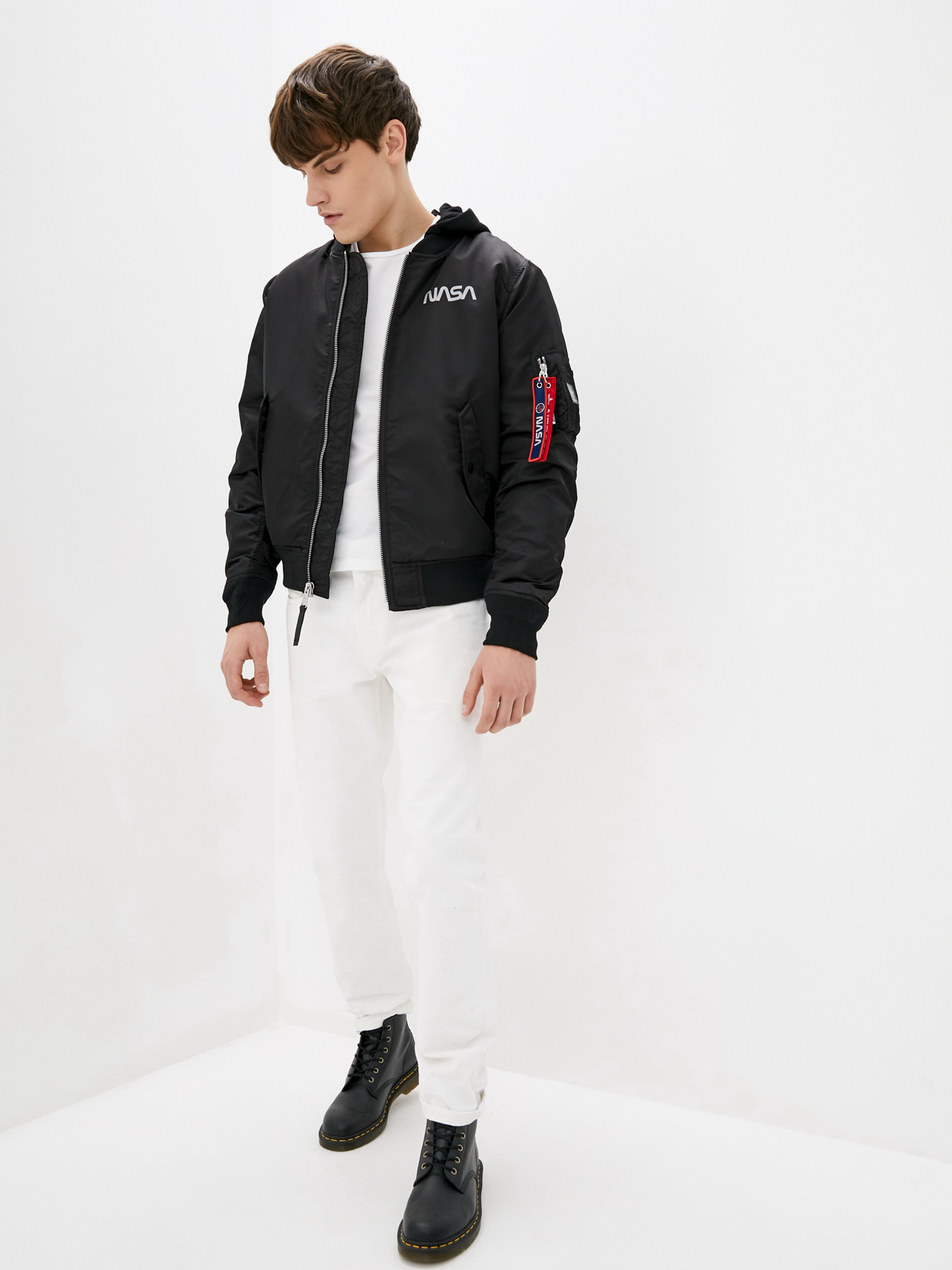 Совершенно новая модель демисезонного мужского бомбера – куртка MA-1 NASA Hooded от AIRBOSS. Данная модель отличается от классического бомбера МА-1 наличием отстегивающегося коттонового капюшона и светоотражающей надписью NASA на груди и спине. Материал верха – лётный нейлон с пропиткой, благодаря которому куртка имеет грязе- и водоотталкивающие свойства. Данная модель имеет два наружных и один внутренний карман. Манжеты и воротник выполнены из трикотажной резинки. Силуэт куртки полностью повторил классический бомбер лётчика, благодаря чему идеально садится на любую фигуру.