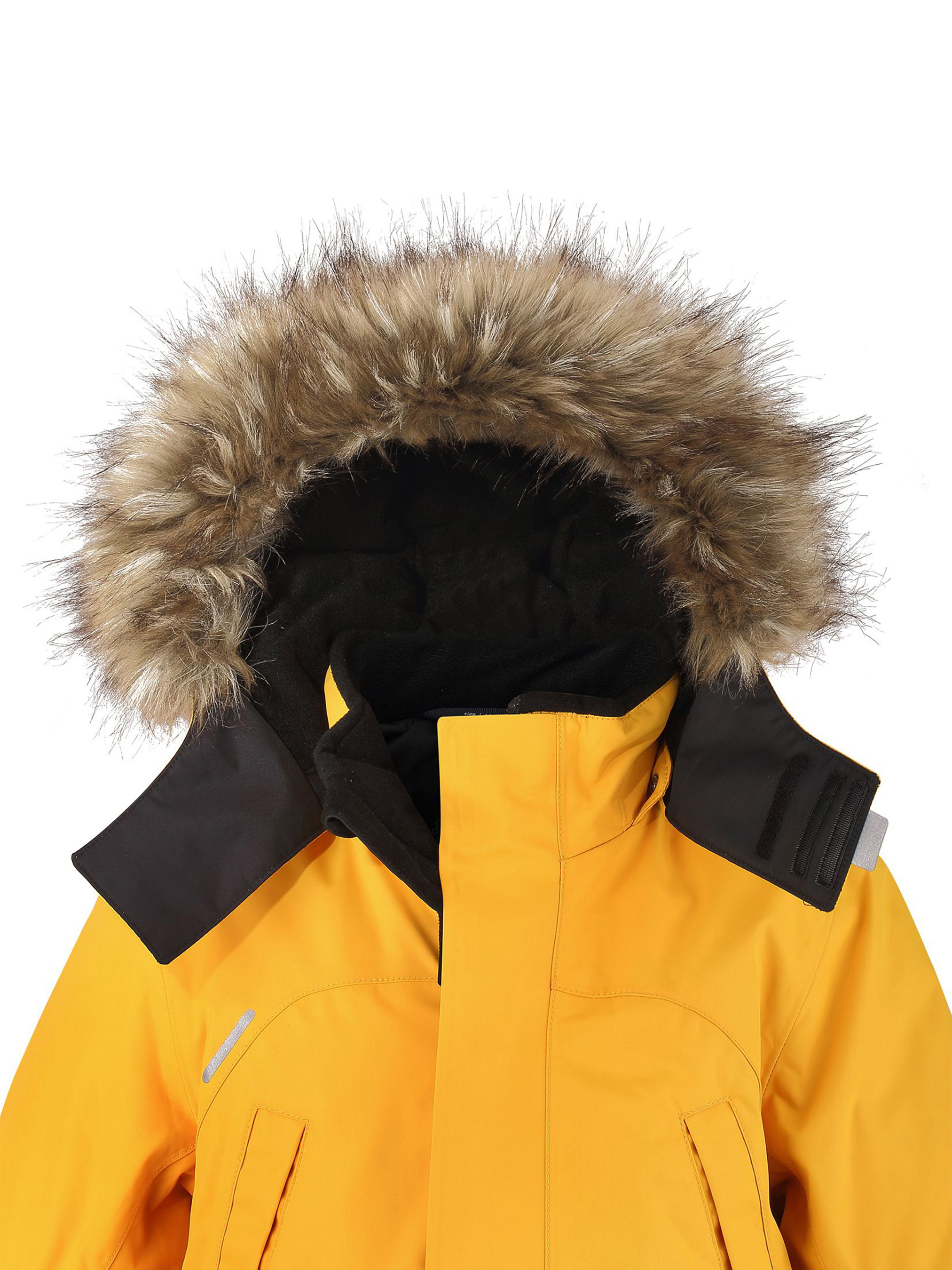 Теплая детская куртка-пуховик сшита из ветронепроницаемого и дышащего материала, который, к тому же, абсолютно водонепроницаемый! Все швы в этой стильной куртке проклеены и водонепроницаемы, что гарантирует максимальный комфорт во время зимних прогулок, при любой погоде. Талия и подол этой удлиненной модели легко регулируются, что позволяет подогнать куртку точно по фигуре. Съемный капюшон защищает от пронизывающего ветра и безопасен во время игр на свежем воздухе. Кнопки легко отстегиваются, если капюшон случайно за что-нибудь зацепится. Куртка подшита гладкой подкладкой. Модный образ дополняет капюшон с элегантной оторочкой из искусственного меха, которую при желании также можно снять. В нескольких карманах удобно хранить разные важные предметы во время прогулок. Обратите внимание на удобную петельку, спрятанную в кармане с клапаном – к ней можно прикрепить светоотражатель для обеспечения лучшей видимости. Эта невероятно теплая зимняя куртка очень проста в уходе: дело в том, что у нее водо- и грязеотталкивающая поверхность, а после стирки ее можно сушить в сушильной машине. Теплая классическая куртка-пуховик подойдет на все случаи жизни – маленьким любителям активных прогулок будет в ней тепло и сухо!