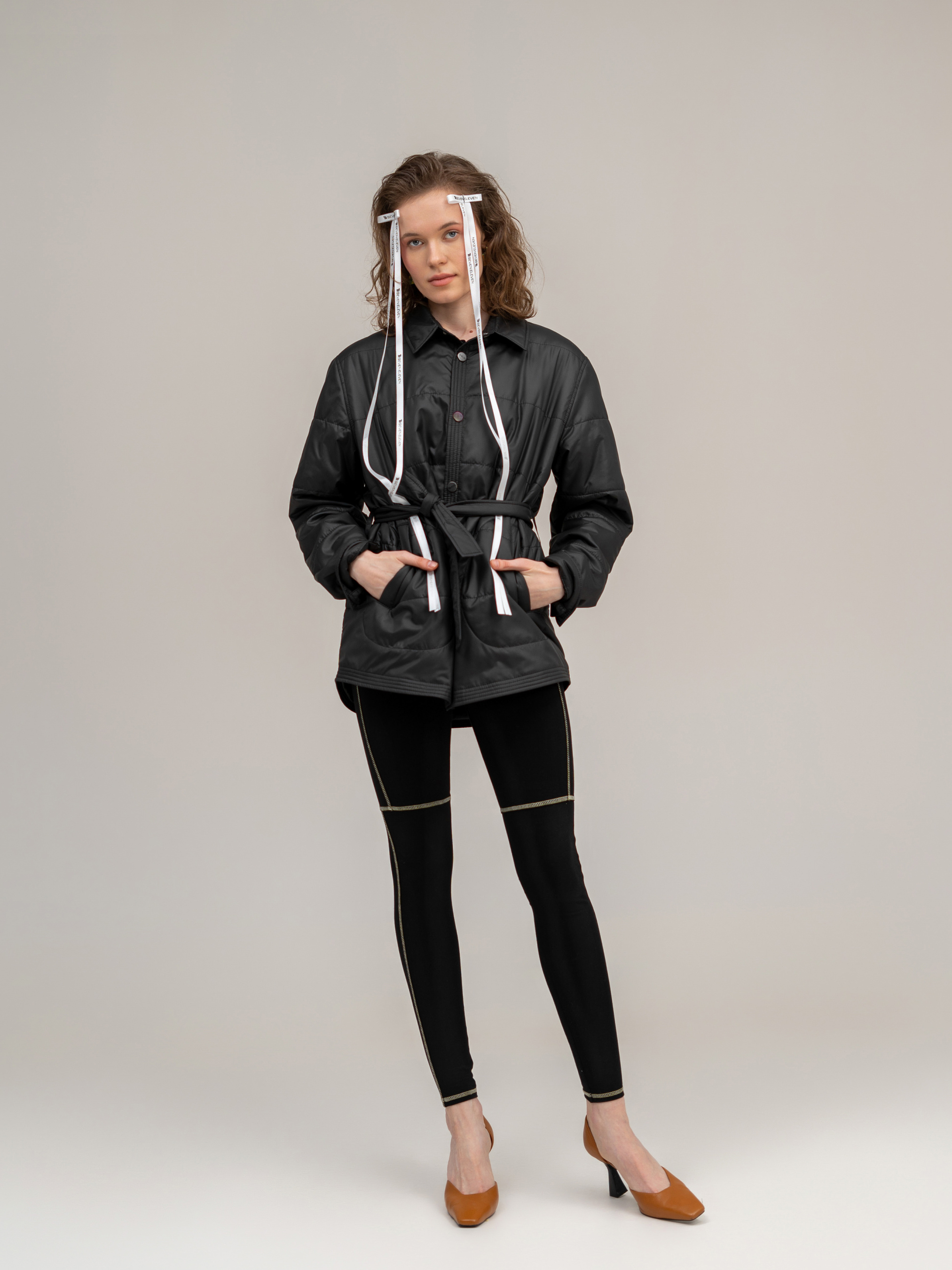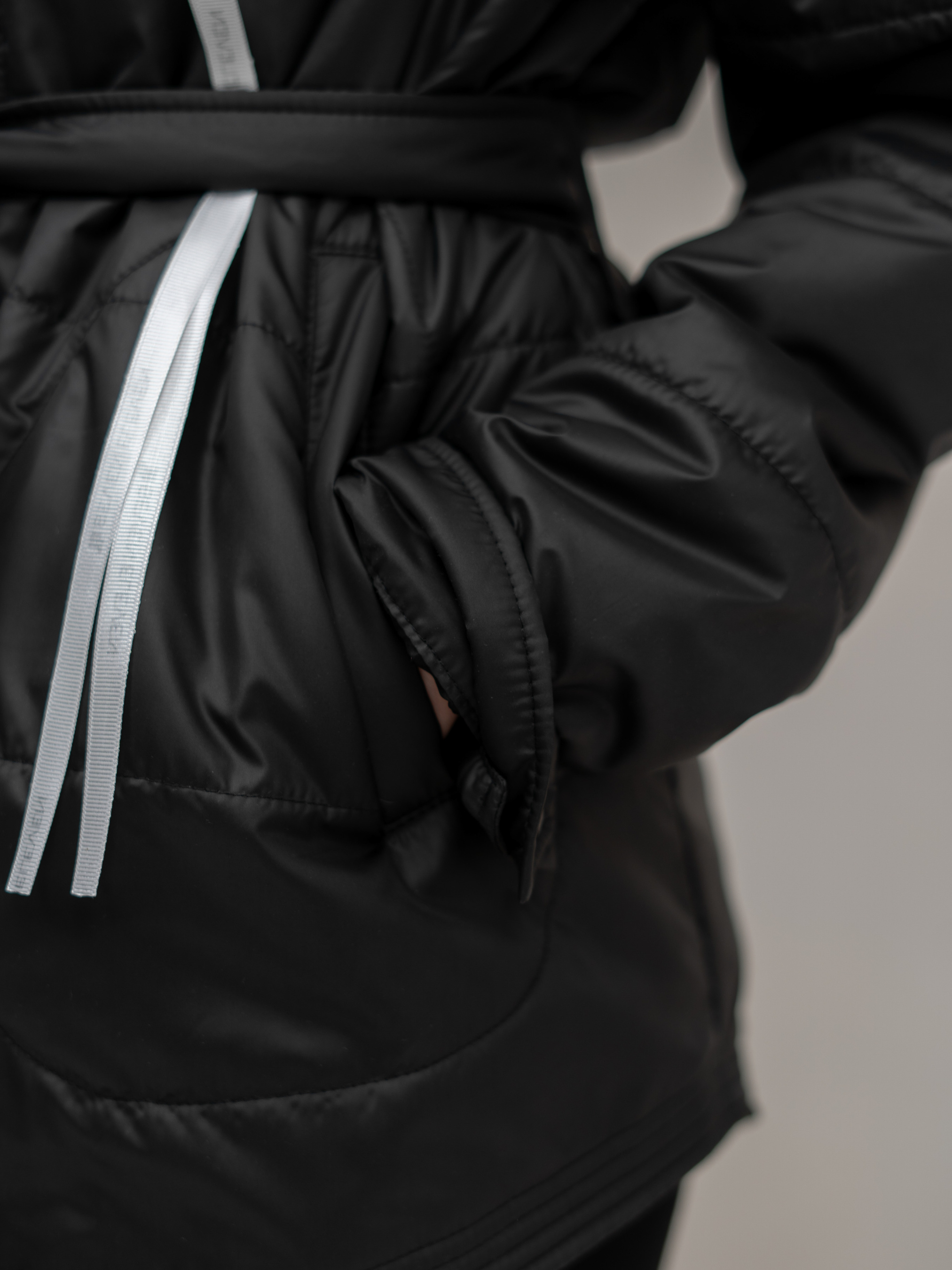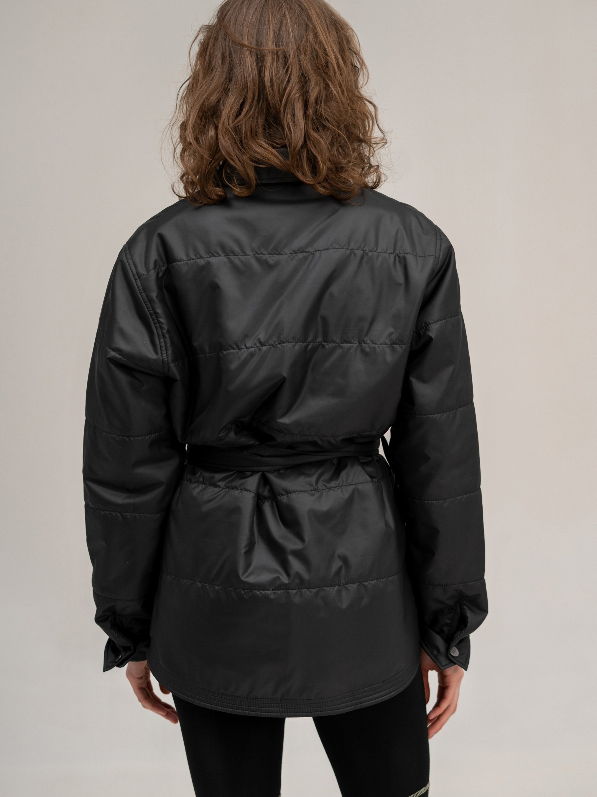 Куртка изготовлена из водонепроницаемой плащевой ткани и оснащена легким утеплителем. Рукава на манжетах, небольшой воротник и застежка на кнопках. Есть карманы. Куртку можно носить под пояс. Кроме того, она очень легкая и комфортная, что делает ее идеальной для использования в межсезонье, когда температура не настолько холодна, чтобы носить тяжелые зимние куртки. Куртка представлена в размере one size.