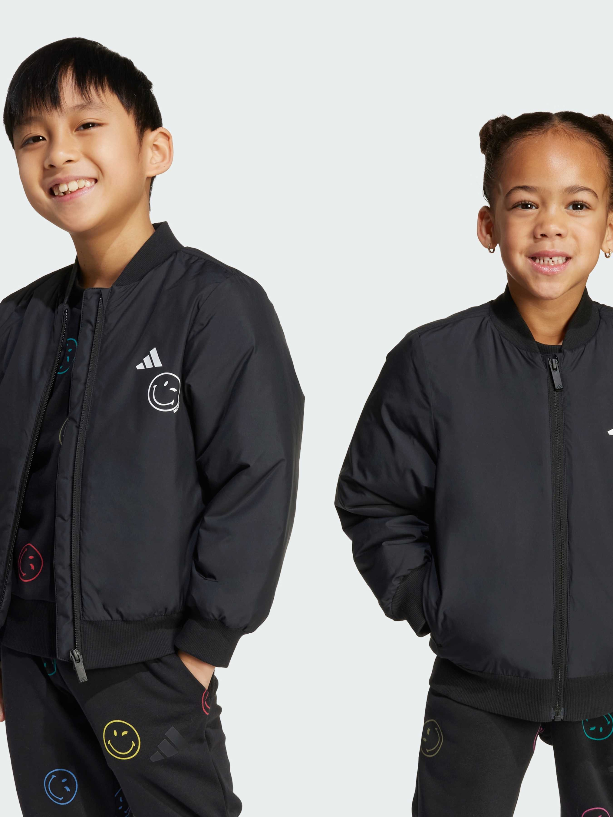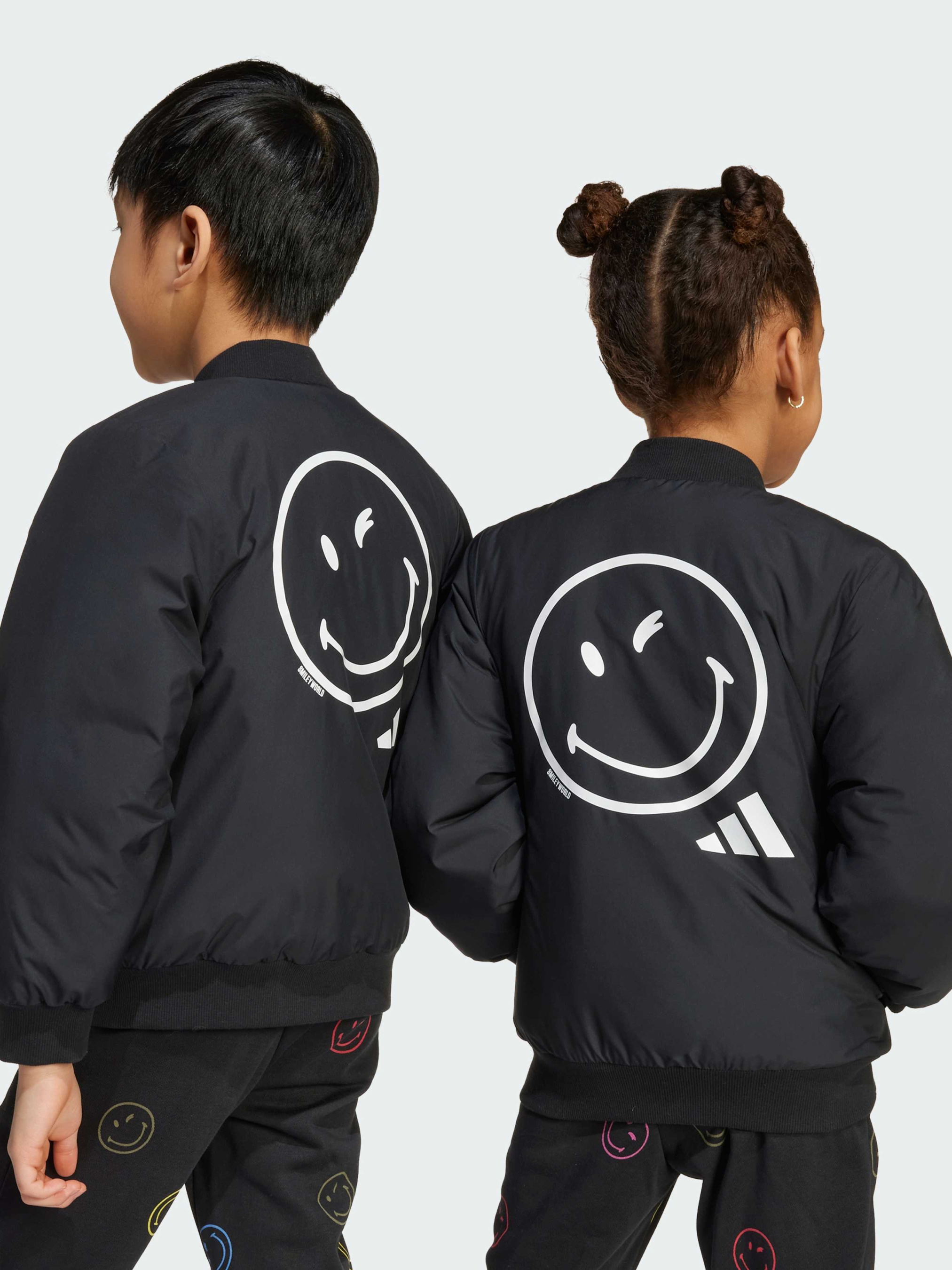 Эта куртка adidas для детей - воплощение хорошего настроения. Она выполнена из мягкой ткани и имеет свободный крой для непринужденного стиля. Большой графический рисунок с улыбкой на спине точно вызовет улыбки у окружающих.
