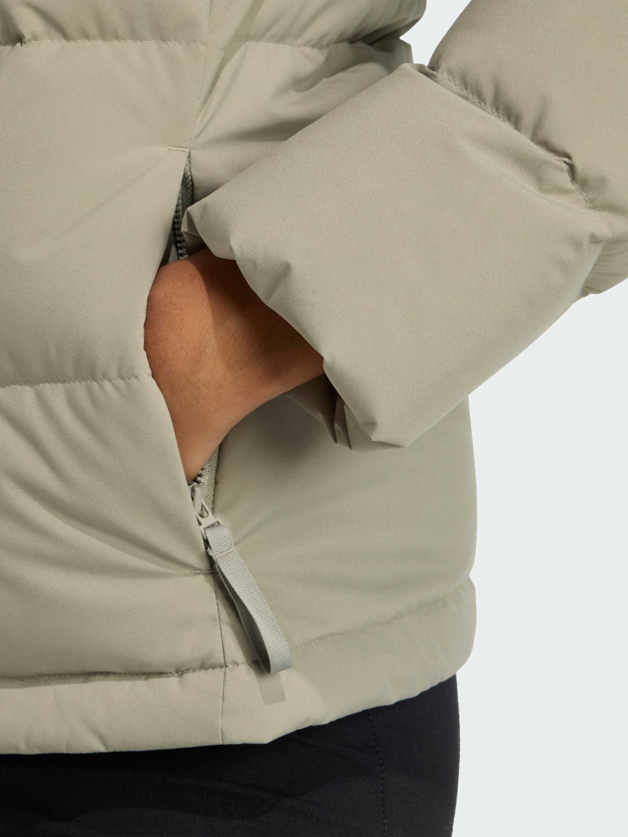 Характеристики CLIMAWARM Внешняя сторона: 100% переработанный полиэстер; Внутренняя часть: 100% термопластичный полиуретан Застежка-молния Карманы на молнии Стандартный крой Утеплитель: 80% утиный пух, 20% перо (600 Fill Power) Нижний край на завязках Капюшон с эластичной застежкой Штормовой клапан с невидимой защелкой Описание Этот пуховик adidas - идеальный выбор для холодных дней. Наполненный утиным пухом, он удерживает тепло, чтобы ты могла наслаждаться временем на улице с комфортом. Вшитый капюшон обеспечит дополнительную защиту, когда это нужно, а регулируемый подол не пропускает холод. Технология CLIMAWARM сохраняет тепло и выводит влагу, обеспечивая сухость, тепло и концентрацию на активностях. Изоляционные материалы удерживают тепло, поддерживая оптимальную температуру тела. Преодолевай любые погодные условия с термоизоляцией и водоотталкивающими свойствами, которые обеспечат надежную защиту от внешних факторов. Идет размер в размер. Мы рекомендуем заказать модель твоего обычного размера.