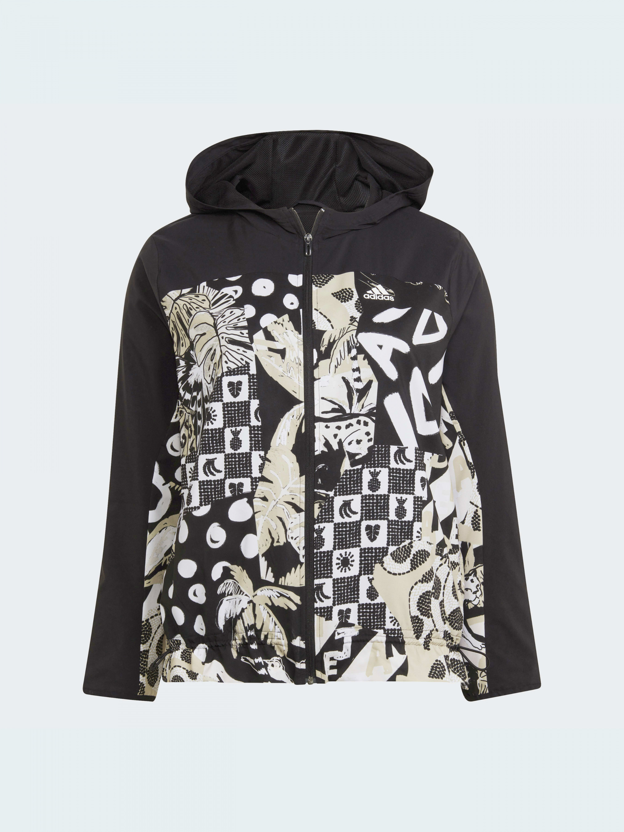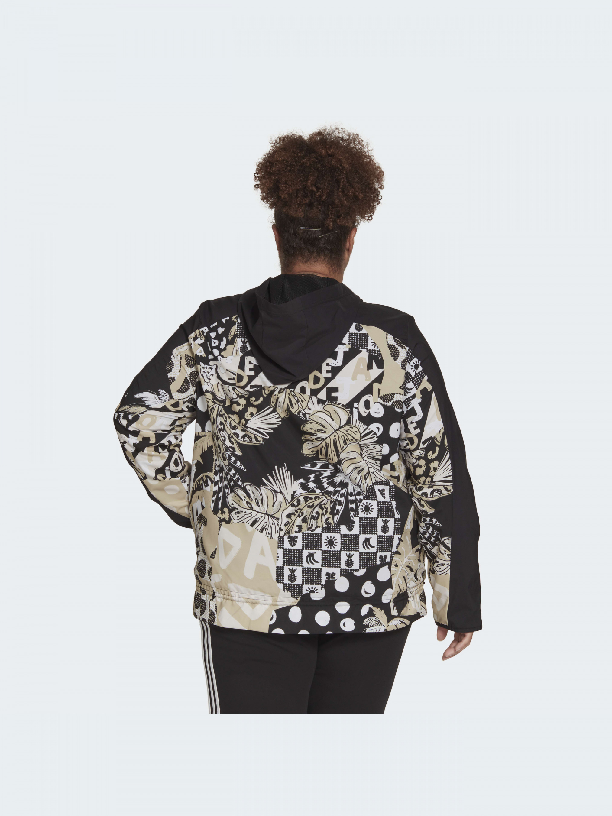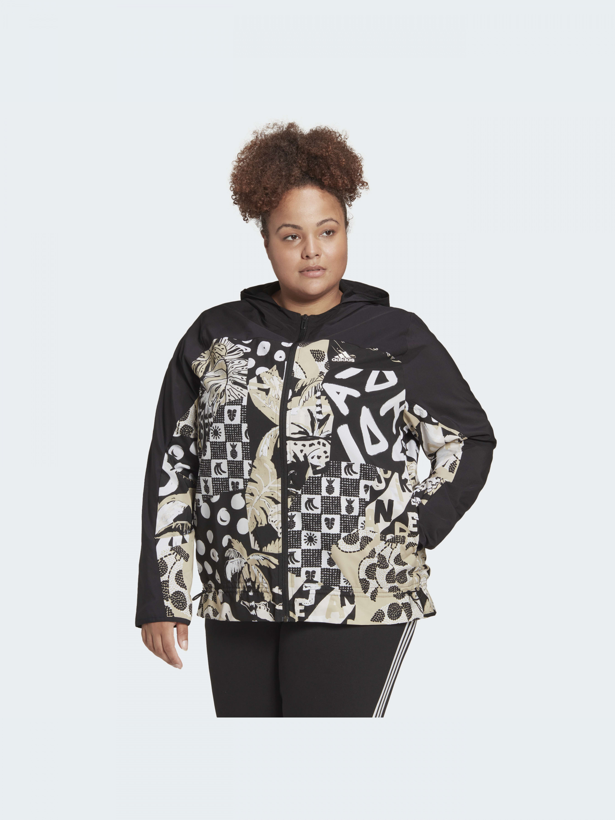 Хороший вайб - всегда. Даже когда дует ветер, эта ветровка adidas излучает энергию солнечного дня с привлекательной графикой от бразильского бренда FARM Rio. Надень ее с луком для йоги, джинсами или платьем, когда тебе нужен верхний слой, не жертвующий твоим стилем. Легкая ткань AEROREADY, поглощающая влагу, позволяет тебе чувствовать себя свежей. Изготовленная из 100% переработанных материалов, этот продукт представляет собой лишь одно из наших решений, помогающих покончить с пластиковыми отходами.